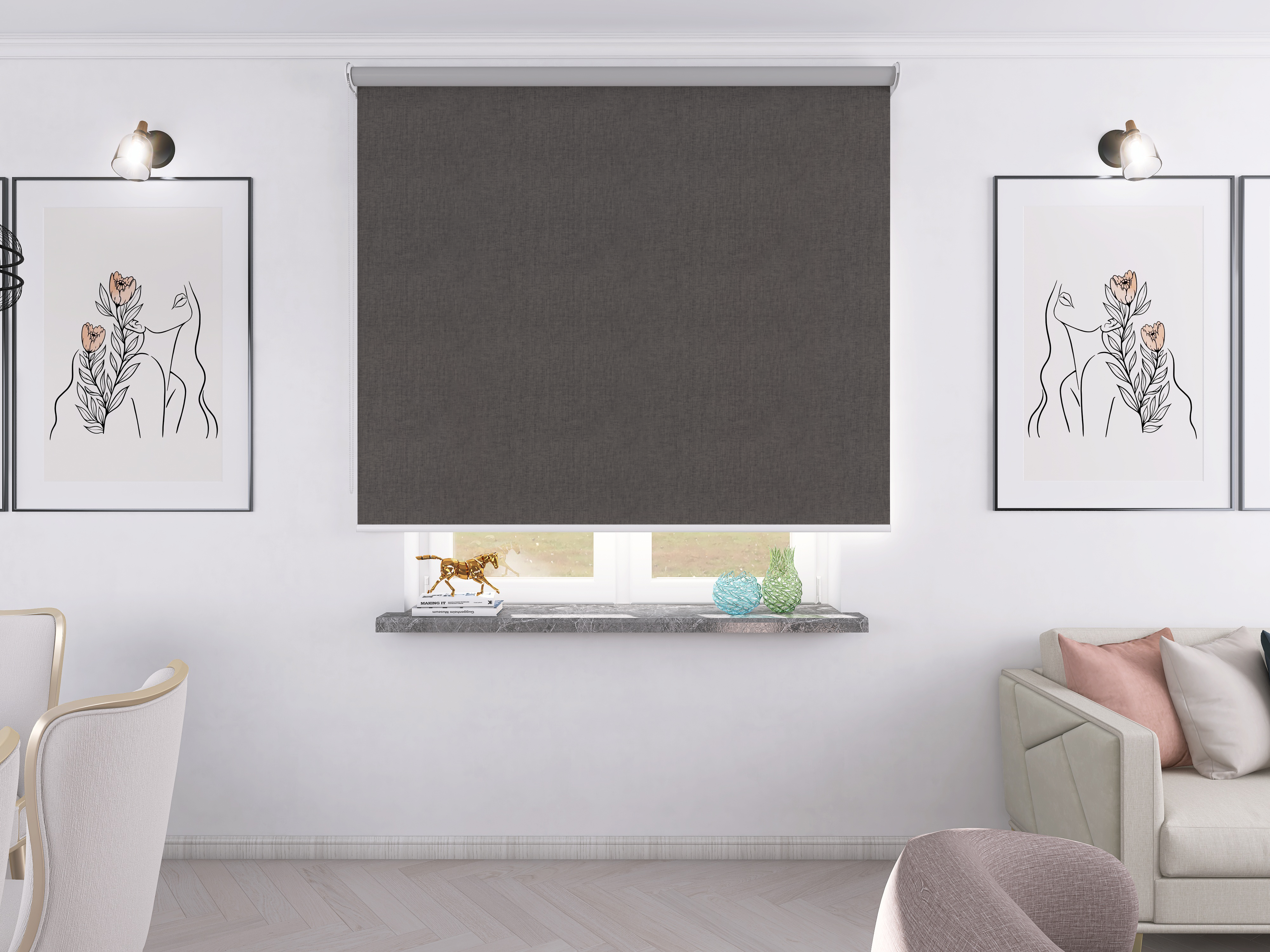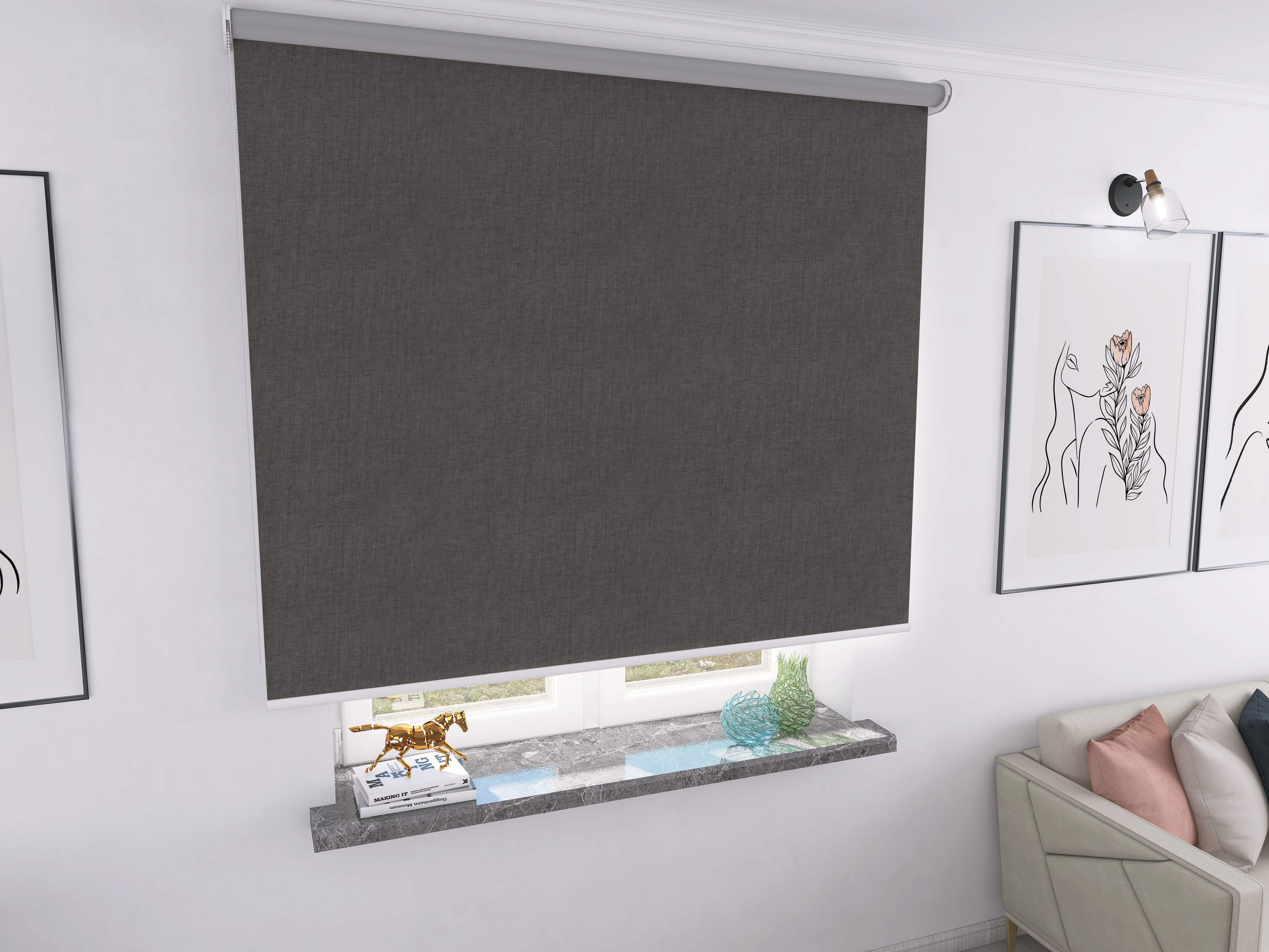 Roleta Concept XL Tkanina Blackout 0017 Brąz melanż – biały osprzęt