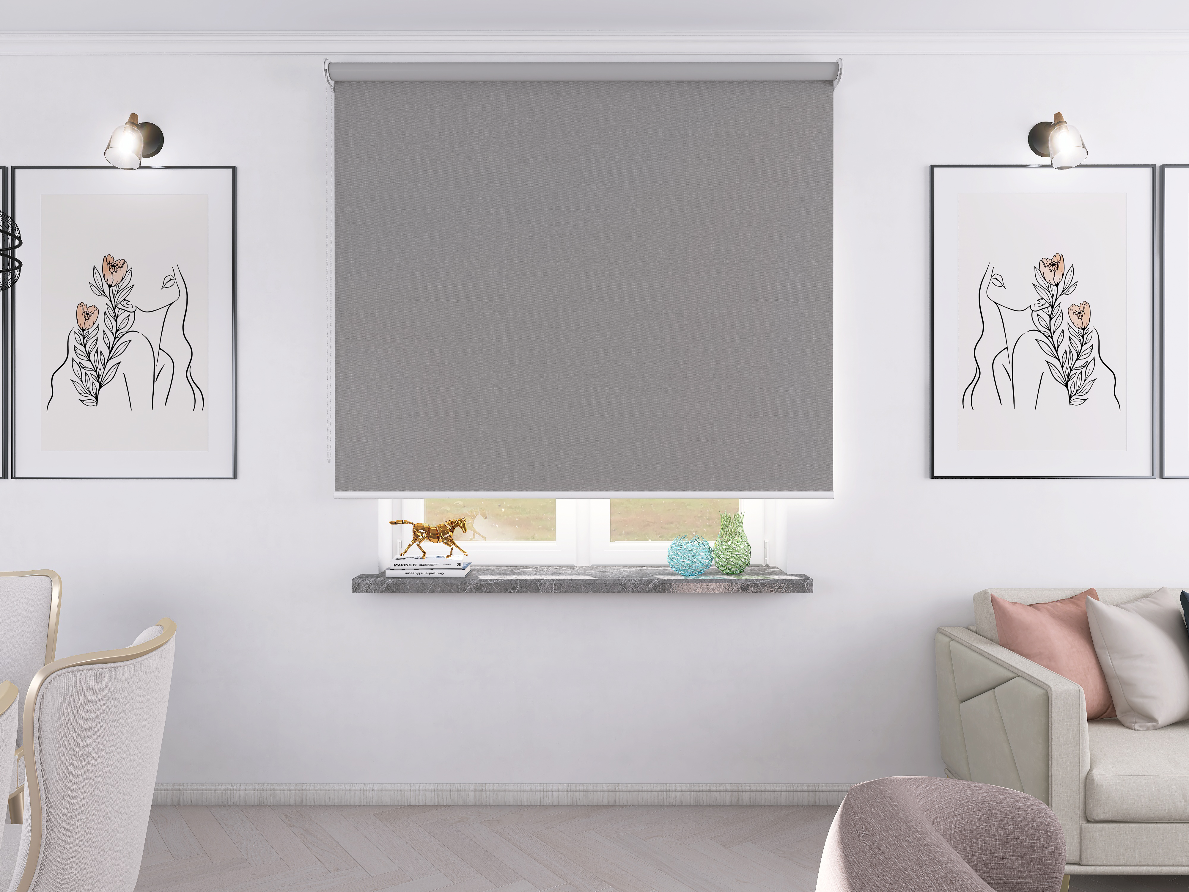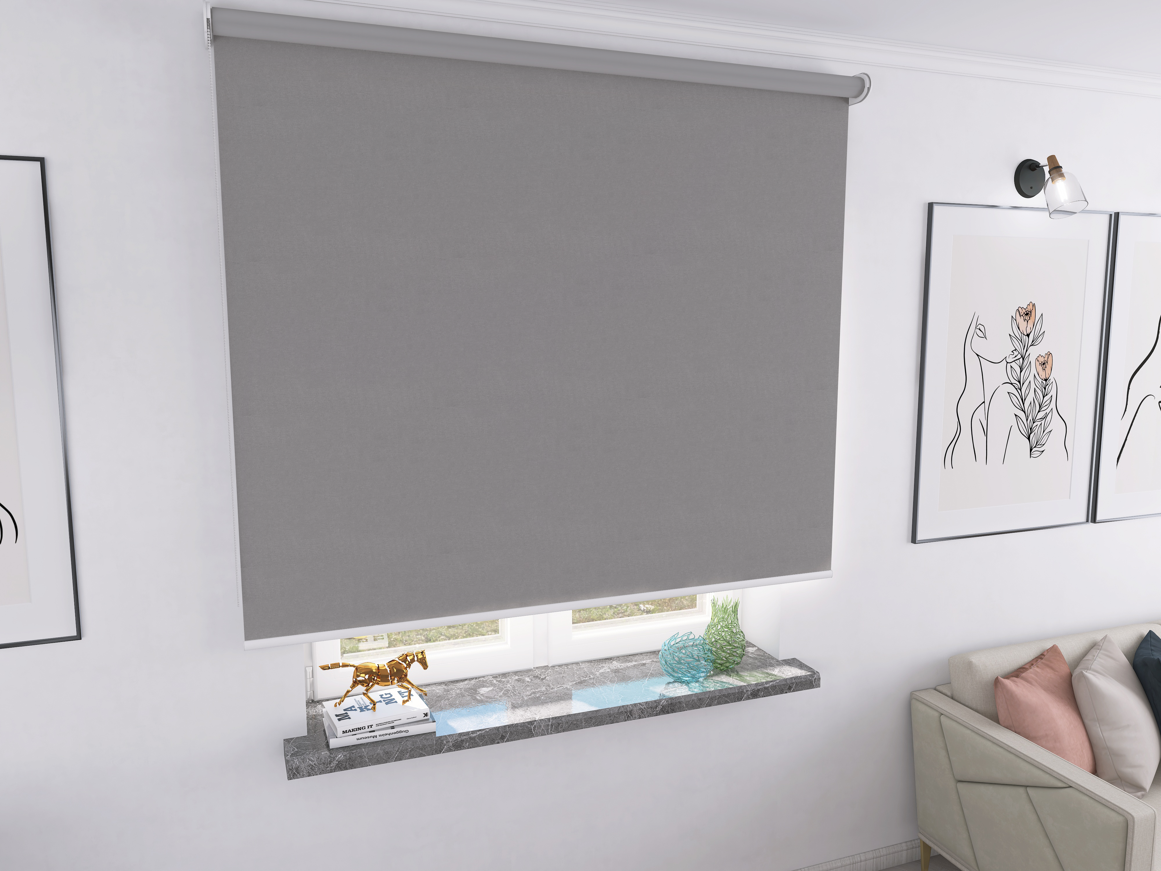 Roleta Concept XL Tkanina Blackout 054 Szary gładki – biały osprzęt