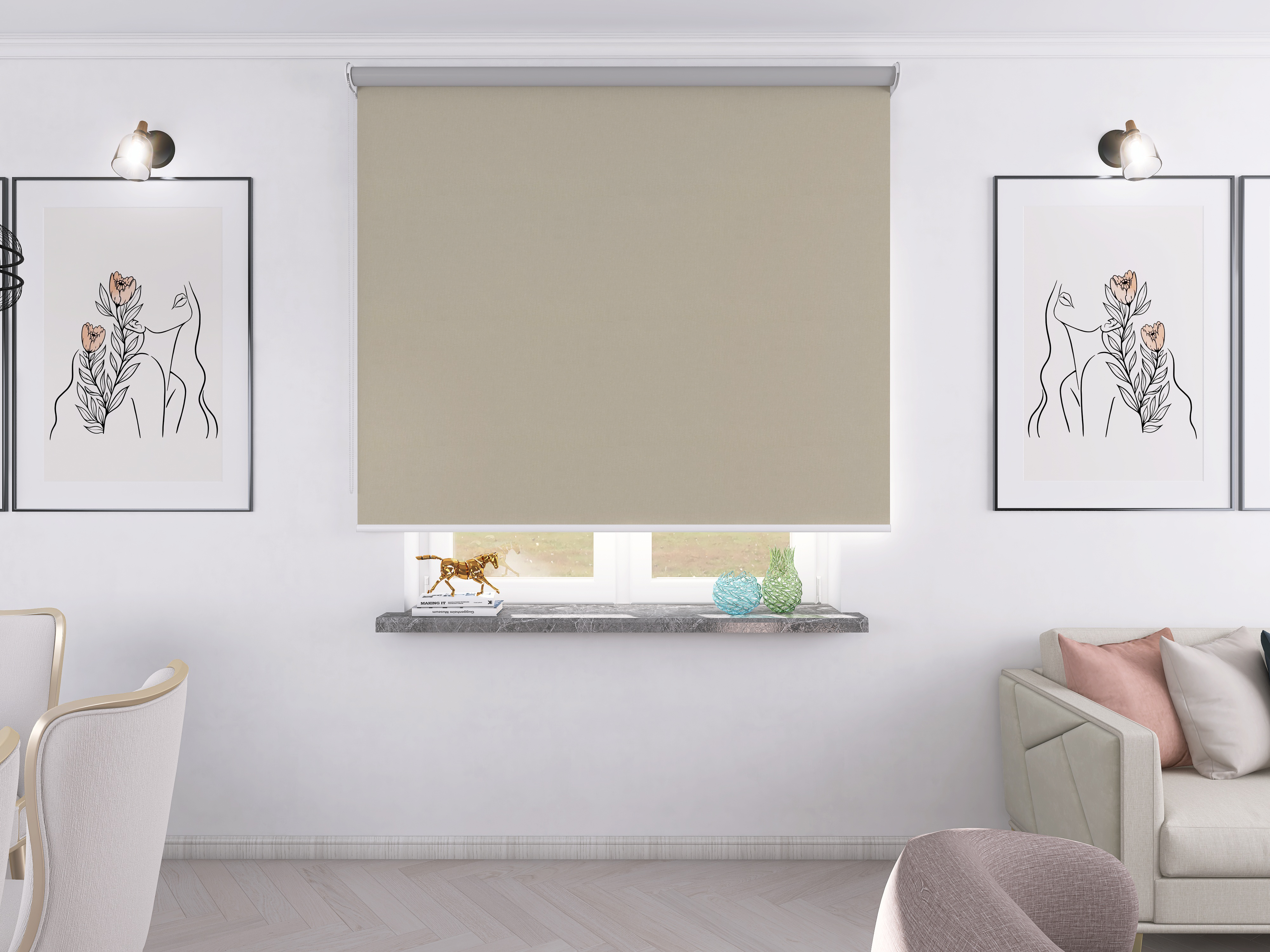 Roleta Concept XL Tkanina Blackout 056 Krem gładki – biały osprzęt