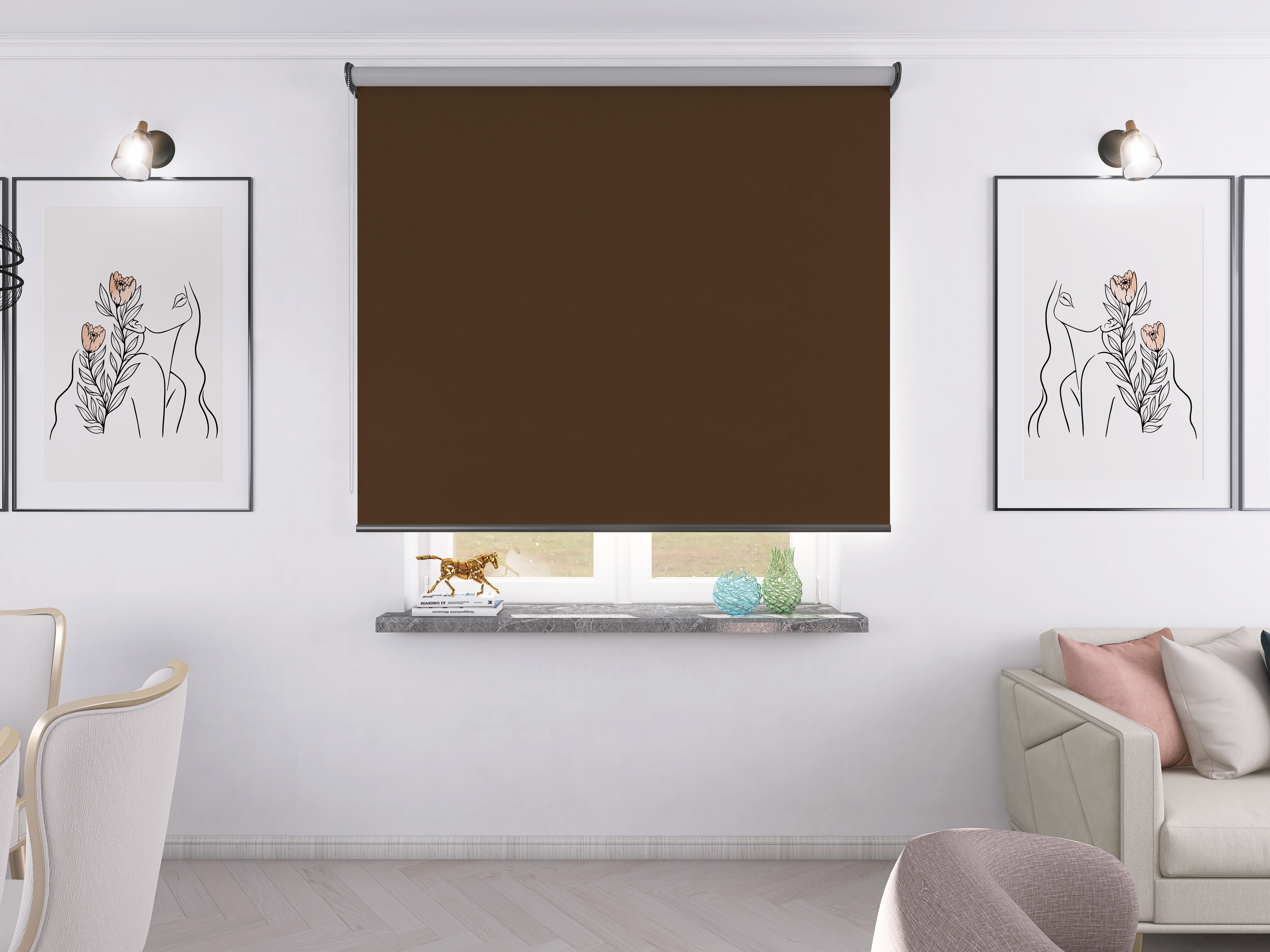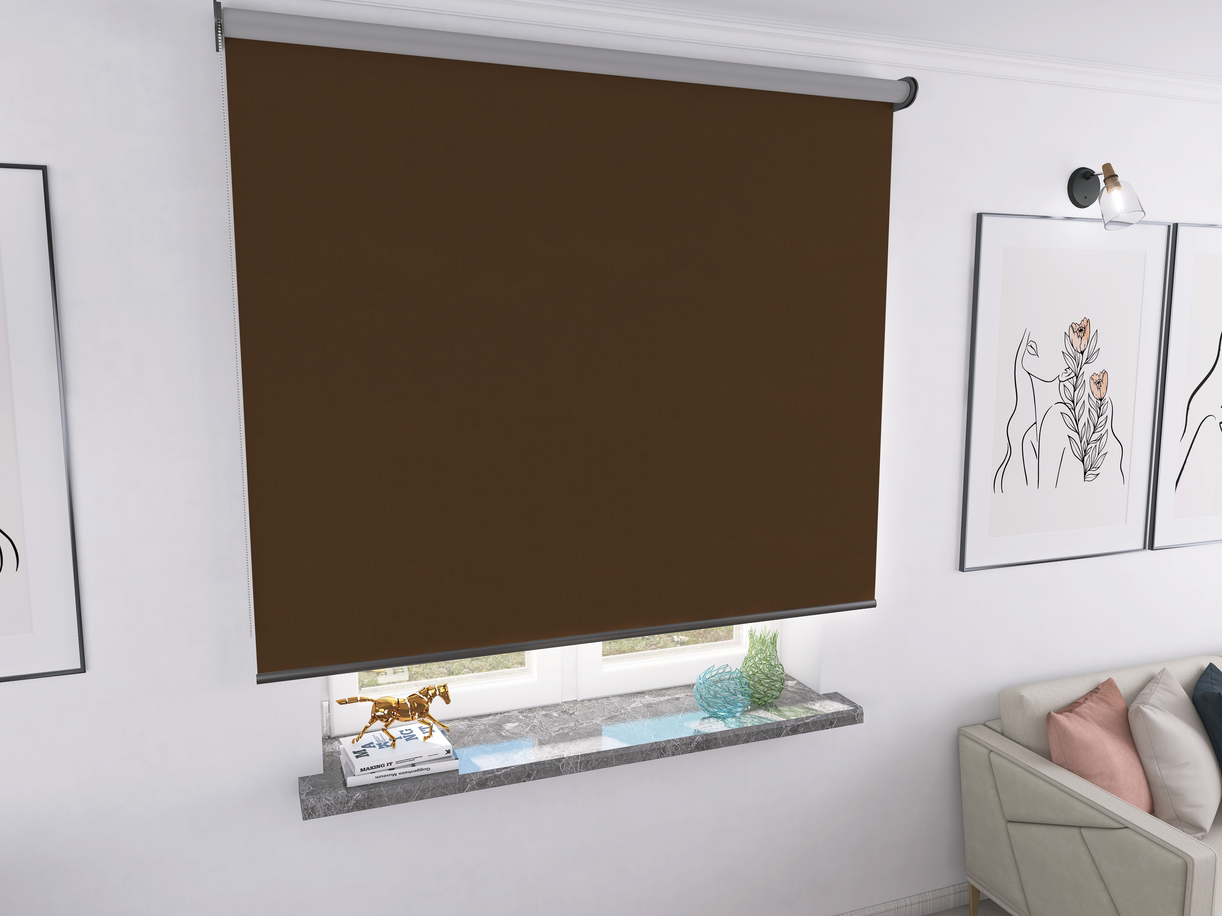 Roleta Concept XL Tkanina Blackout 301 Brąz gładki – antracytowy osprzęt