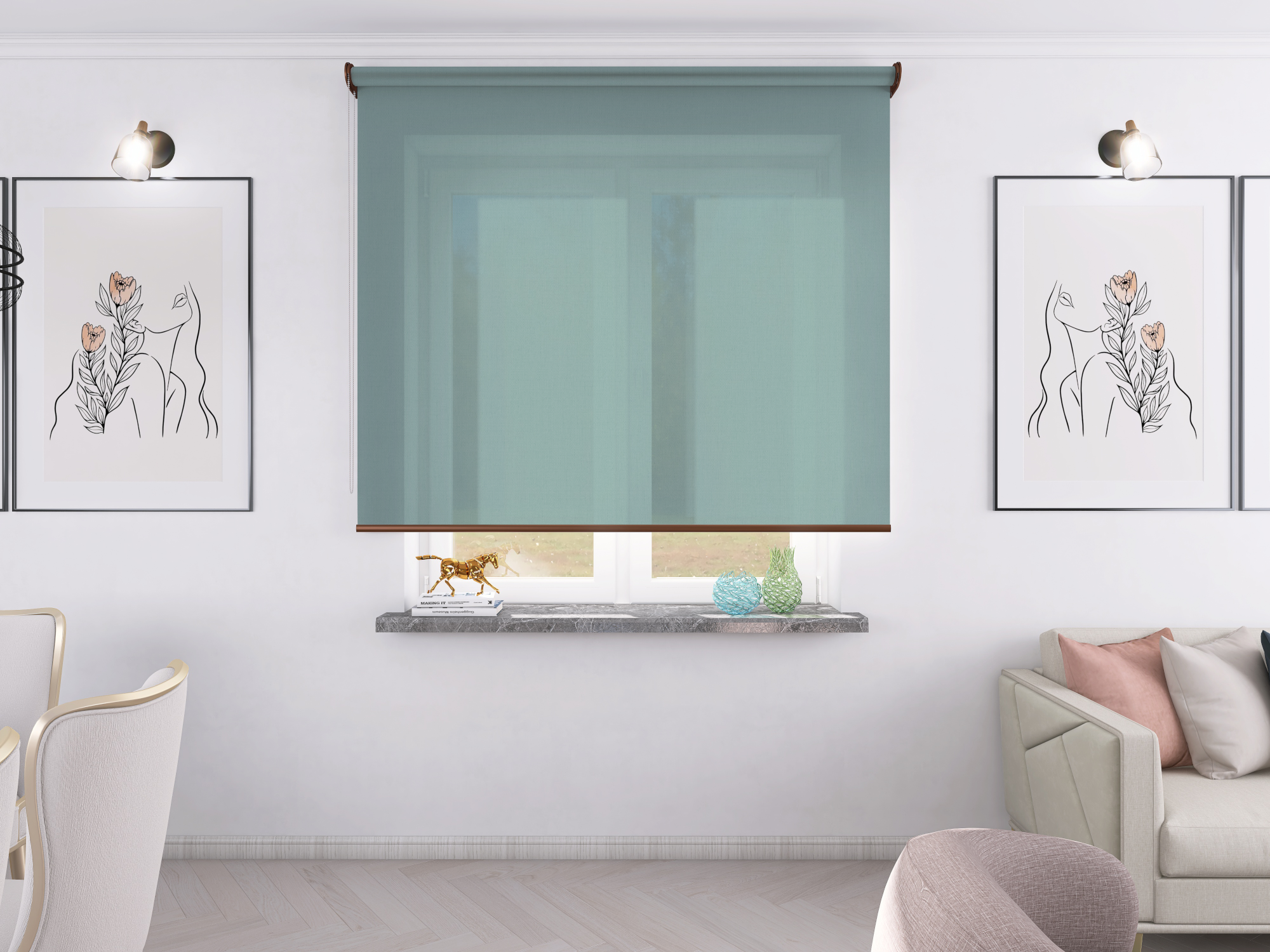 Roleta Concept XL Tkanina Diego 5300 Pastelowy Błękit - brązowy osprzęt