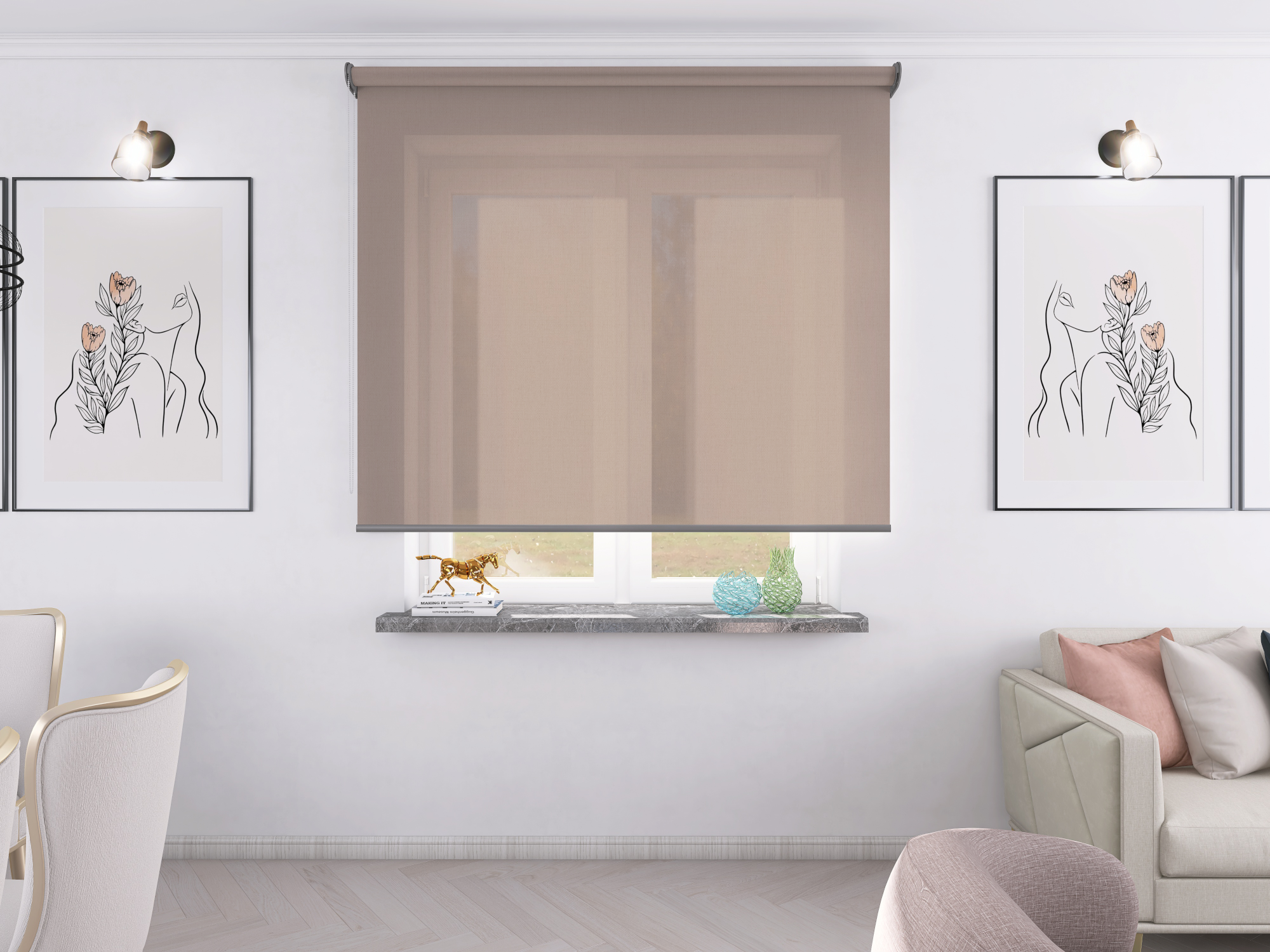 Roleta Concept XL Tkanina Diego 5311 Jasny Róż - antracytowy osprzęt