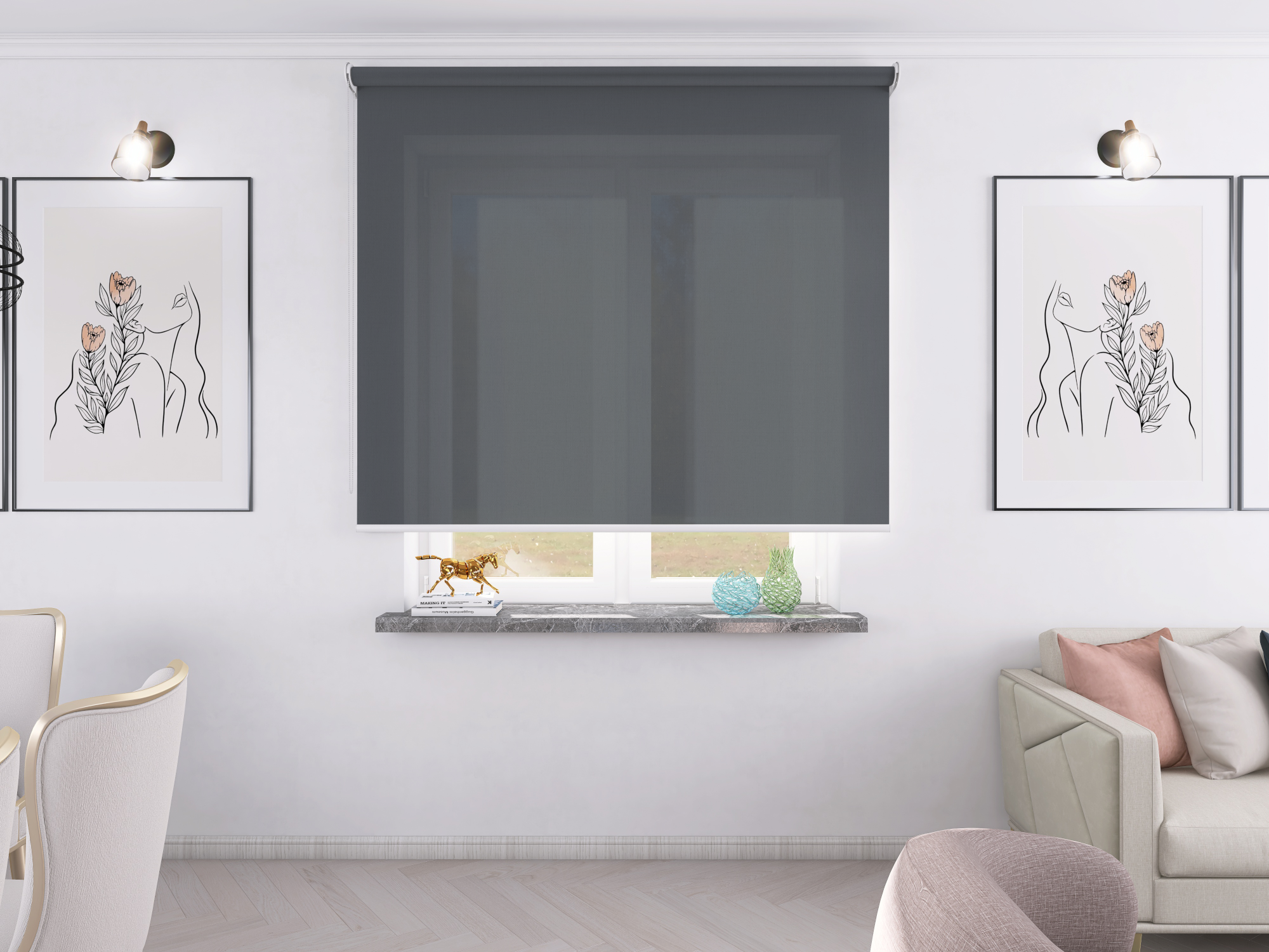 Roleta Concept XL Tkanina Diego 669 Stalowy Szary - biały osprzęt