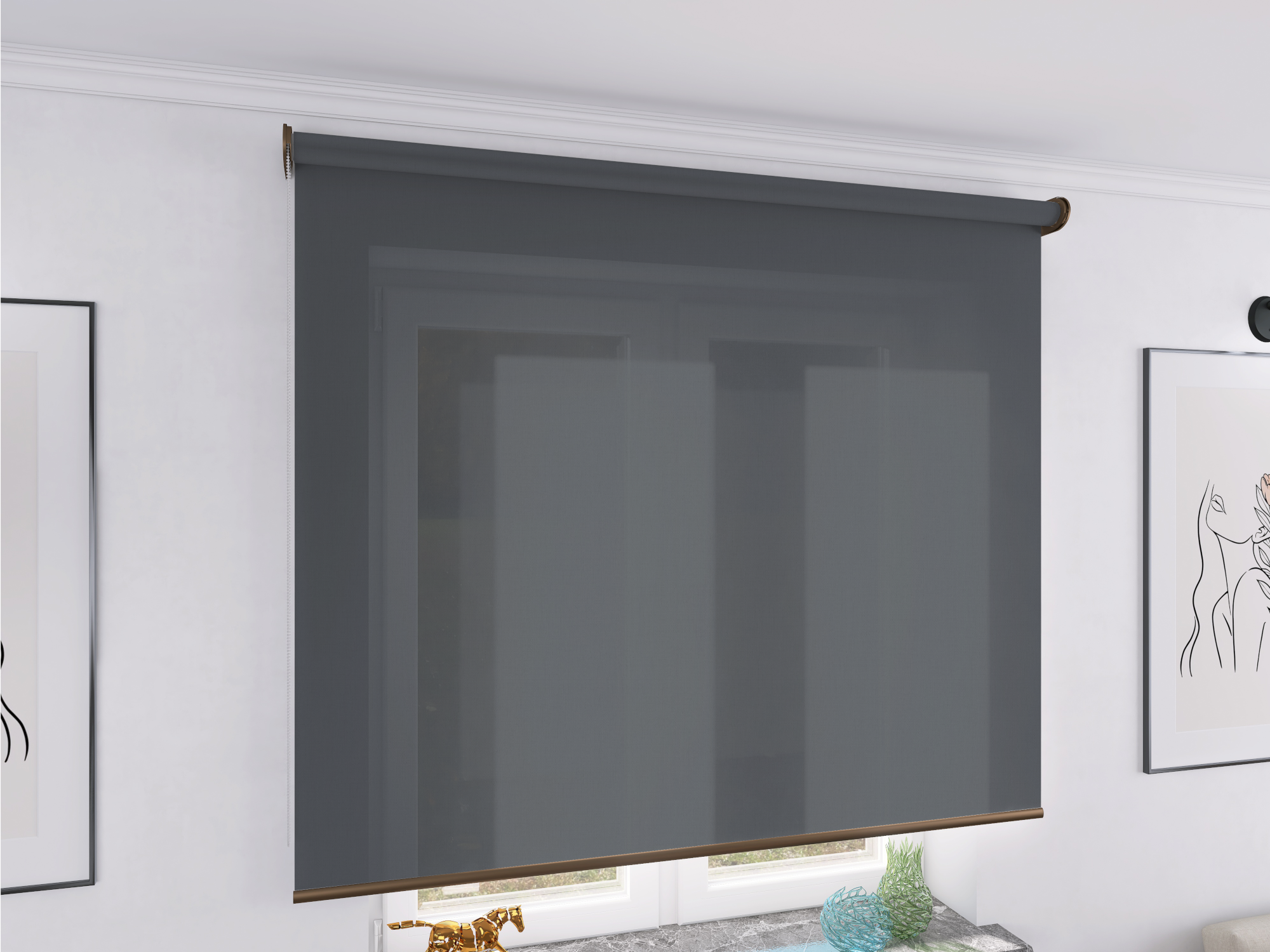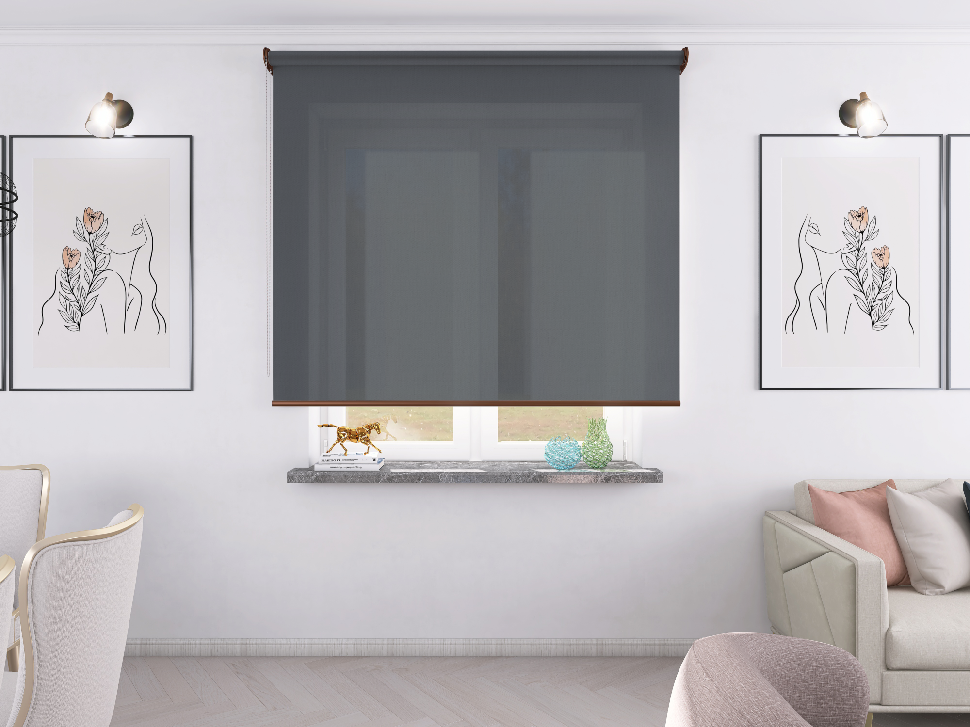 Roleta Concept XL Tkanina Diego 669 Stalowy Szary - brązowy osprzęt