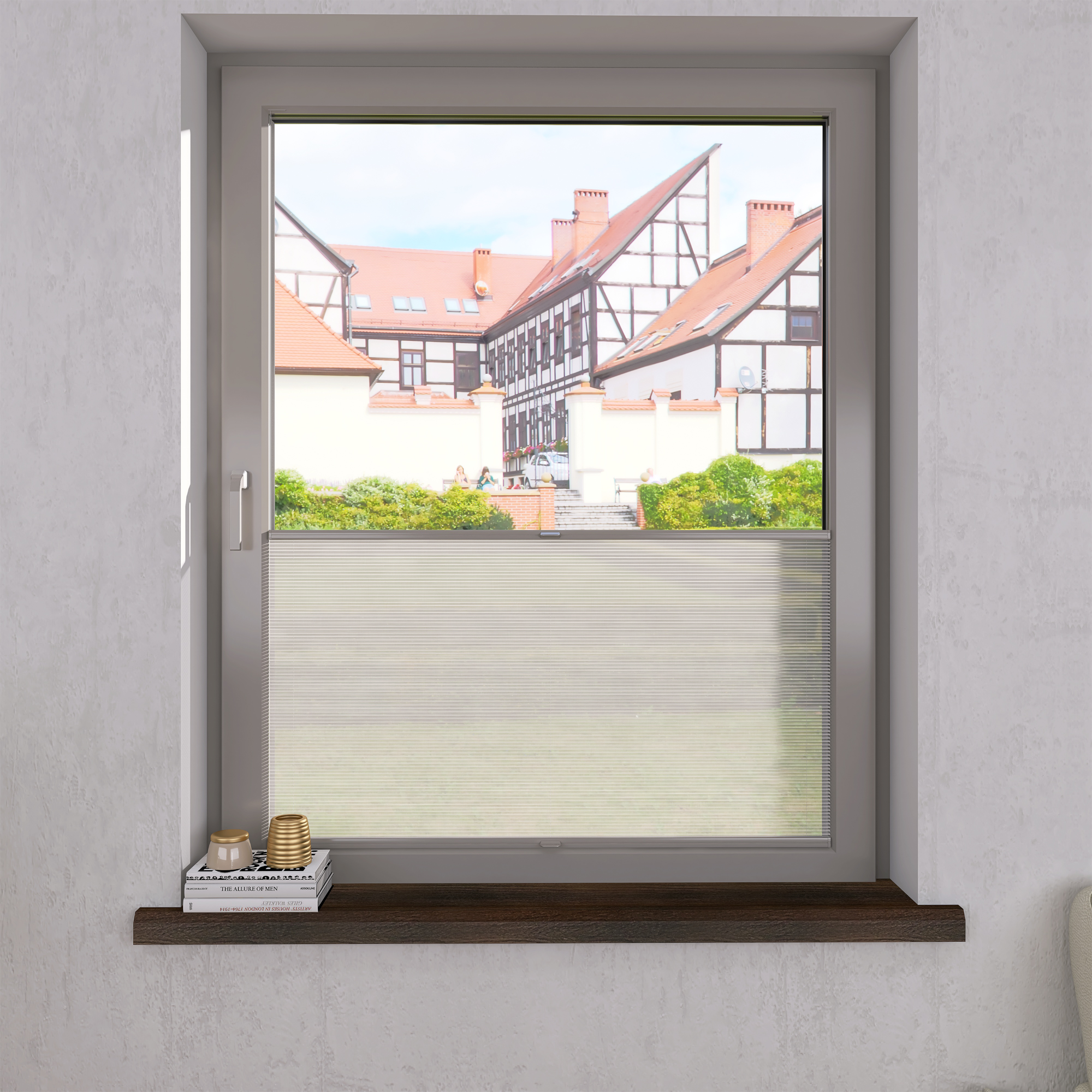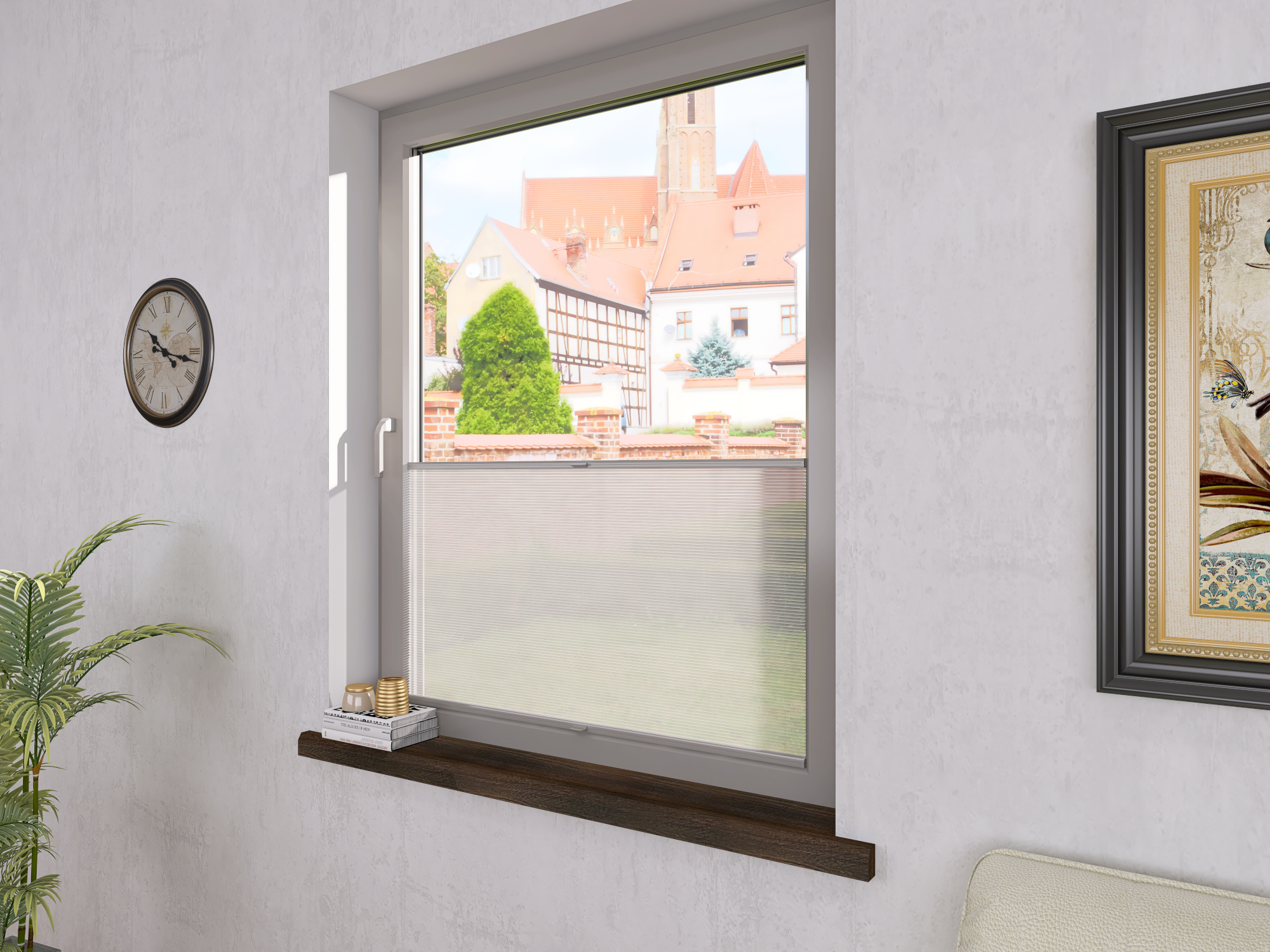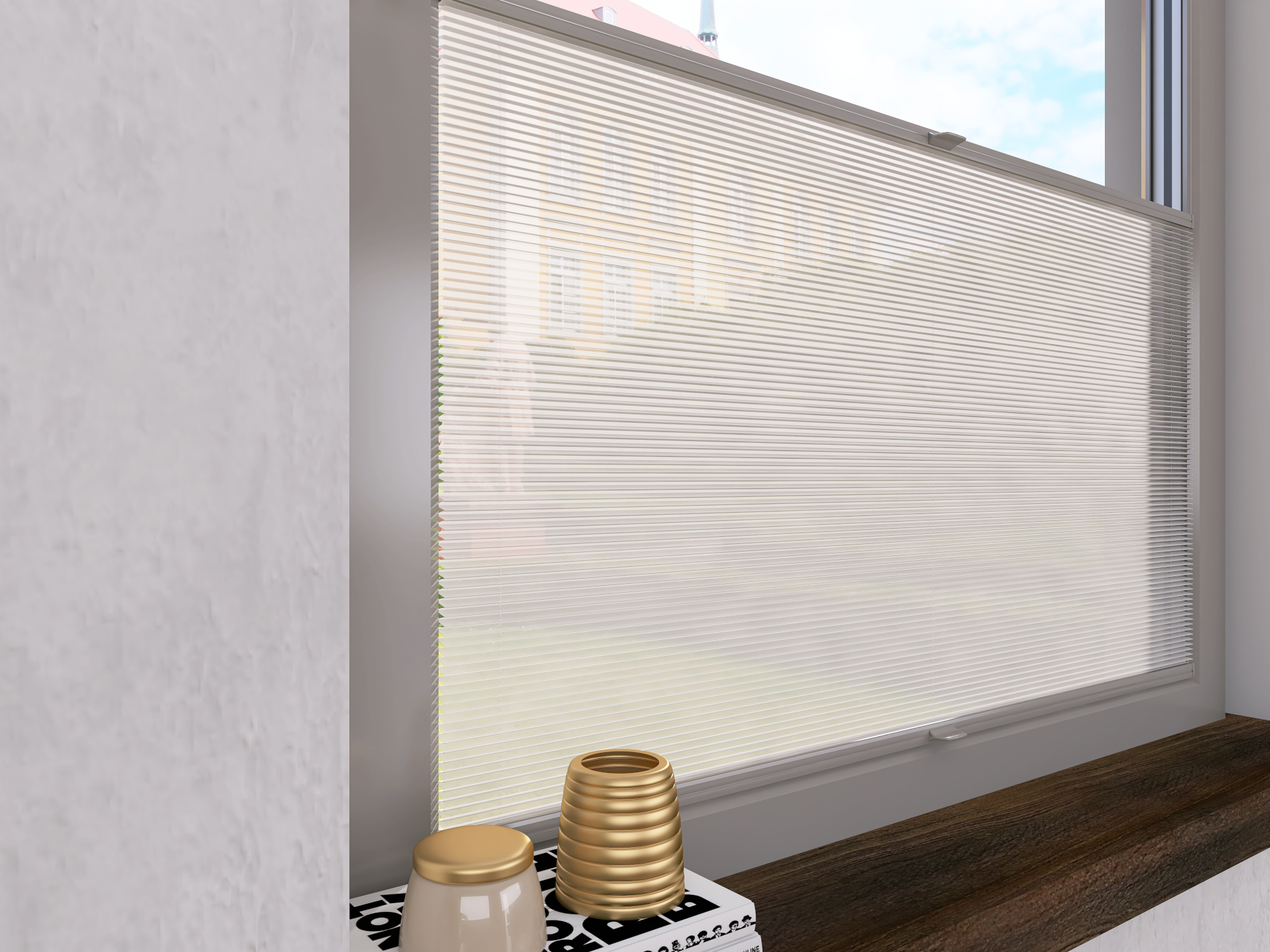 DIEGO – lekka tkanina poliestrowa (153 g/m²) o trwałych kolorach i przepuszczalności światła 28–48%. Plisowane lamelki (20 mm) nadają jej wyjątkowy wygląd, a delikatna grubość 0,4 mm sprawia, że jest subtelna i elegancka.