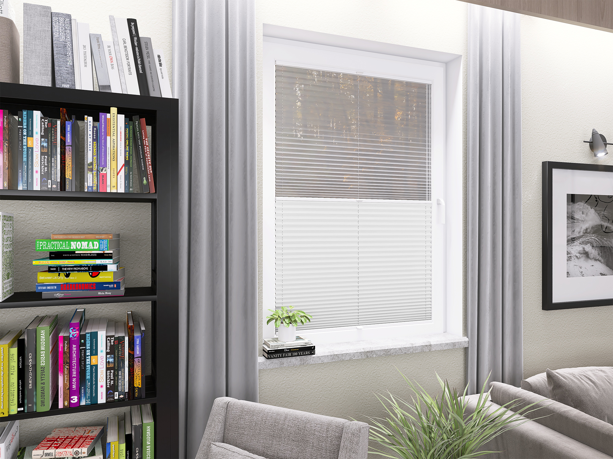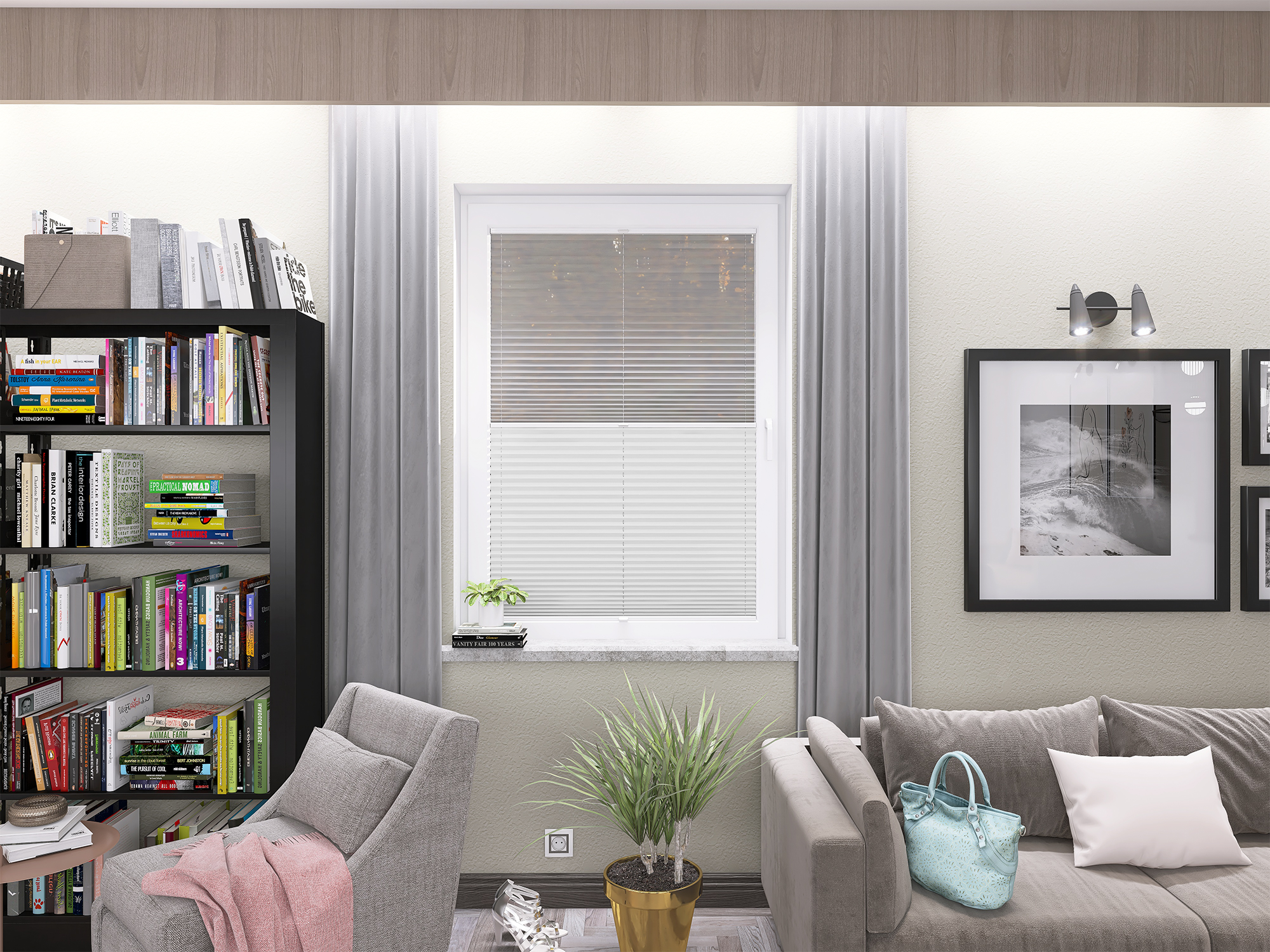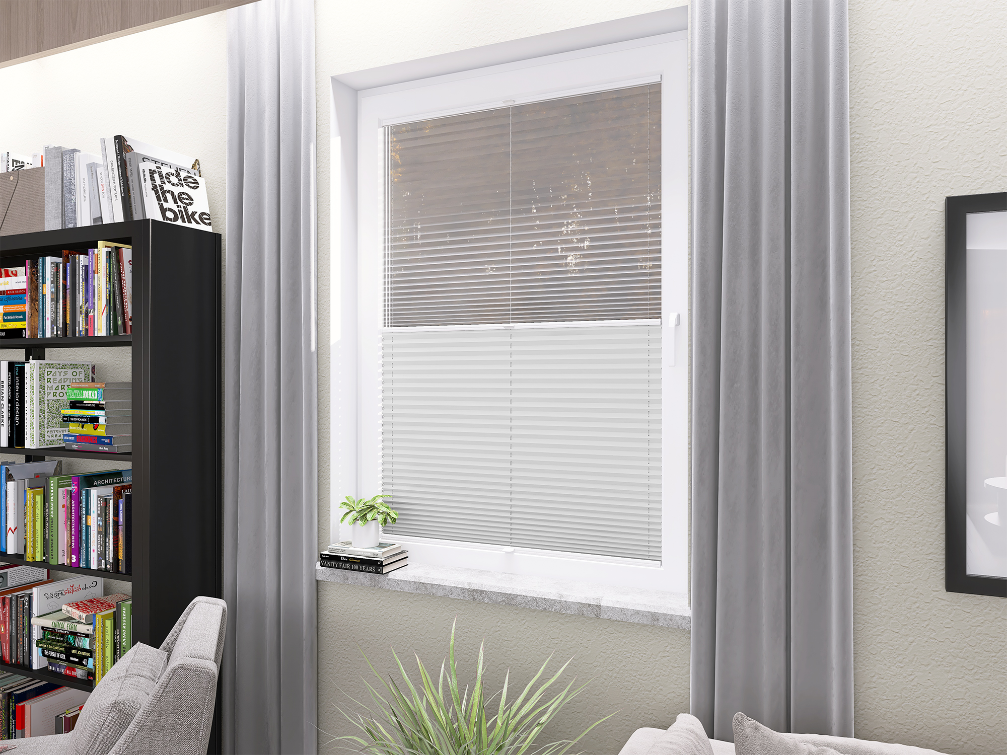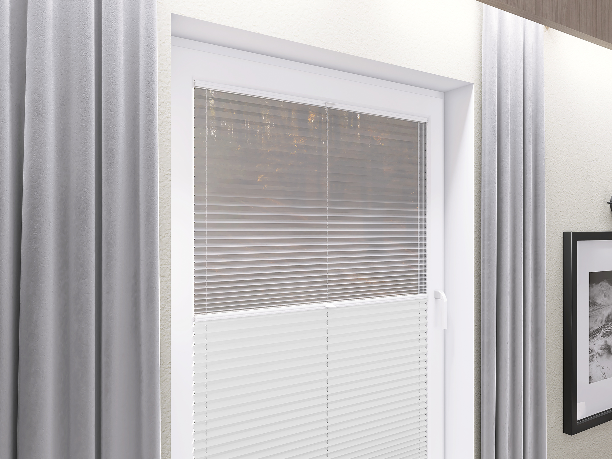DIEGO – lekka tkanina poliestrowa (153 g/m²) o trwałych kolorach i przepuszczalności światła 28–48%. Plisowane lamelki (20 mm) nadają jej wyjątkowy wygląd, a delikatna grubość 0,4 mm sprawia, że jest subtelna i elegancka.