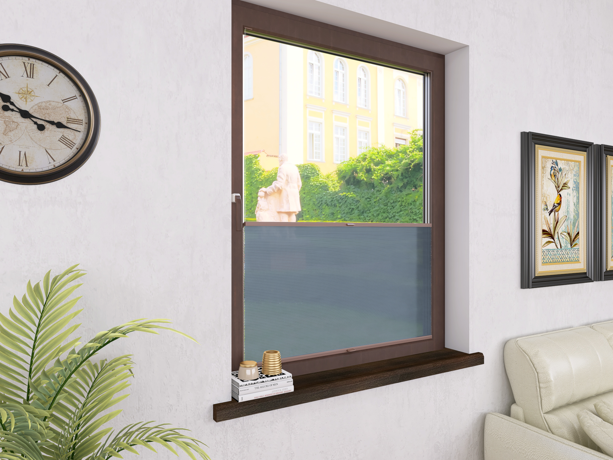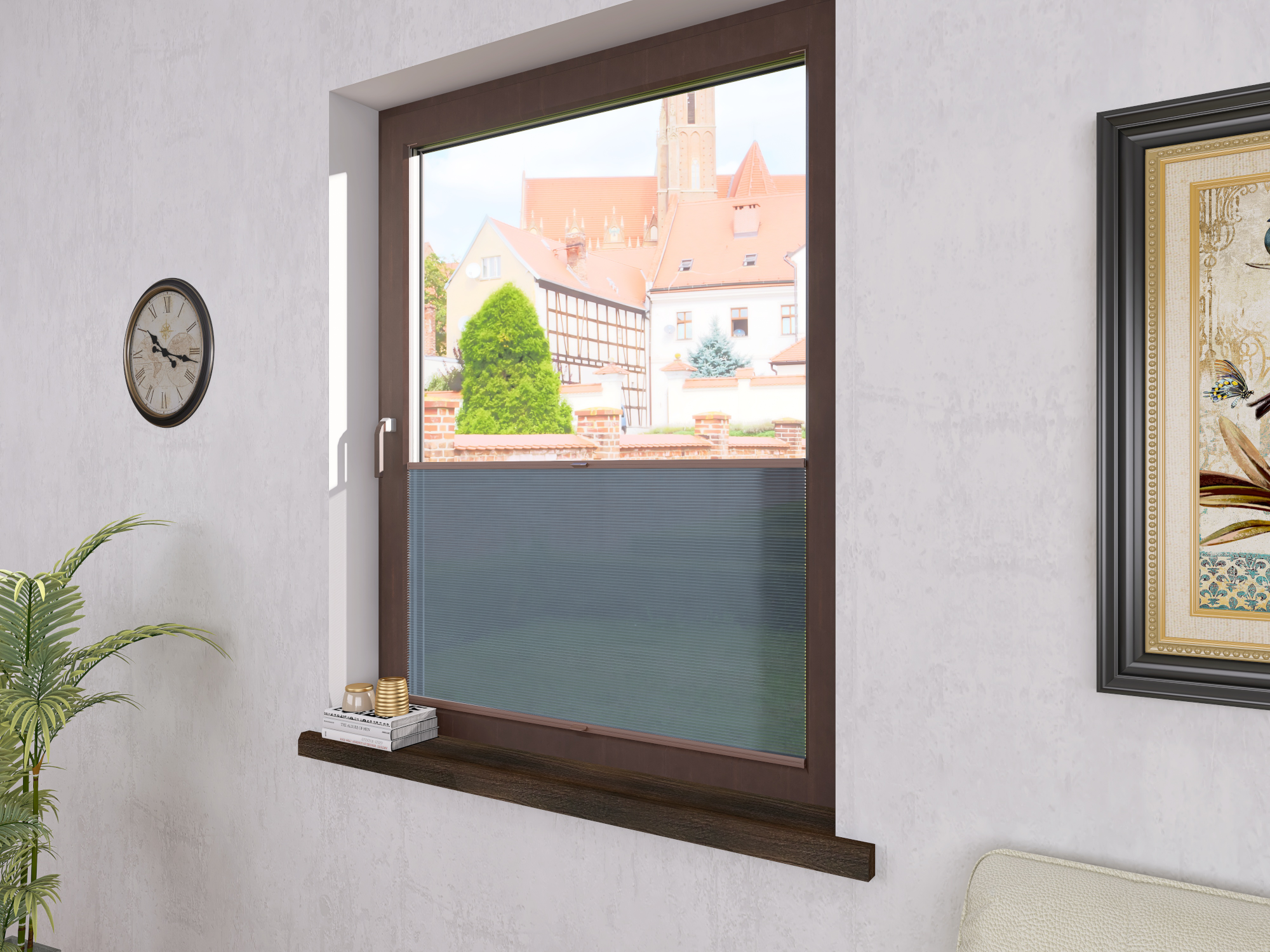 DIEGO – lekka tkanina poliestrowa (153 g/m²) o trwałych kolorach i przepuszczalności światła 28–48%. Plisowane lamelki (20 mm) nadają jej wyjątkowy wygląd, a delikatna grubość 0,4 mm sprawia, że jest subtelna i elegancka.