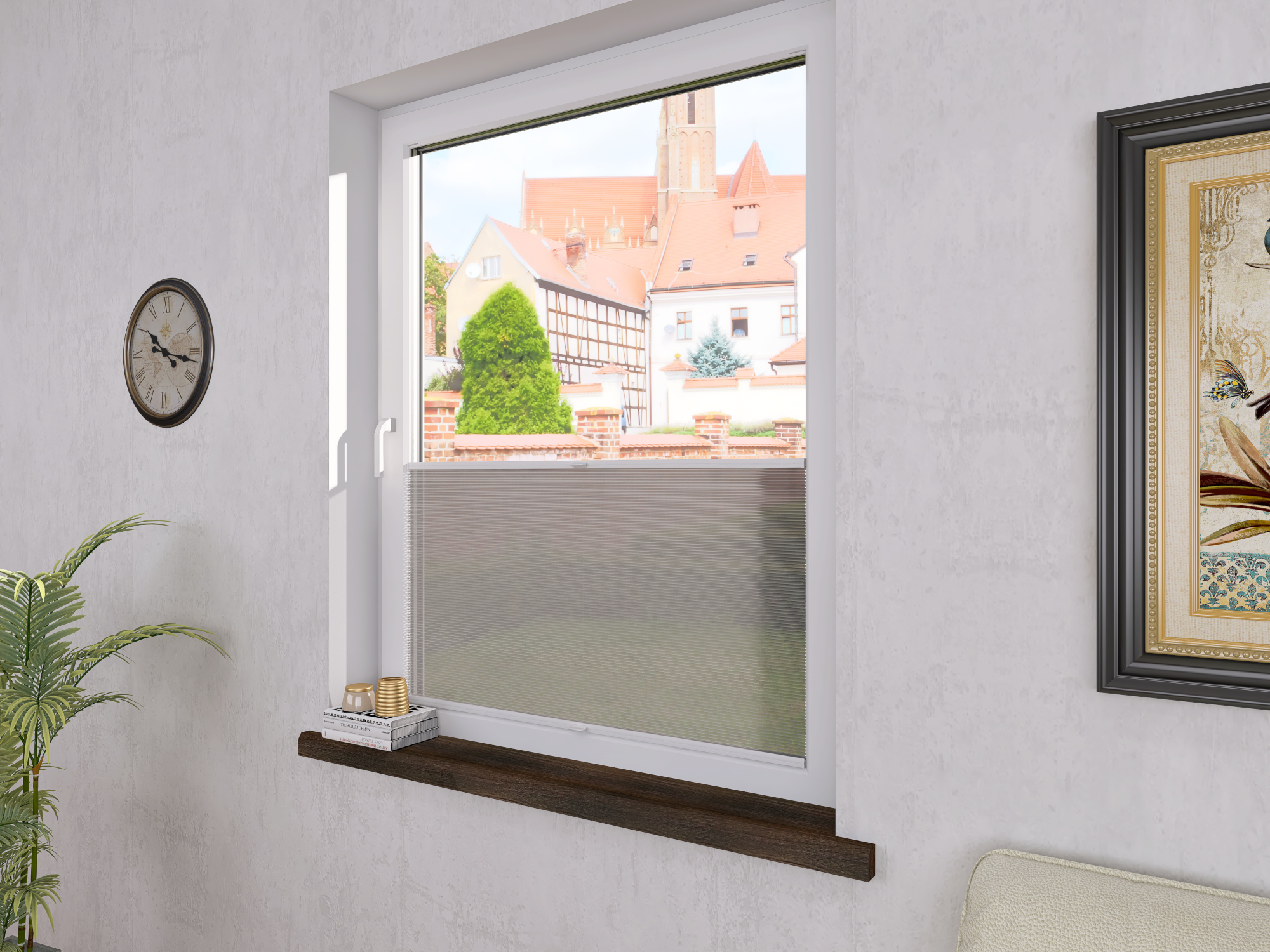 DIEGO – lekka tkanina poliestrowa (153 g/m²) o trwałych kolorach i przepuszczalności światła 28–48%. Plisowane lamelki (20 mm) nadają jej wyjątkowy wygląd, a delikatna grubość 0,4 mm sprawia, że jest subtelna i elegancka.