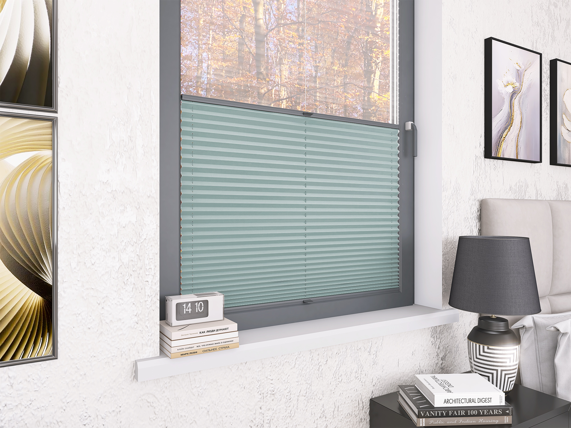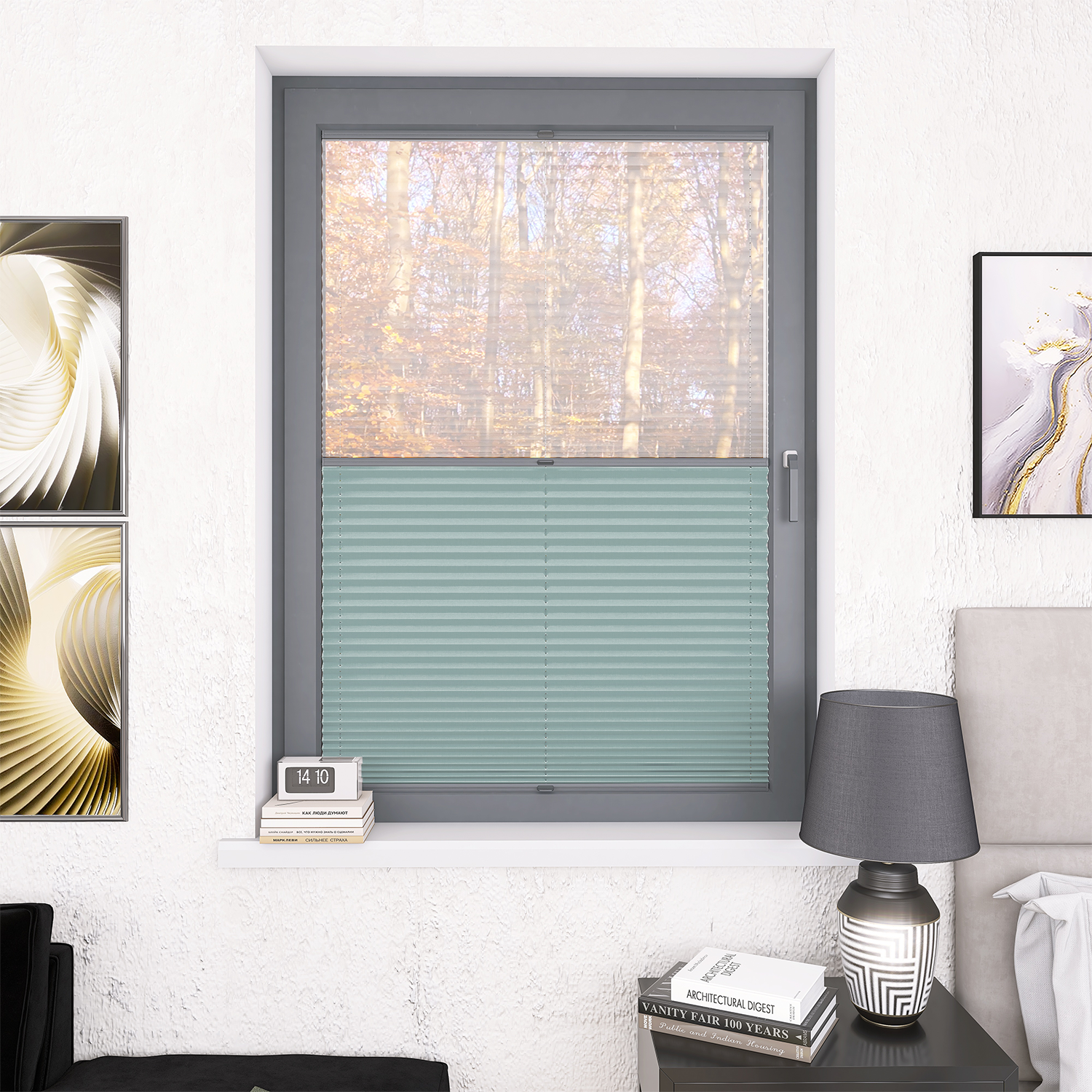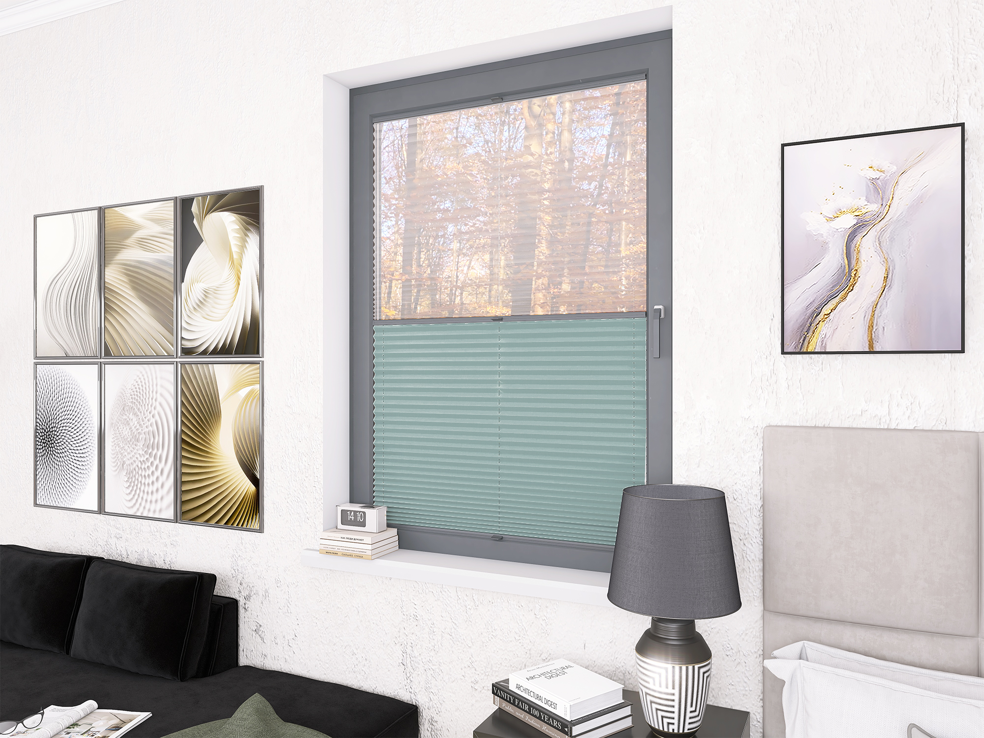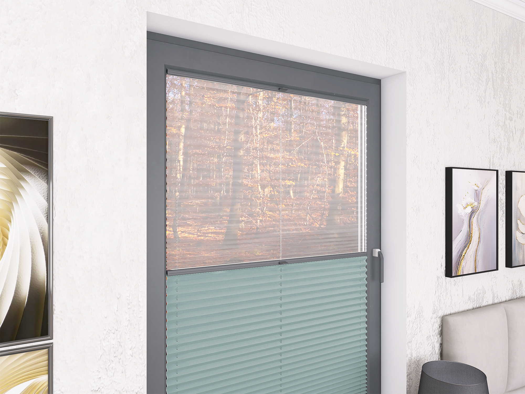 Roleta Plisowana 5300 Pastelowy Błękit + Firana - Profil Vegas Antracyt