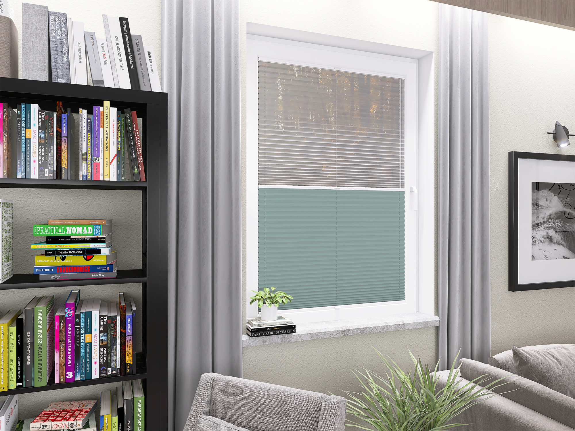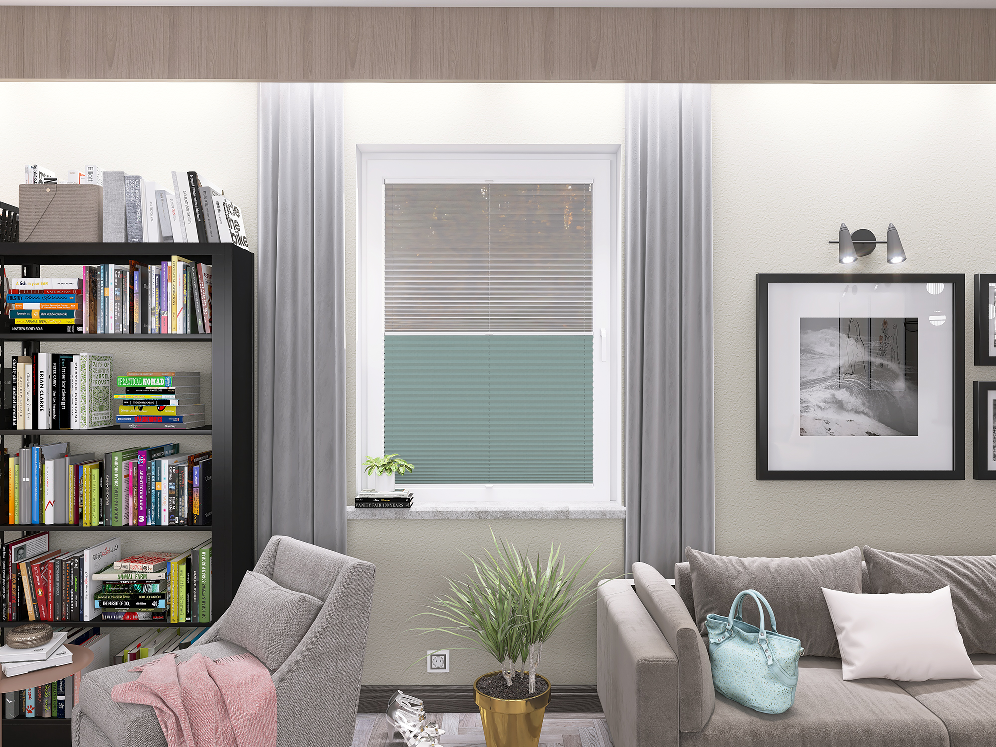 DIEGO – lekka tkanina poliestrowa (153 g/m²) o trwałych kolorach i przepuszczalności światła 28–48%. Plisowane lamelki (20 mm) nadają jej wyjątkowy wygląd, a delikatna grubość 0,4 mm sprawia, że jest subtelna i elegancka.