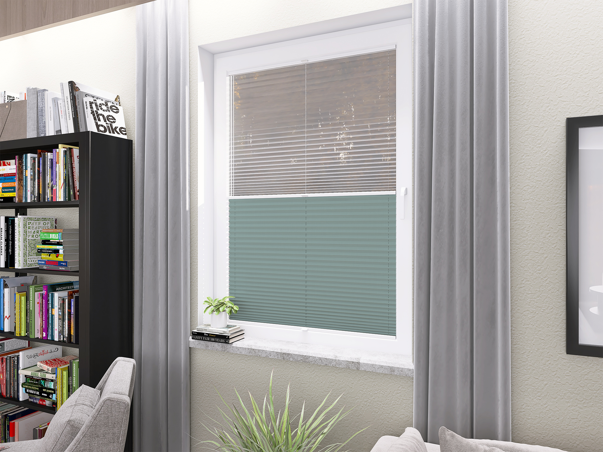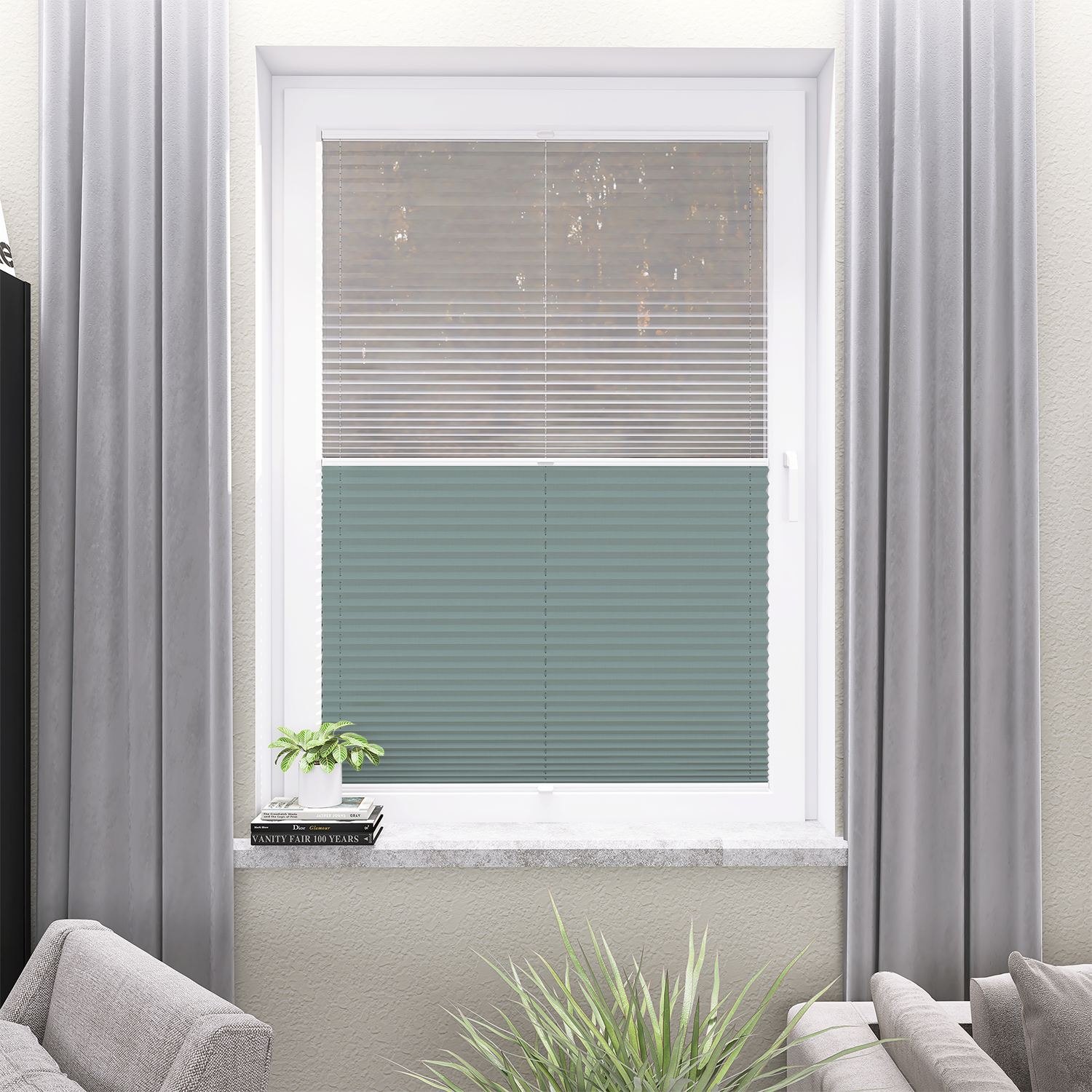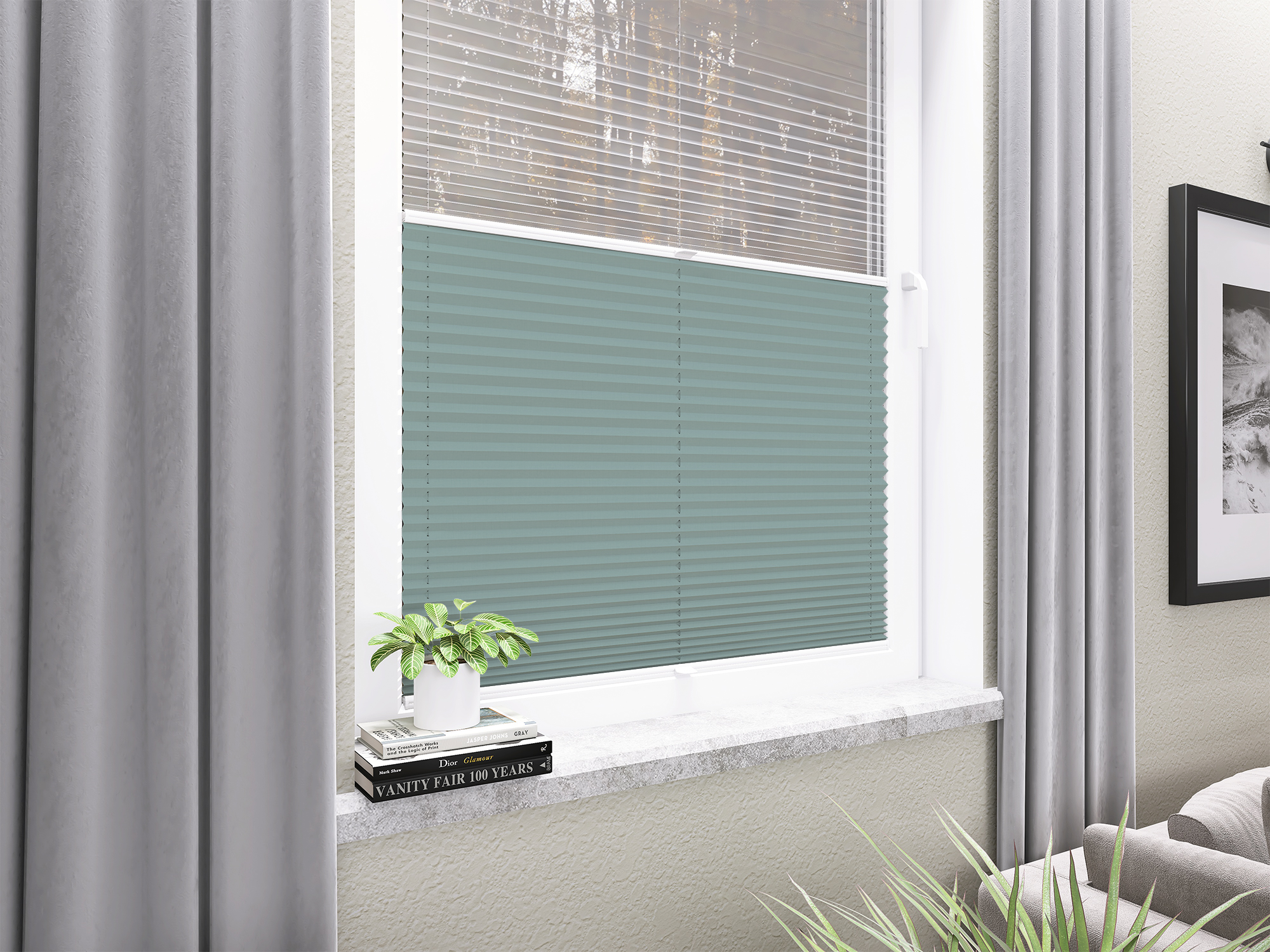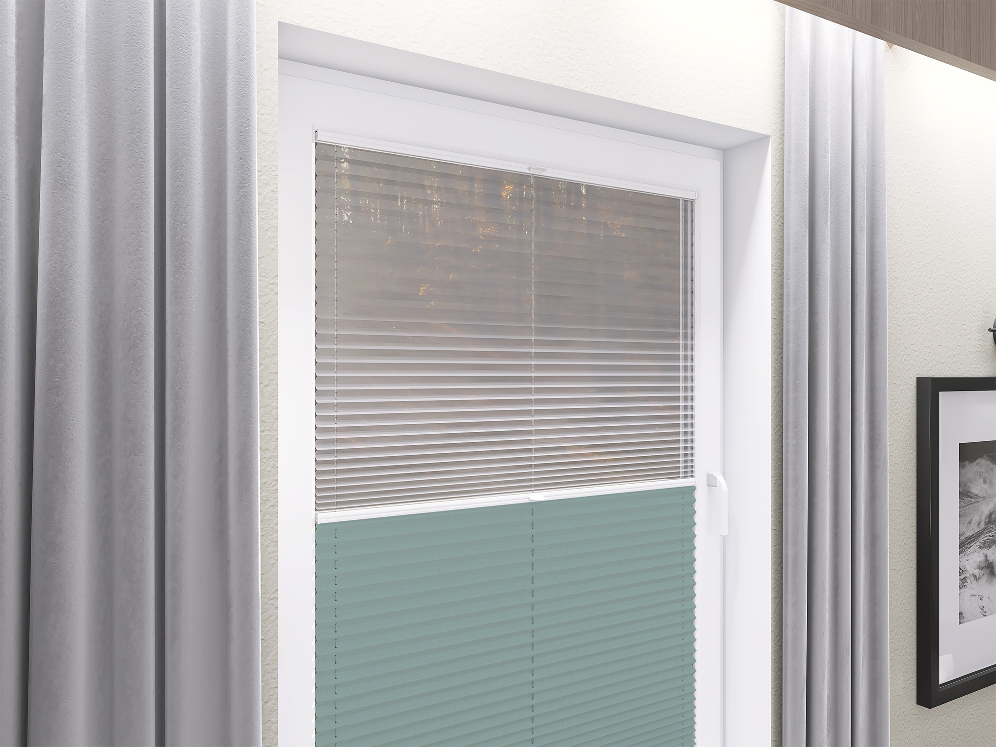 Roleta Plisowana 5300 Pastelowy Błękit + Firana - Profil Vegas Biały