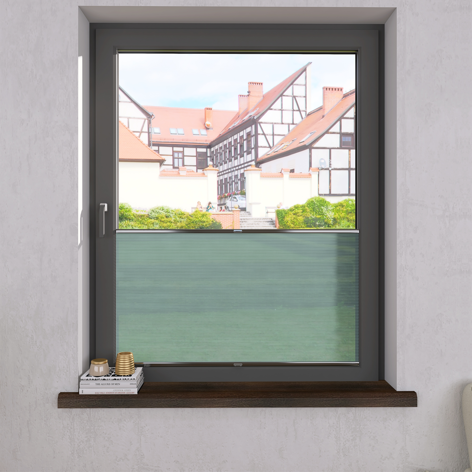 DIEGO – lekka tkanina poliestrowa (153 g/m²) o trwałych kolorach i przepuszczalności światła 28–48%. Plisowane lamelki (20 mm) nadają jej wyjątkowy wygląd, a delikatna grubość 0,4 mm sprawia, że jest subtelna i elegancka.
