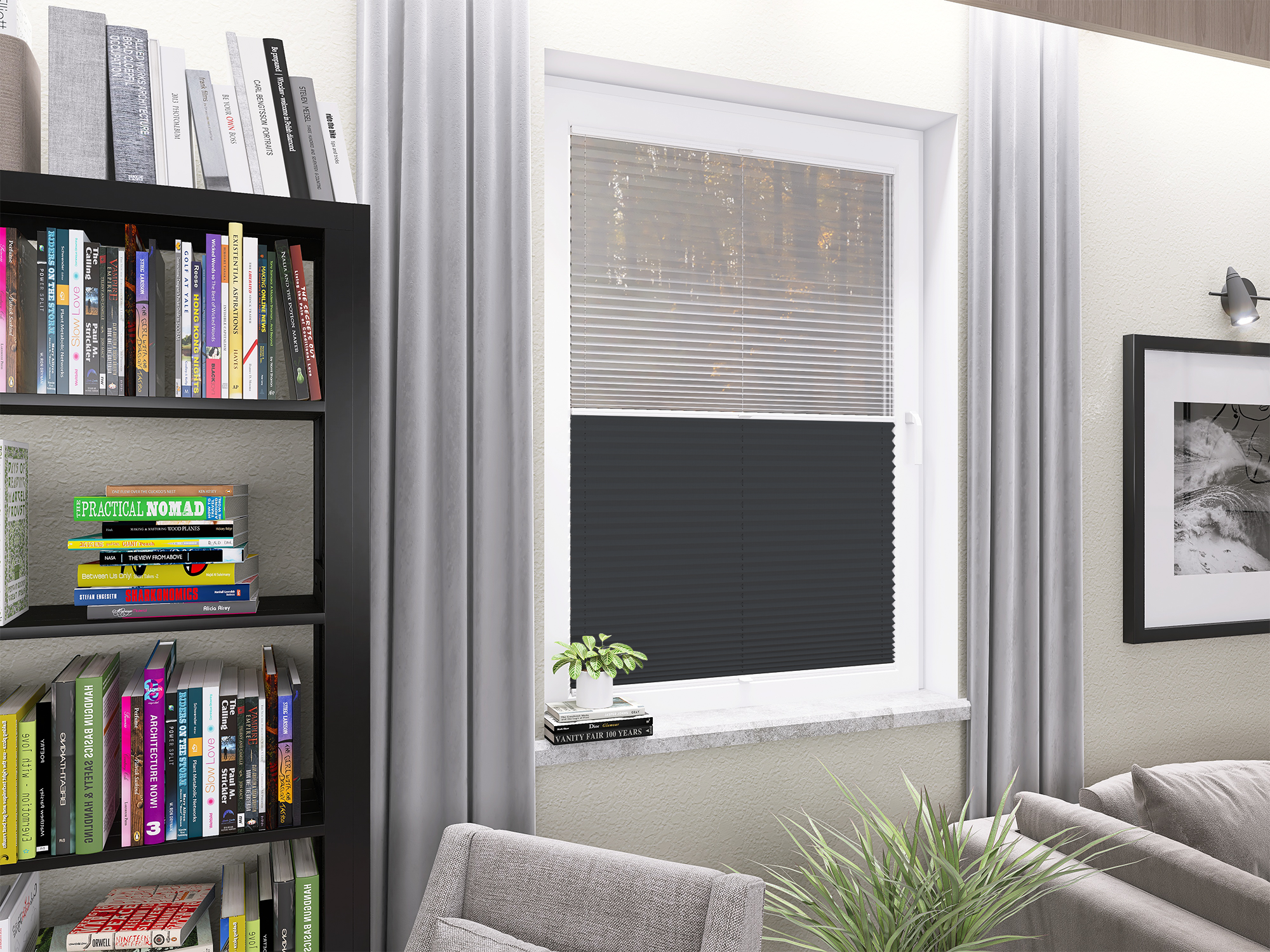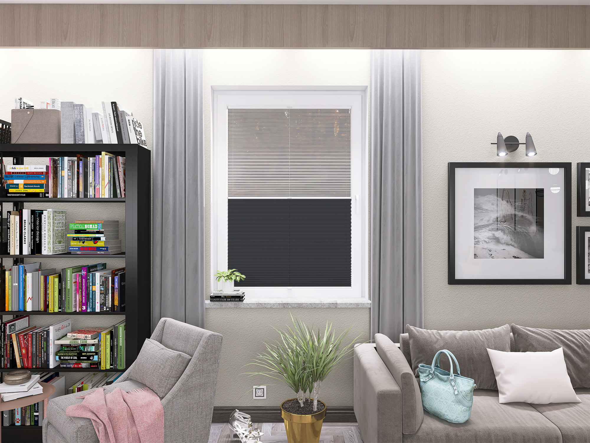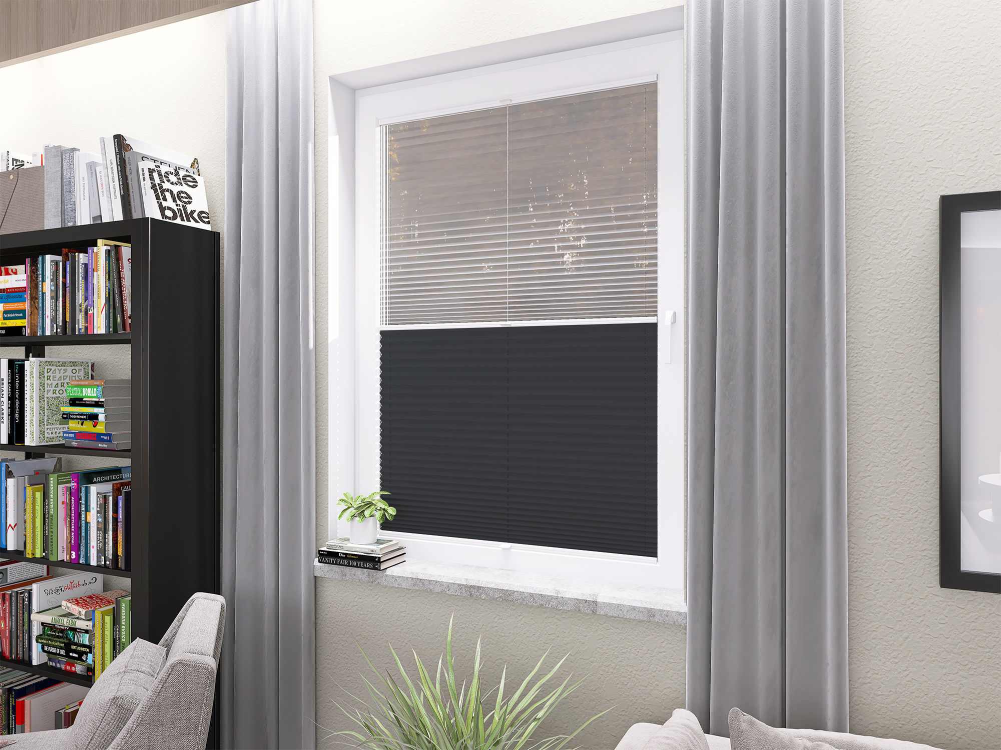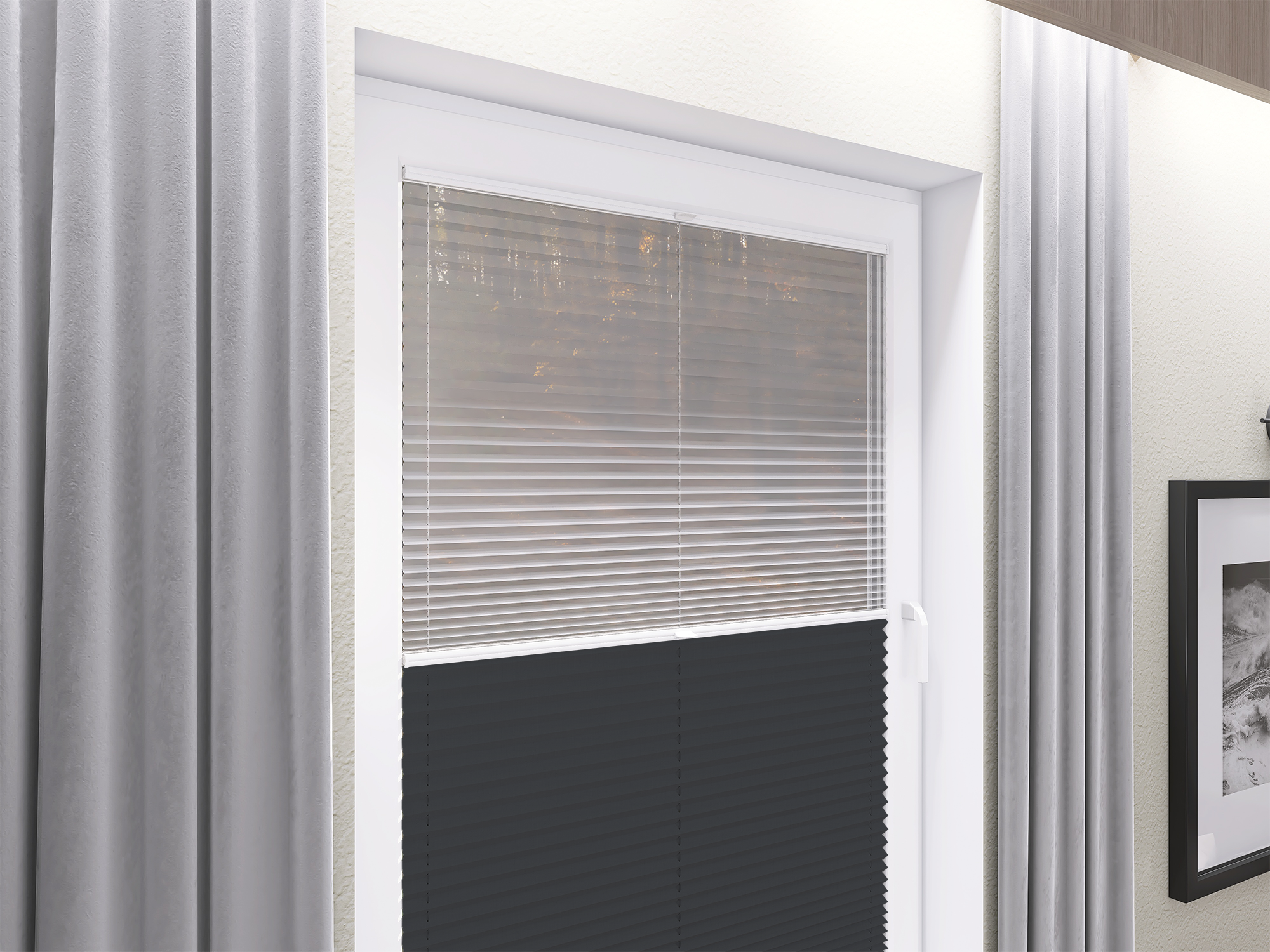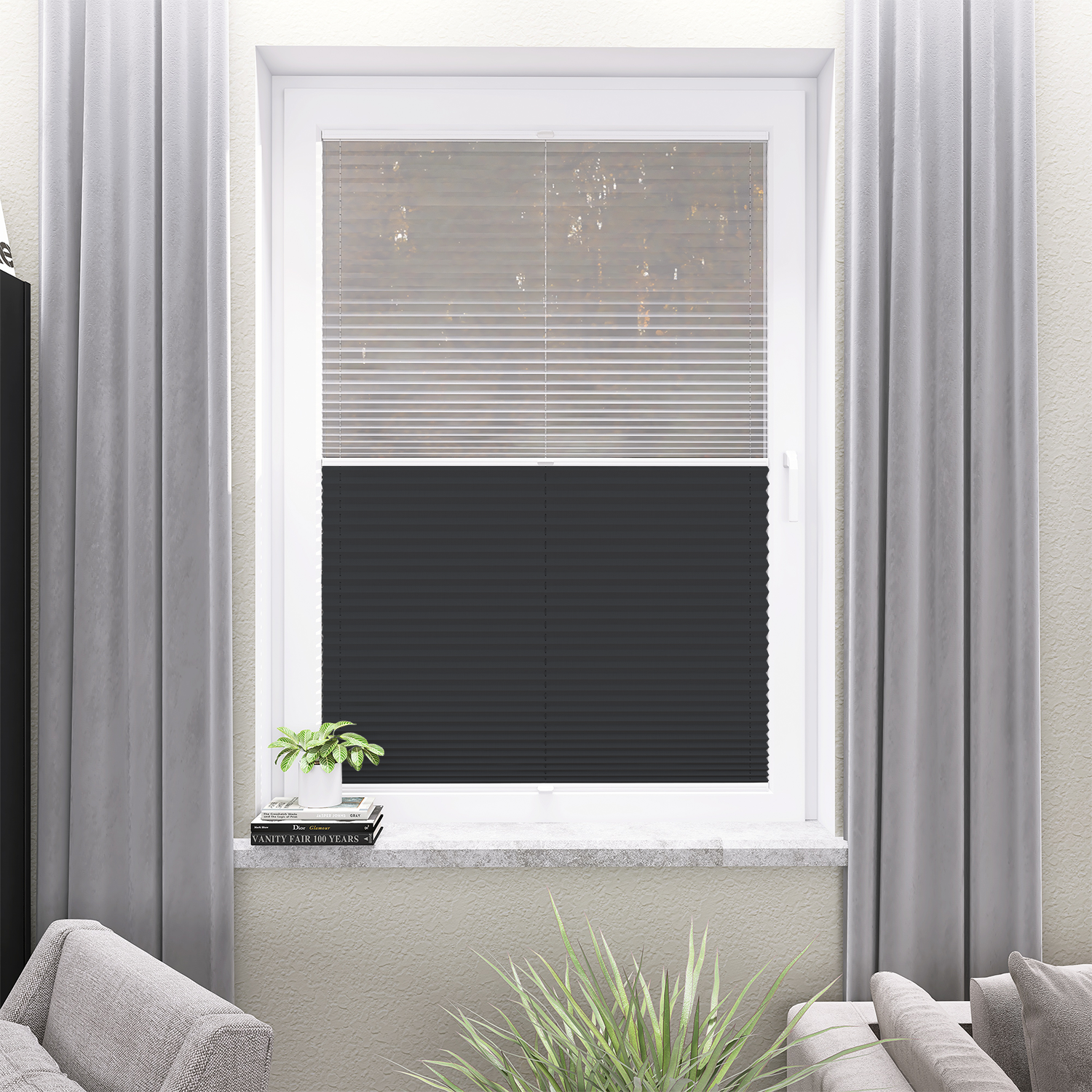Roleta Plisowana 5306 Ciemny Szary + Firana - Profil Vegas Biały