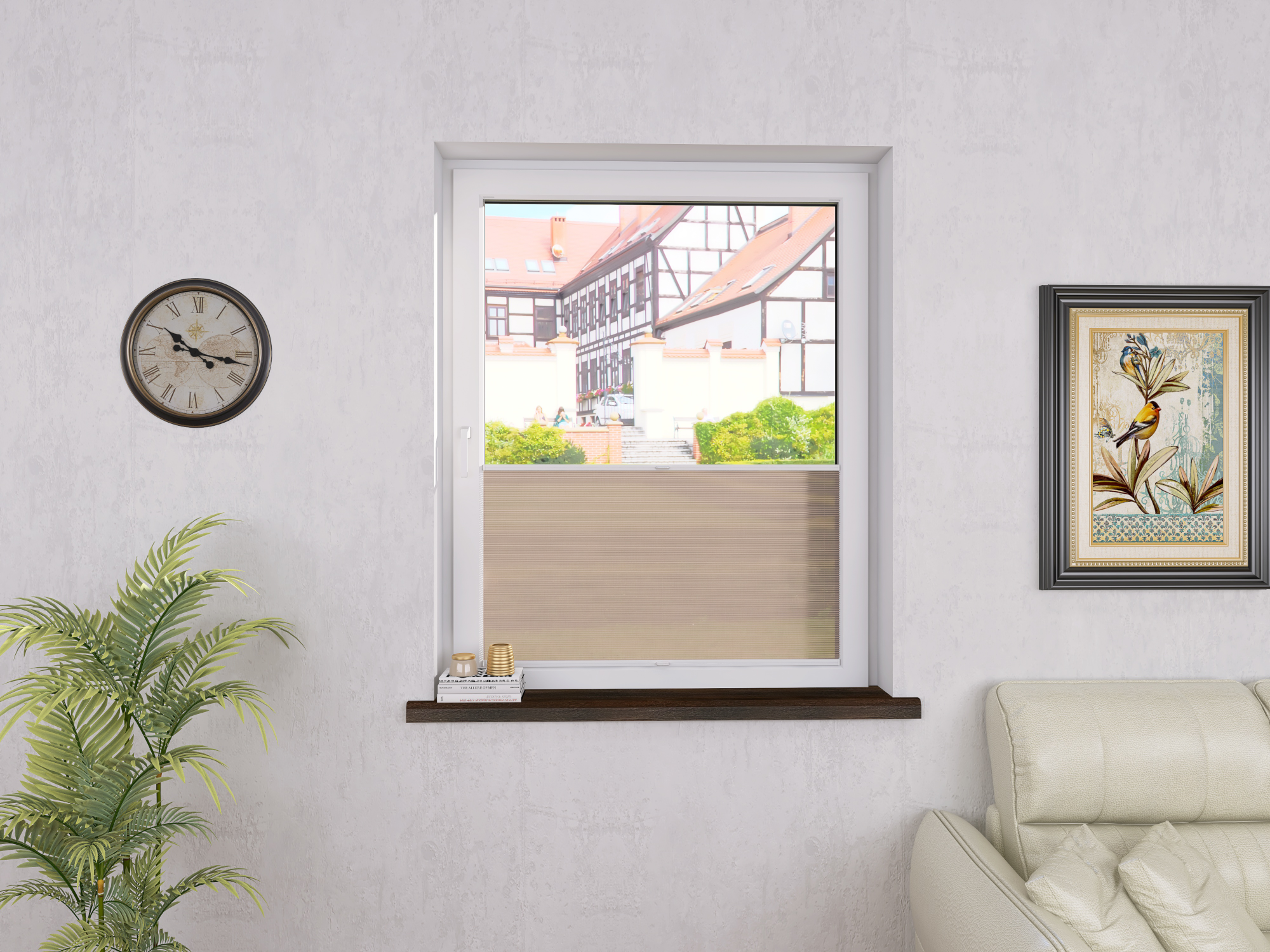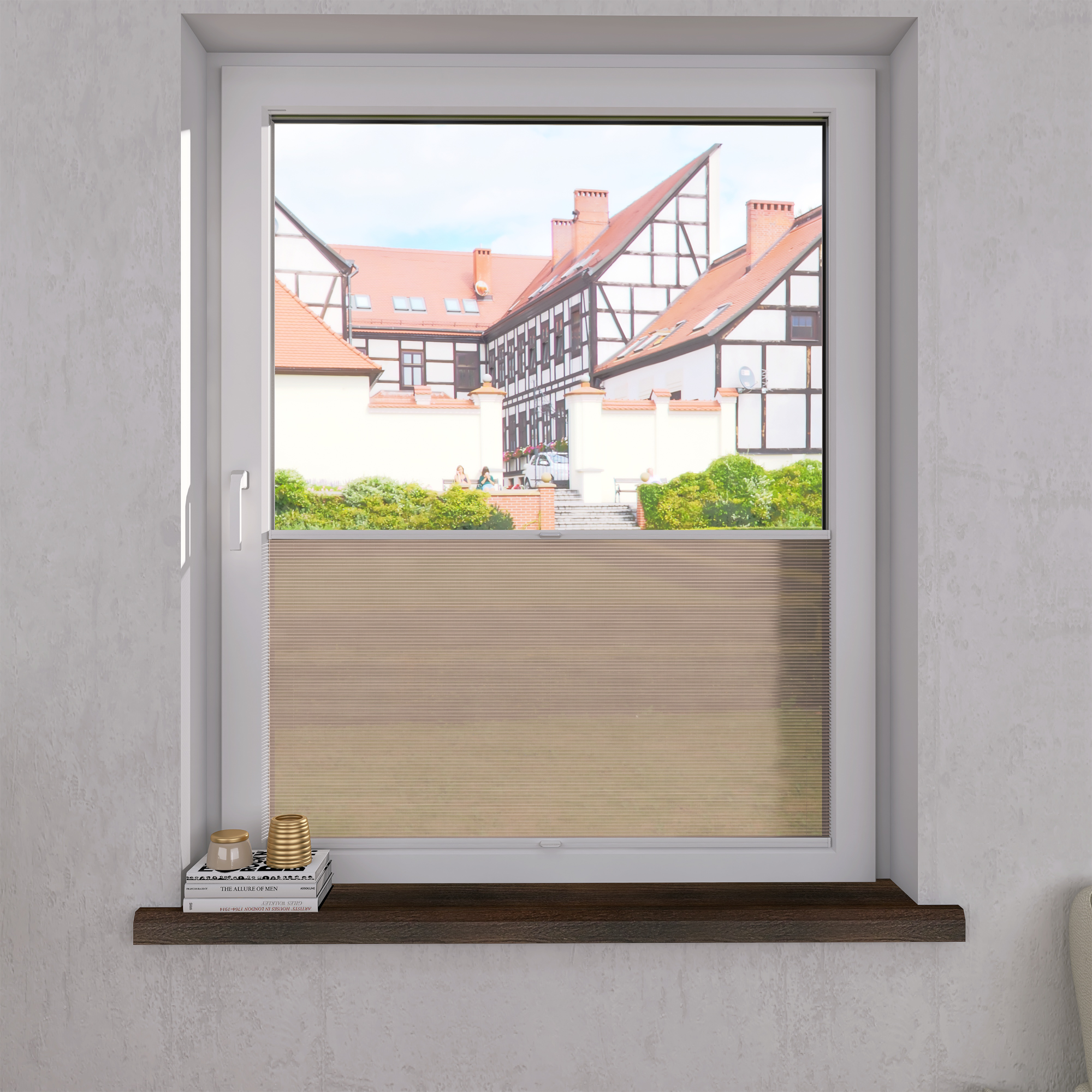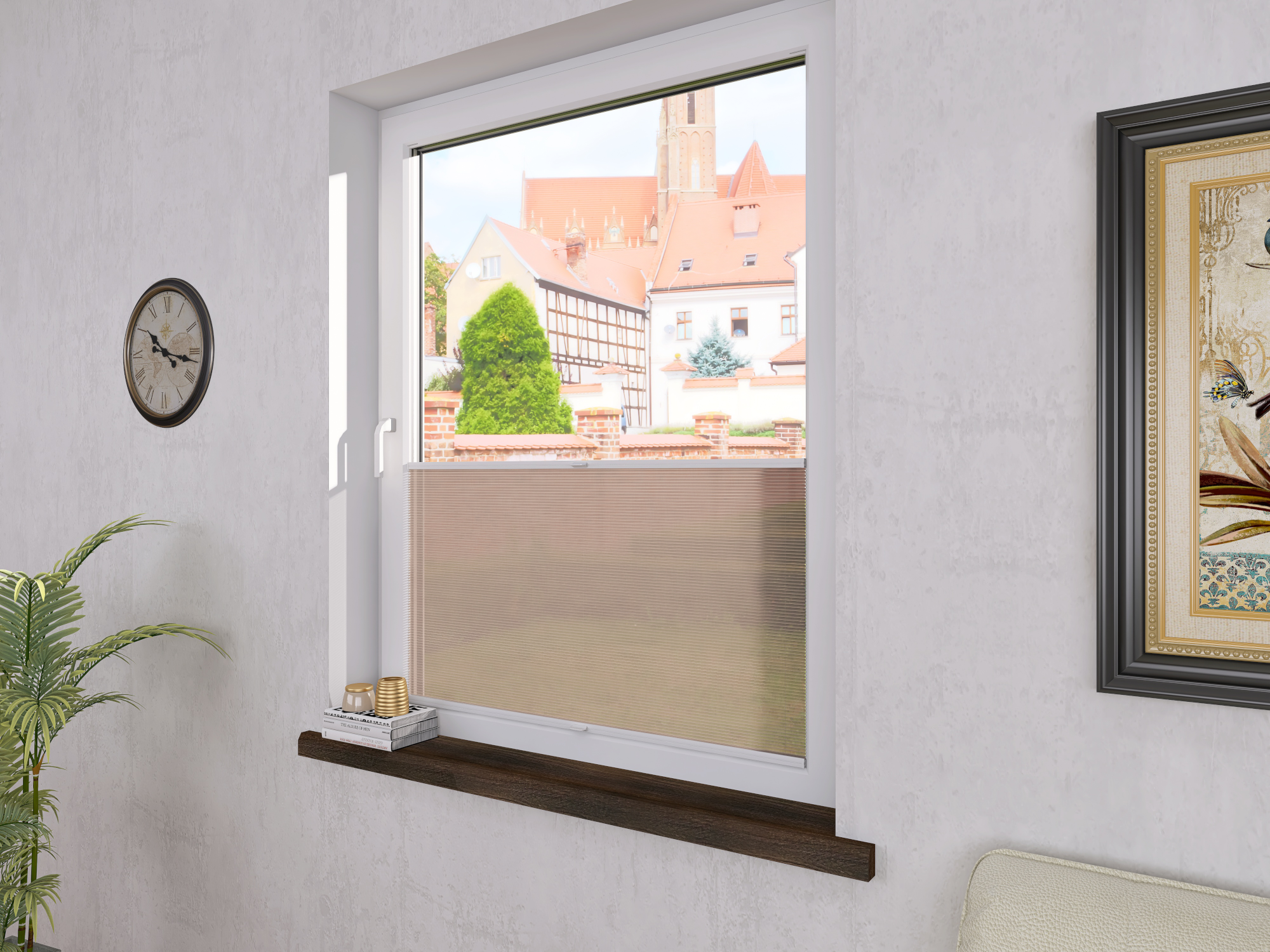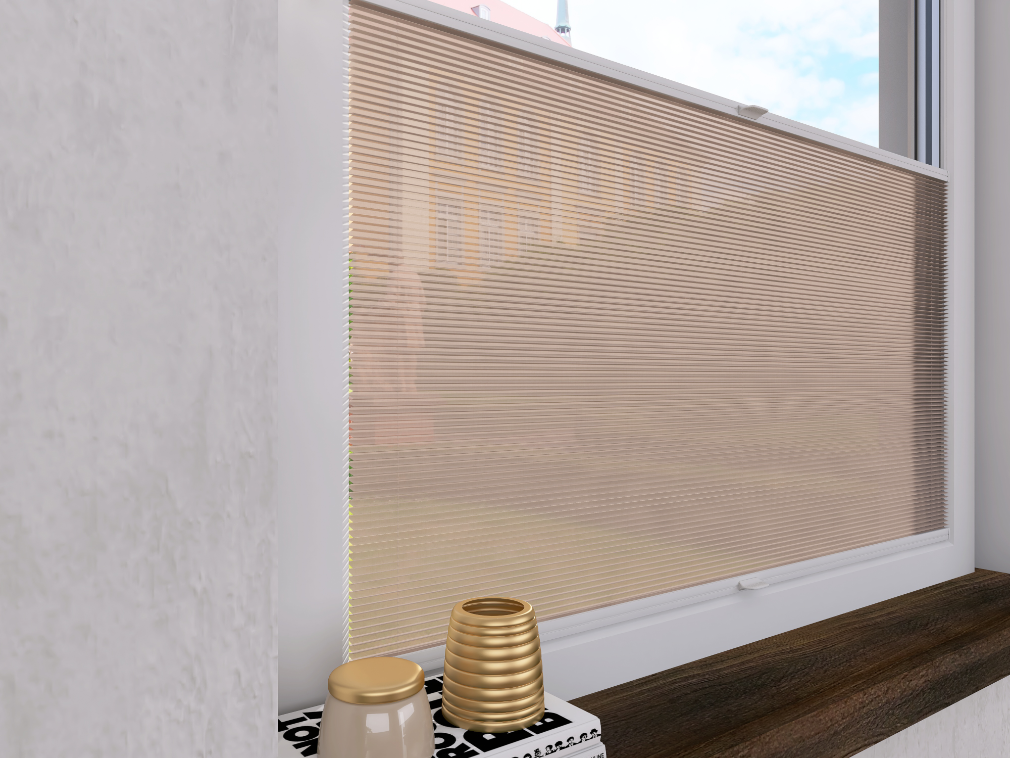 DIEGO – lekka tkanina poliestrowa (153 g/m²) o trwałych kolorach i przepuszczalności światła 28–48%. Plisowane lamelki (20 mm) nadają jej wyjątkowy wygląd, a delikatna grubość 0,4 mm sprawia, że jest subtelna i elegancka.