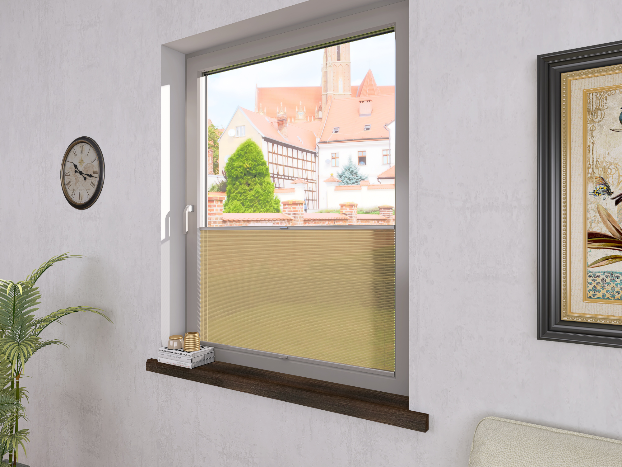 DIEGO – lekka tkanina poliestrowa (153 g/m²) o trwałych kolorach i przepuszczalności światła 28–48%. Plisowane lamelki (20 mm) nadają jej wyjątkowy wygląd, a delikatna grubość 0,4 mm sprawia, że jest subtelna i elegancka.