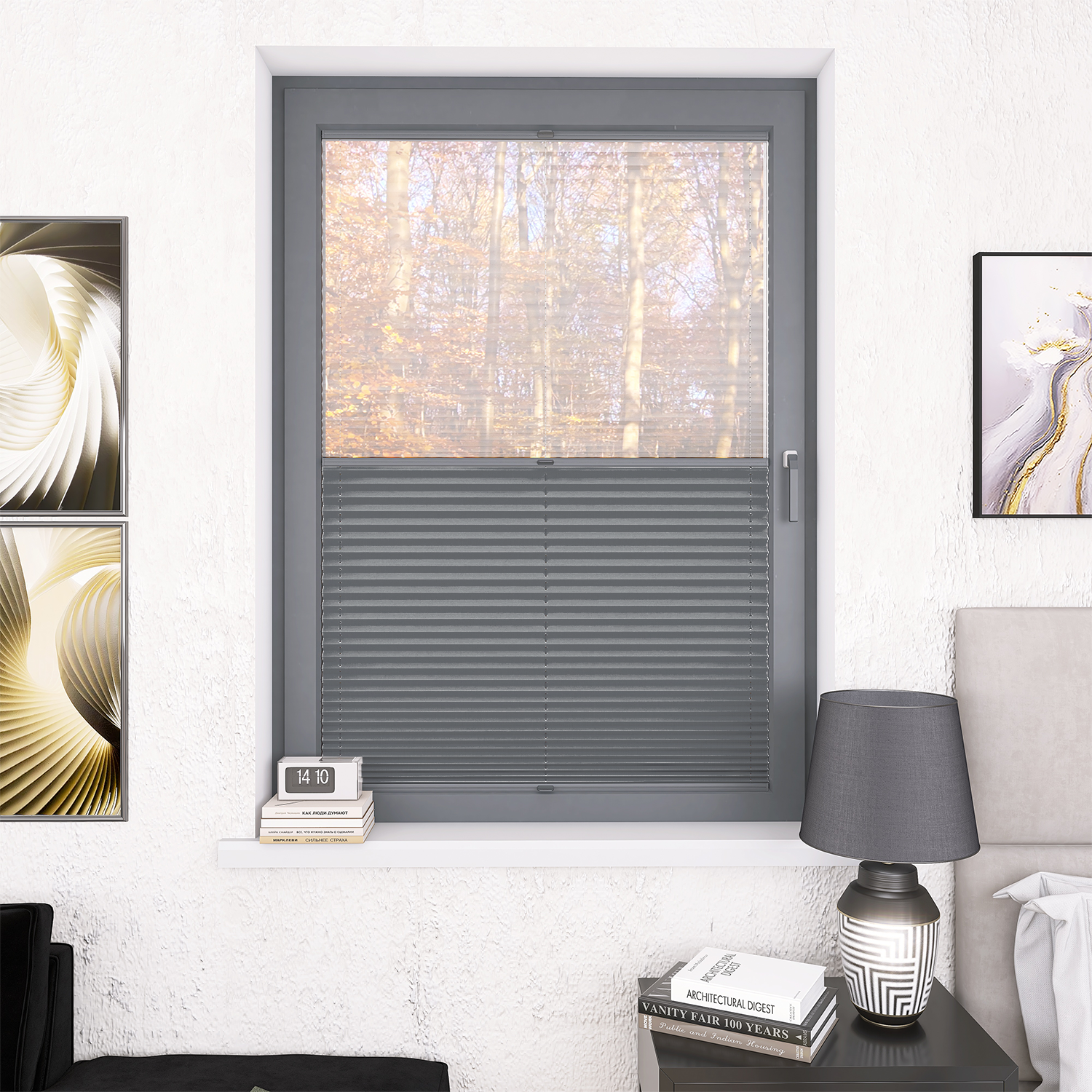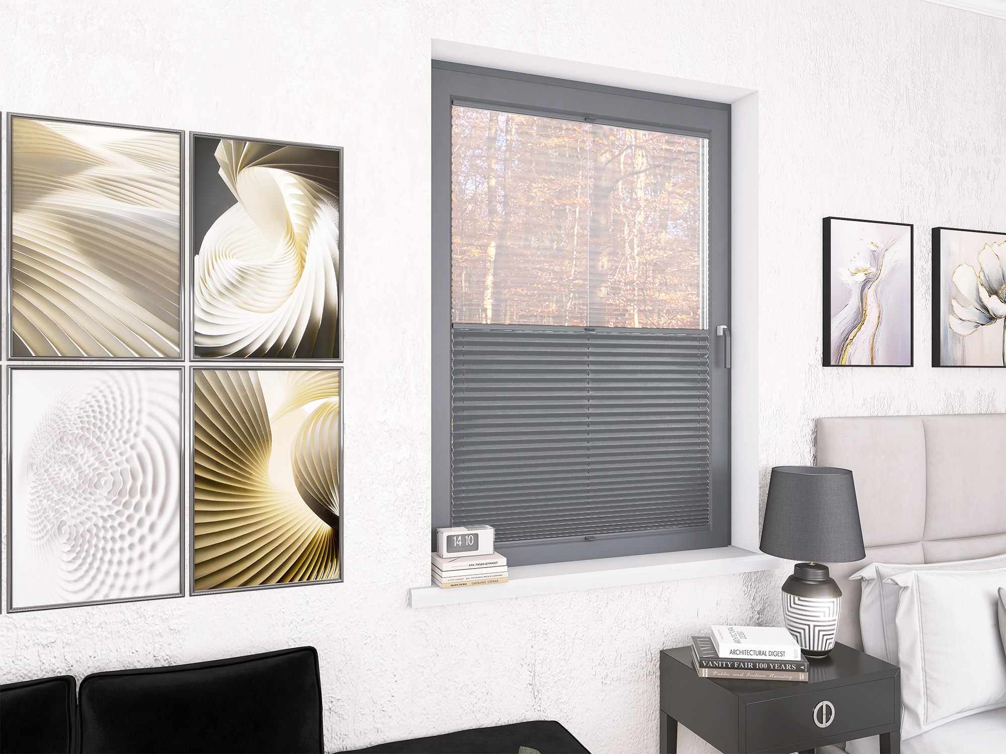 Roleta Plisowana 669 Stalowy Szary + Firana - Profil Vegas Antracyt