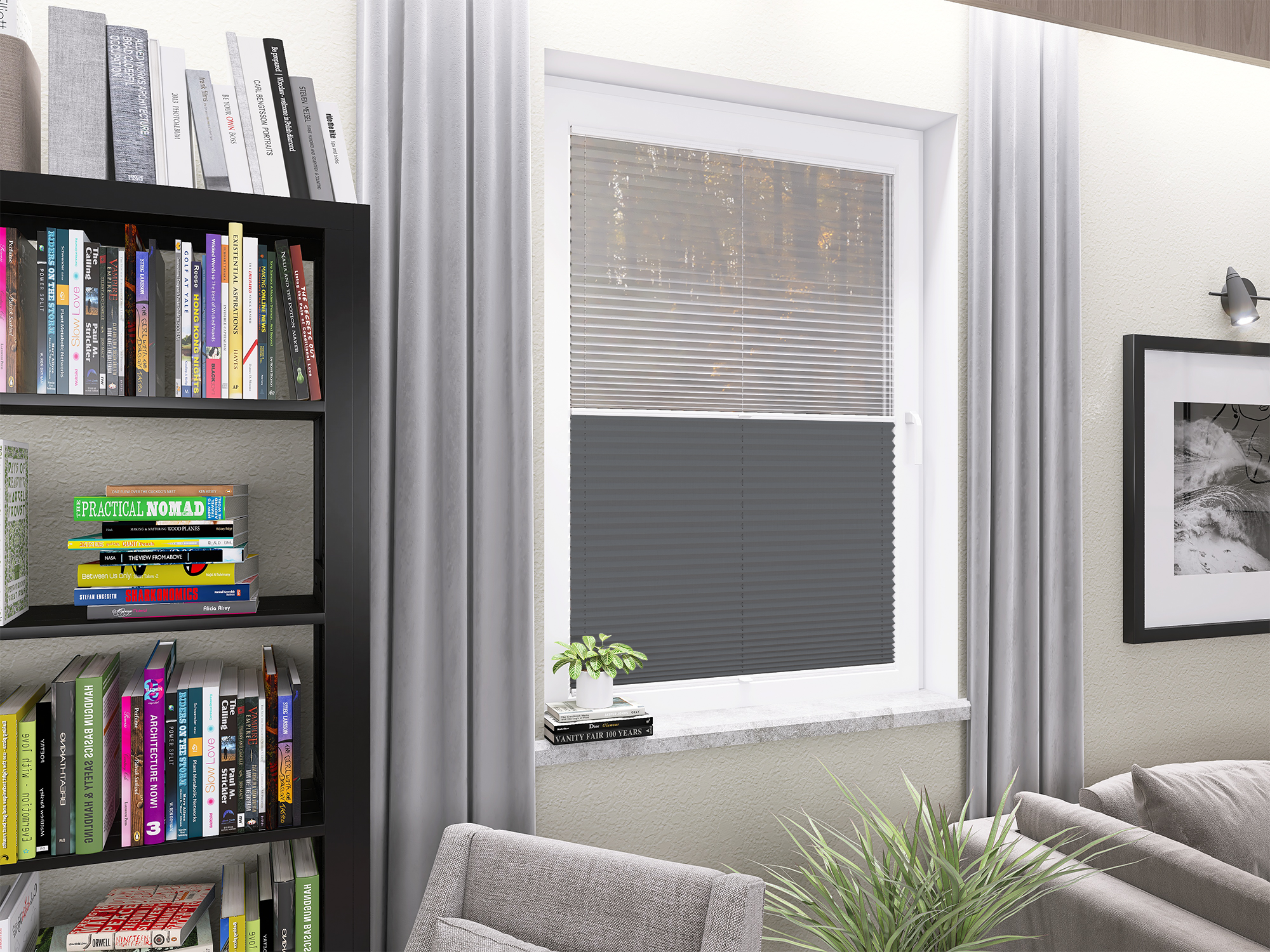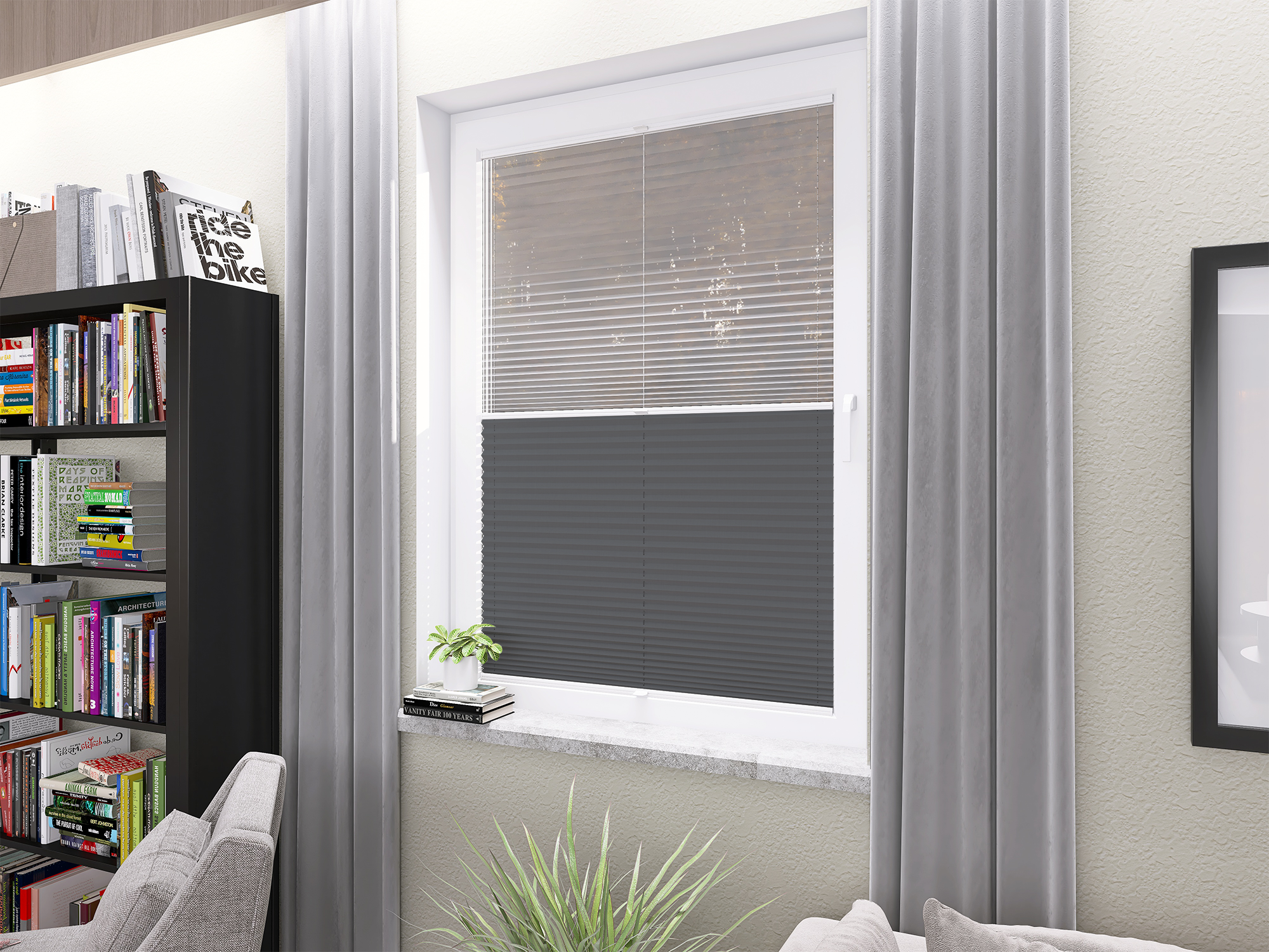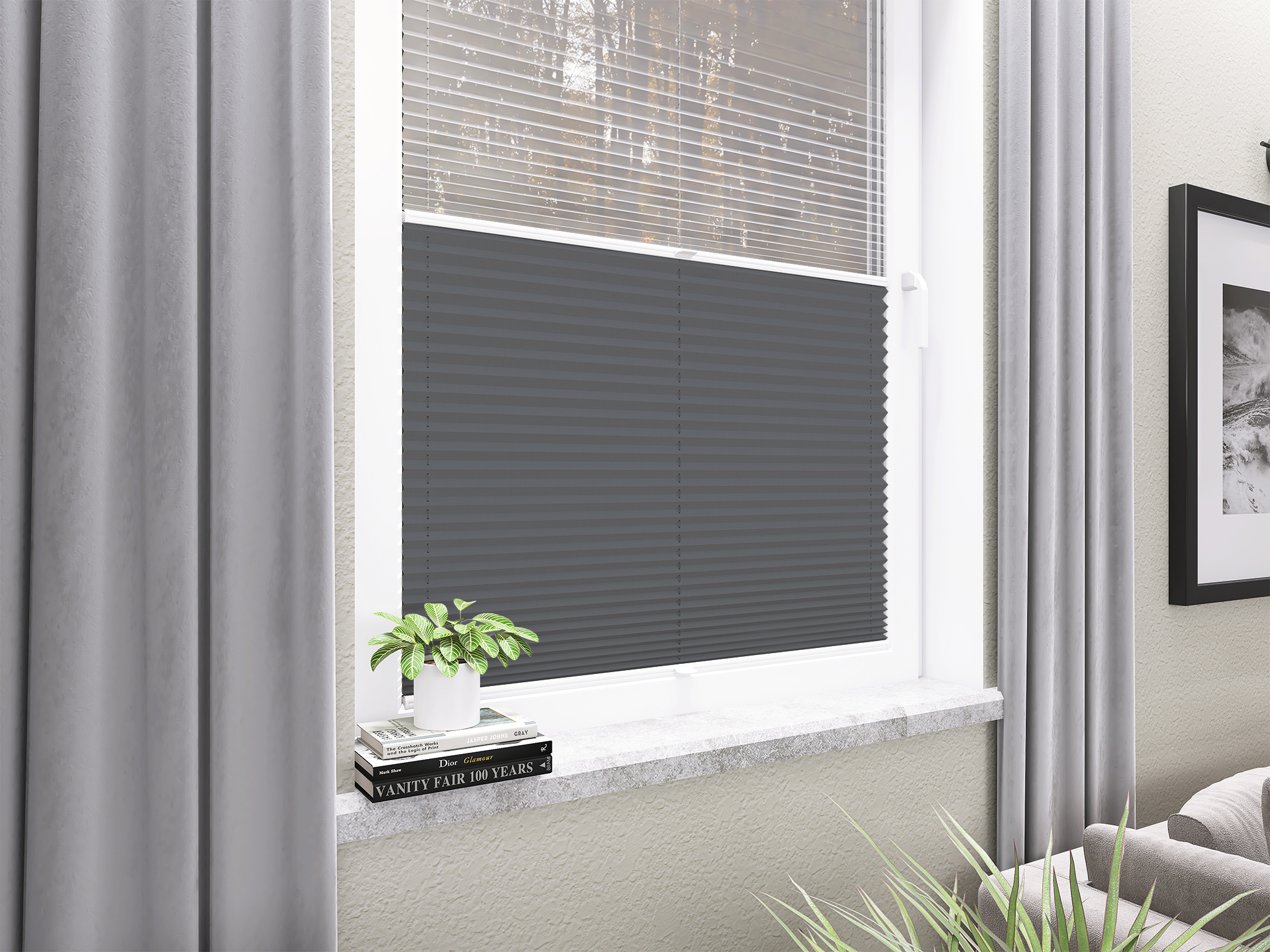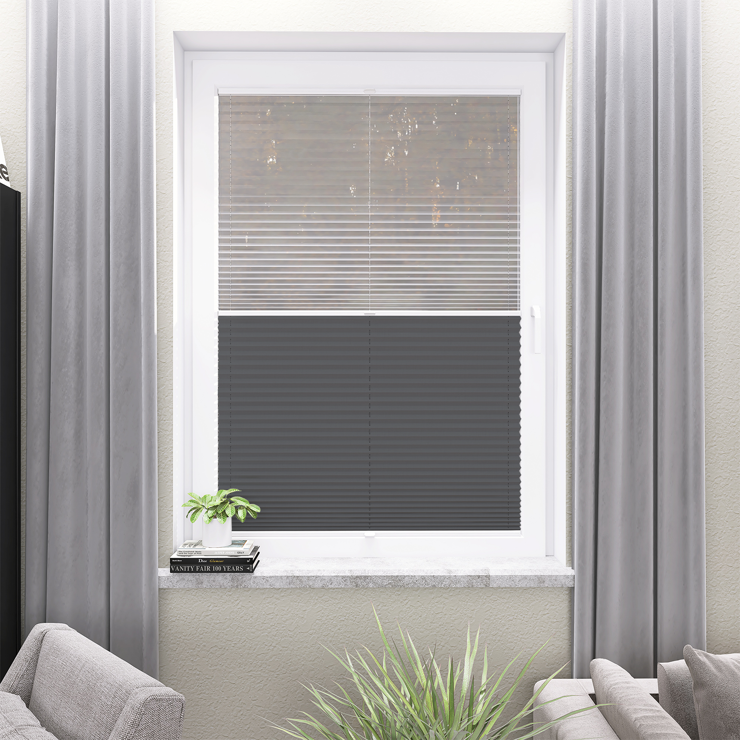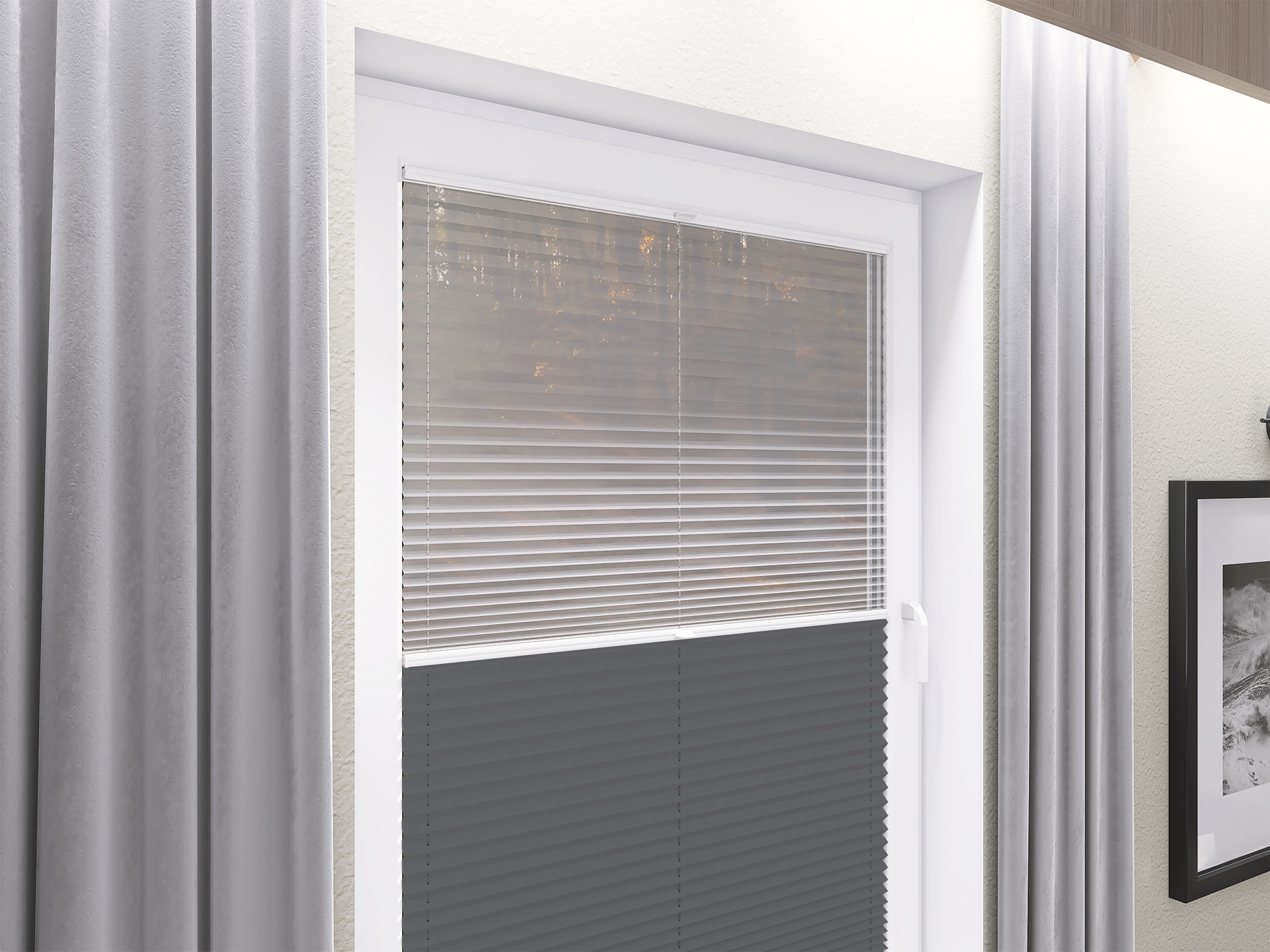 Roleta Plisowana 669 Stalowy Szary + Firana - Profil Vegas Biały