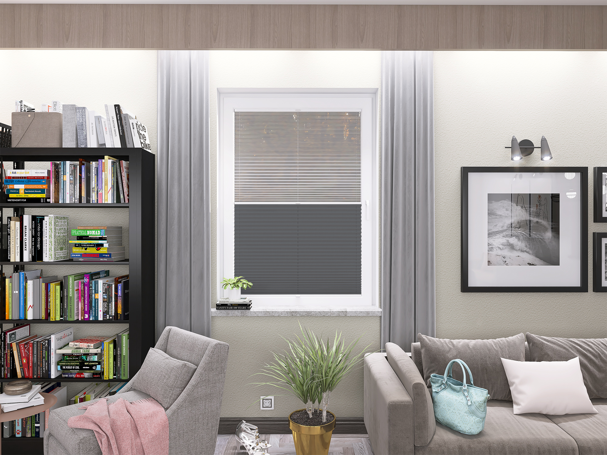 DIEGO – lekka tkanina poliestrowa (153 g/m²) o trwałych kolorach i przepuszczalności światła 28–48%. Plisowane lamelki (20 mm) nadają jej wyjątkowy wygląd, a delikatna grubość 0,4 mm sprawia, że jest subtelna i elegancka.