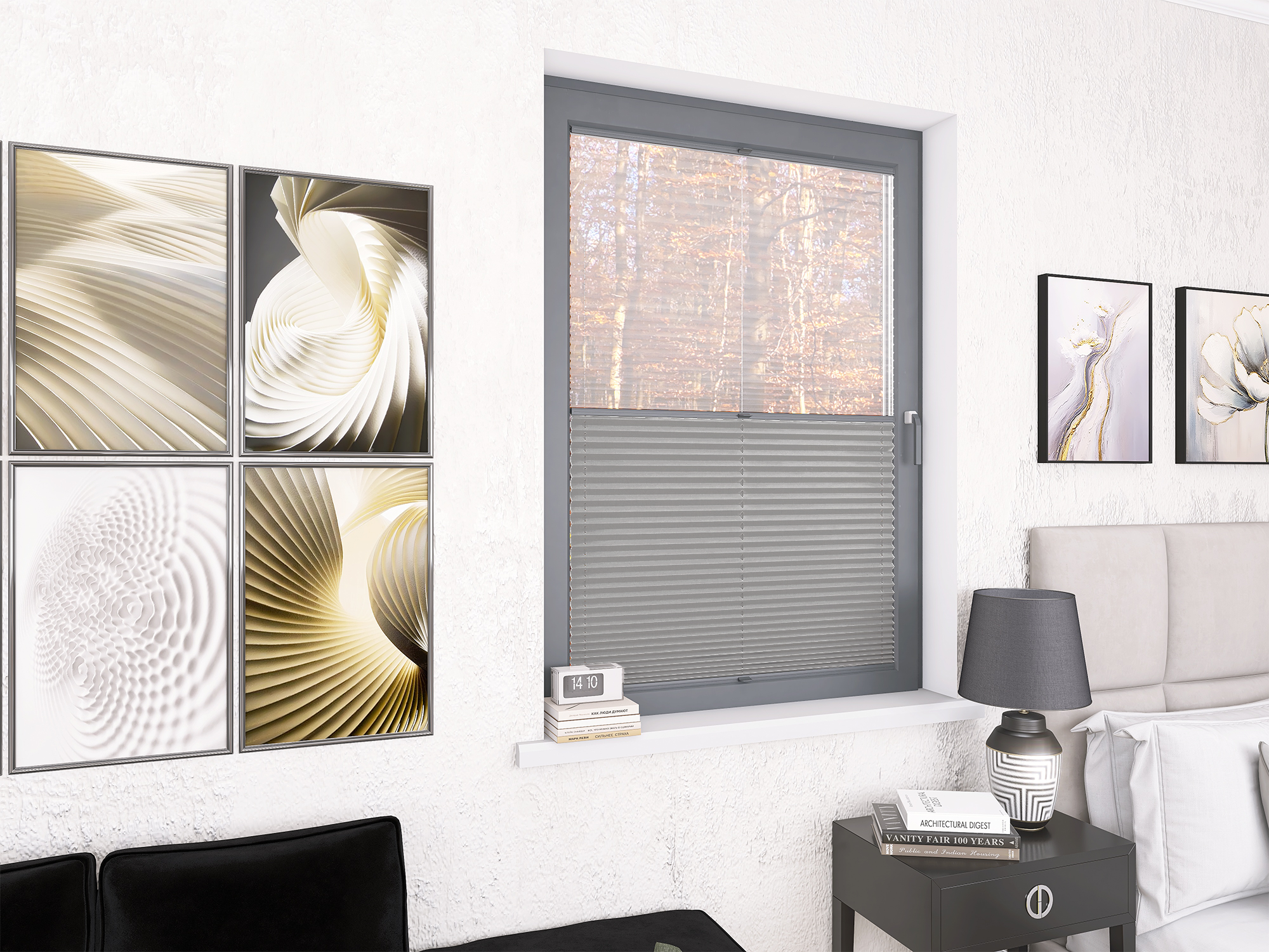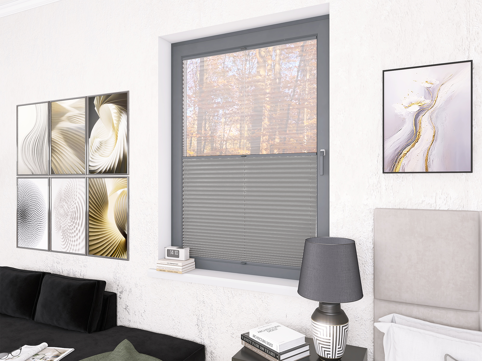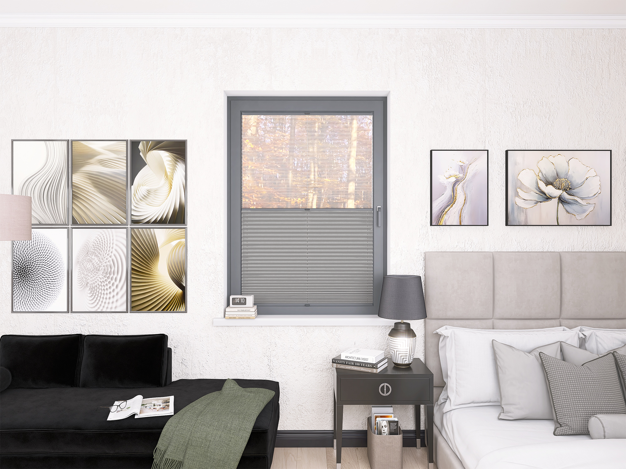 Roleta Plisowana 672 Srebrny Szary + Firana - Profil Vegas Antracyt
