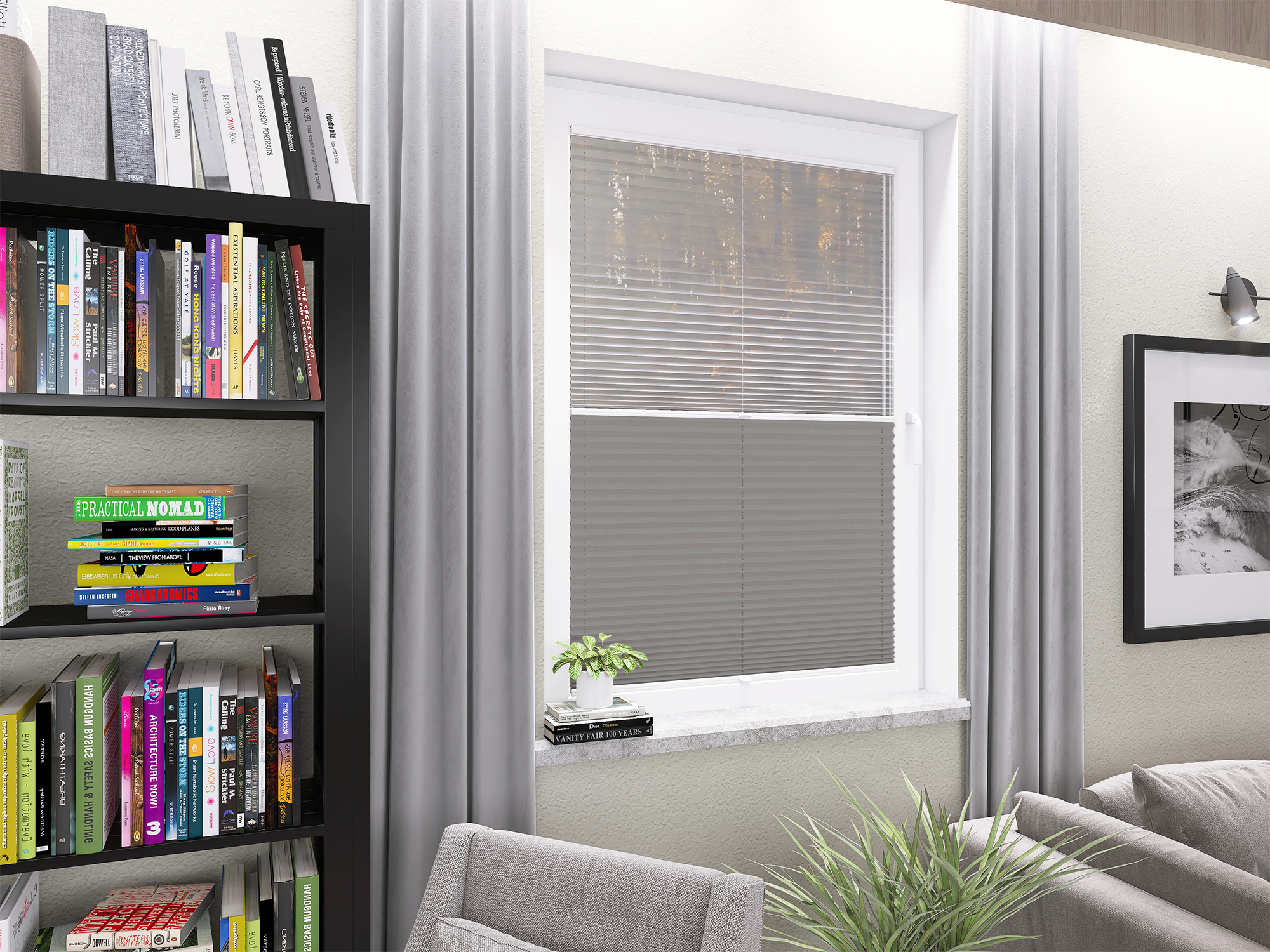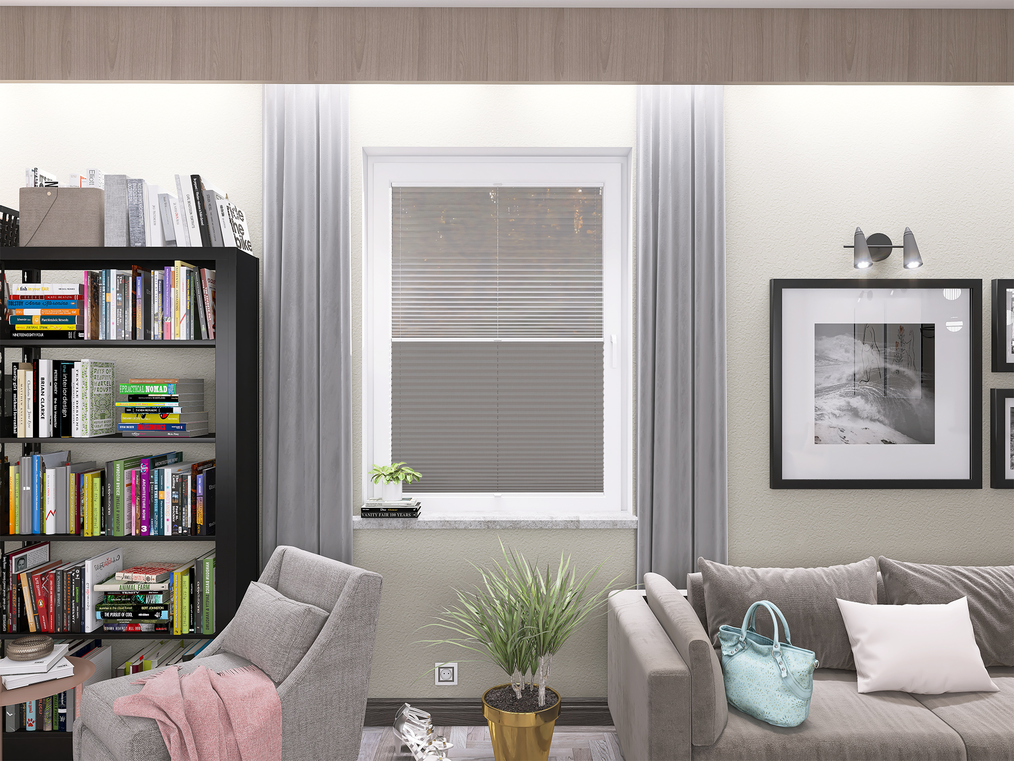 DIEGO – lekka tkanina poliestrowa (153 g/m²) o trwałych kolorach i przepuszczalności światła 28–48%. Plisowane lamelki (20 mm) nadają jej wyjątkowy wygląd, a delikatna grubość 0,4 mm sprawia, że jest subtelna i elegancka.
