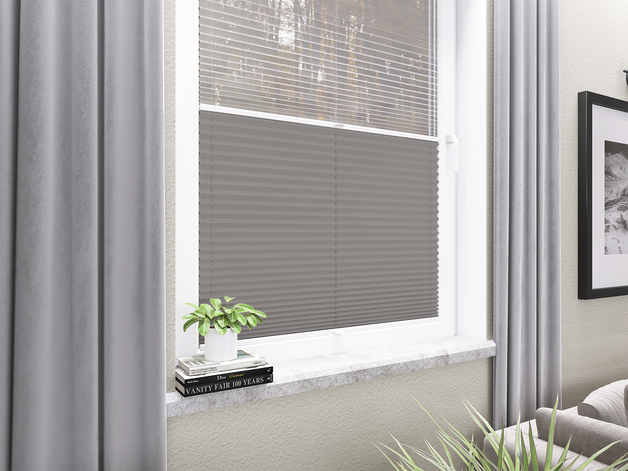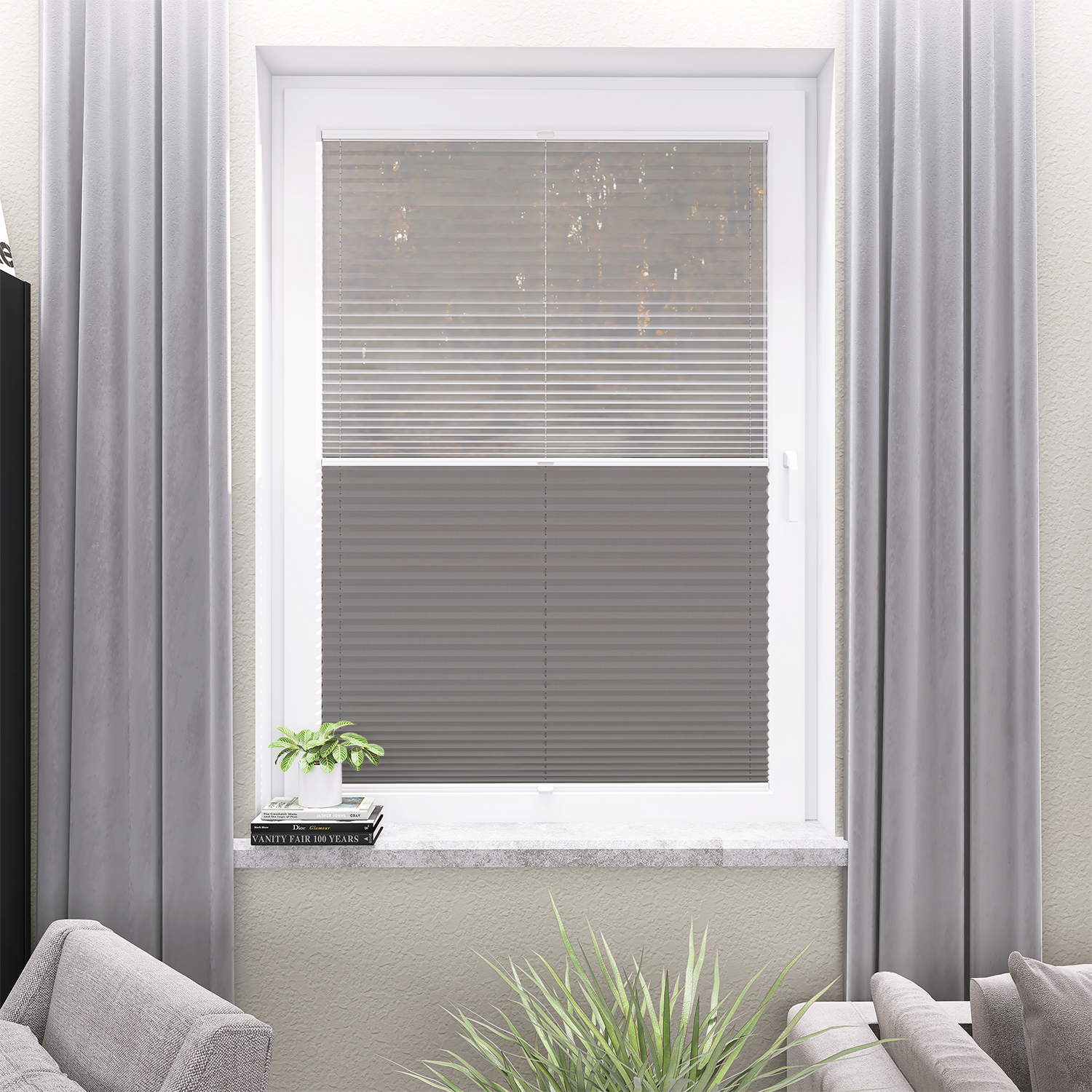 Roleta Plisowana 672 Srebrny Szary + Firana - Profil Vegas Biały