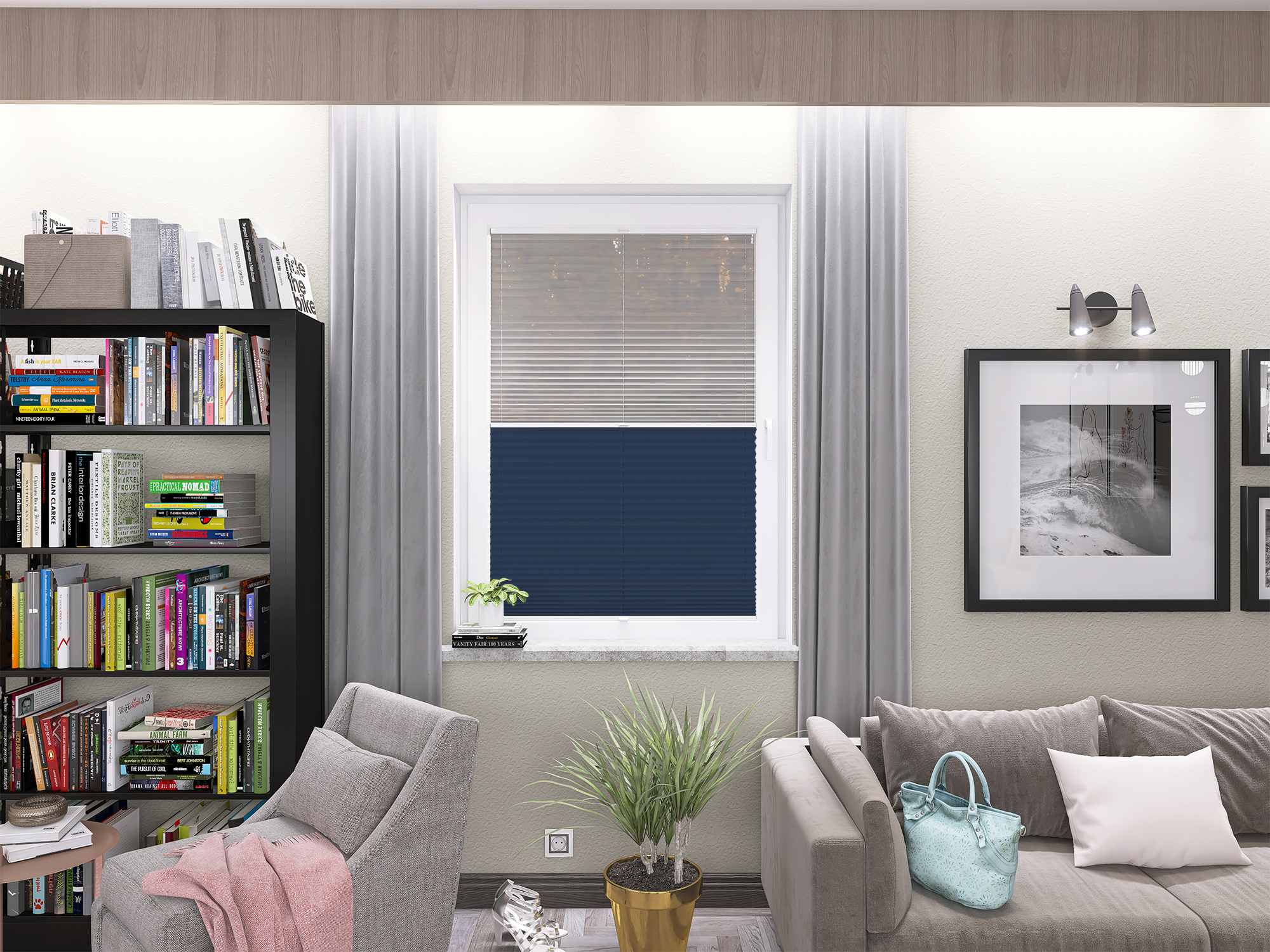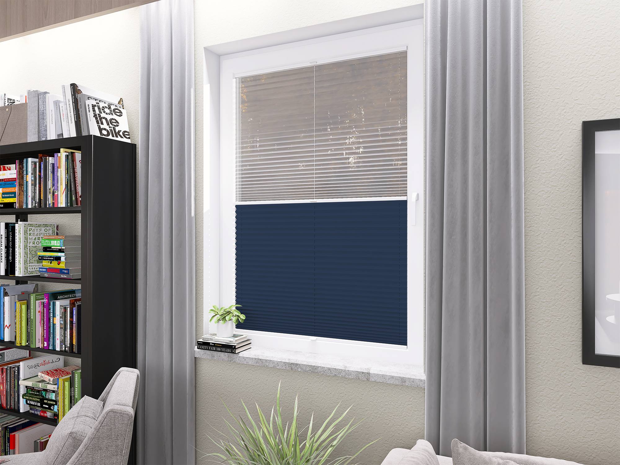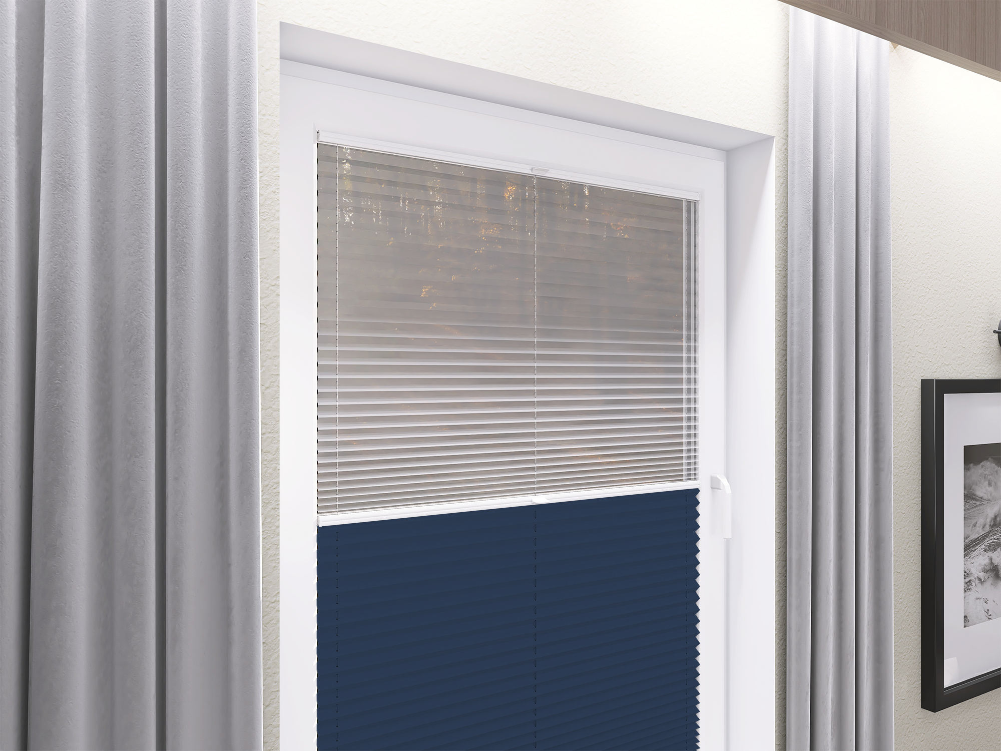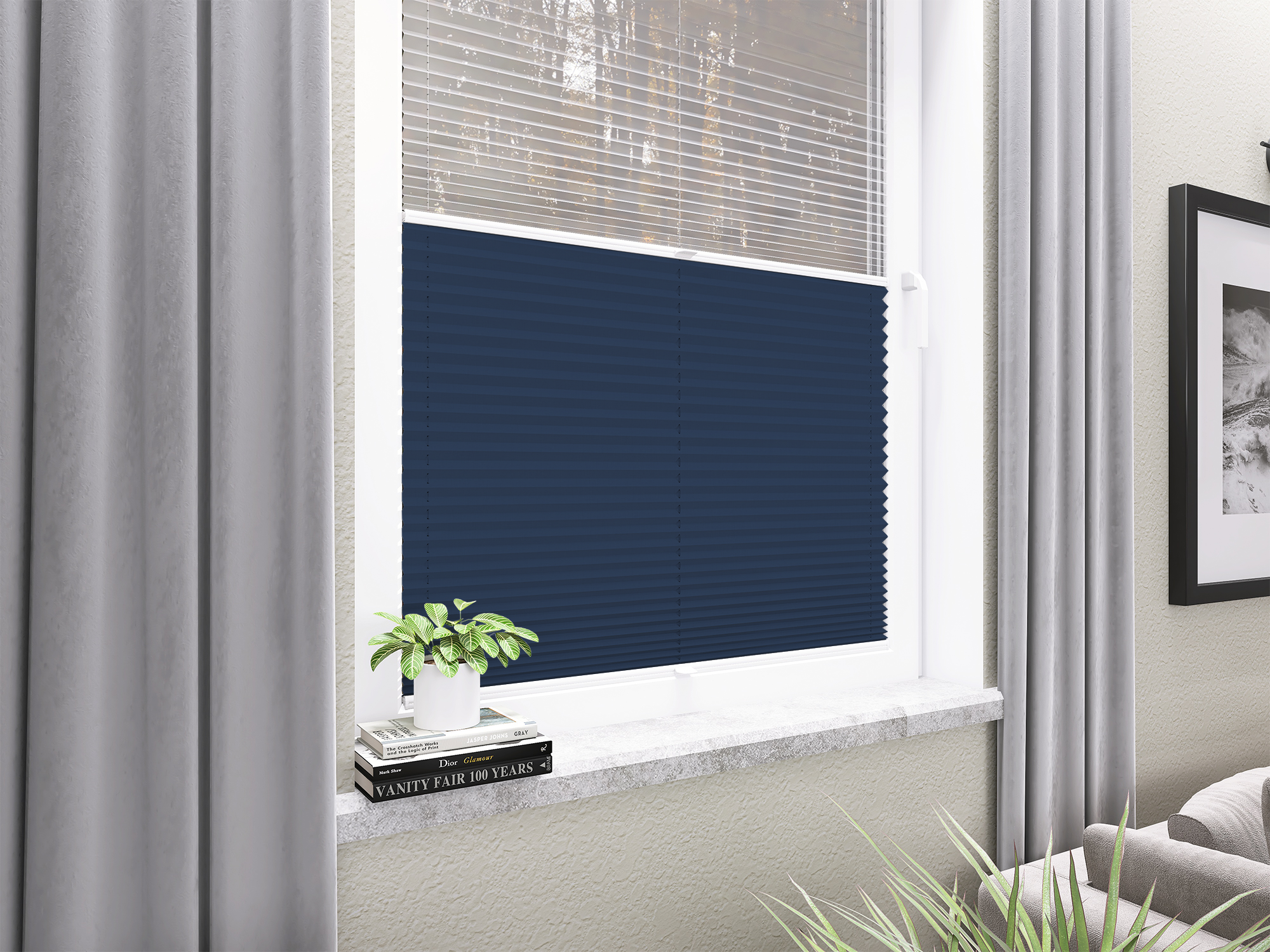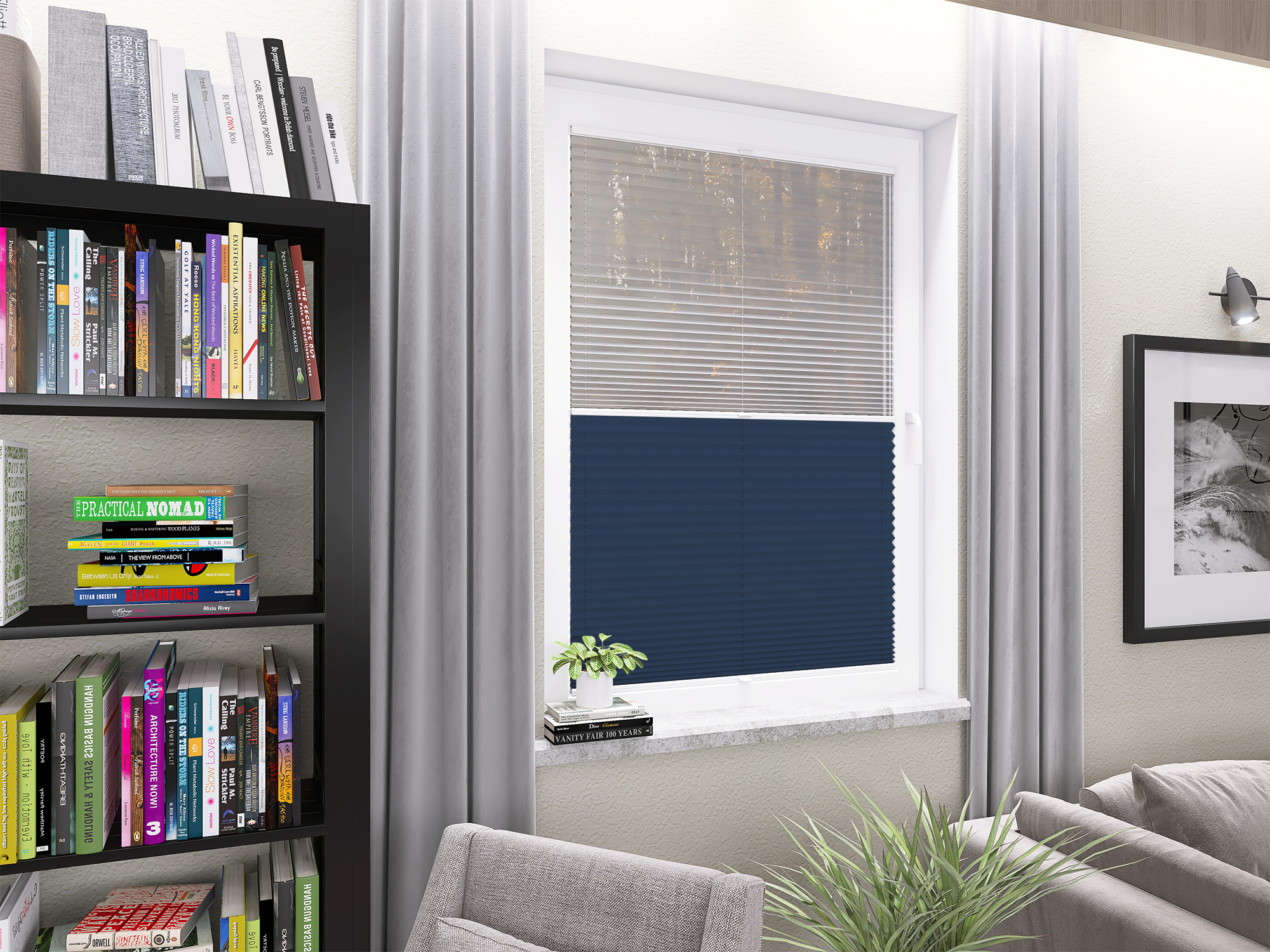 Roleta Plisowana 673 Niebieski Kobalt + Firana - Profil Vegas Biały