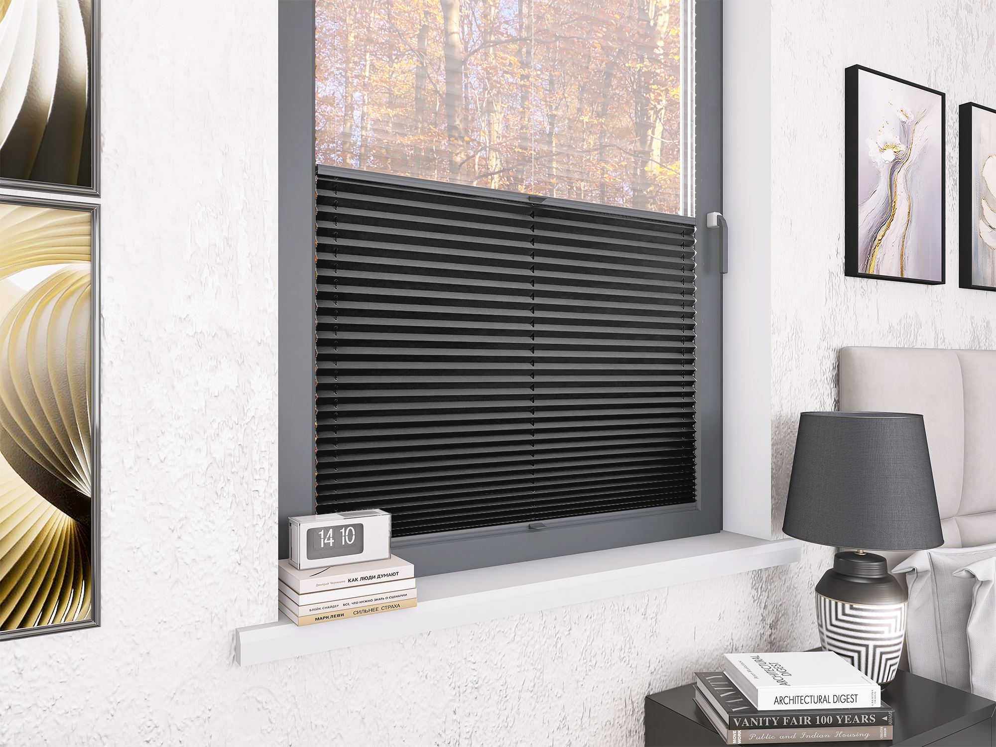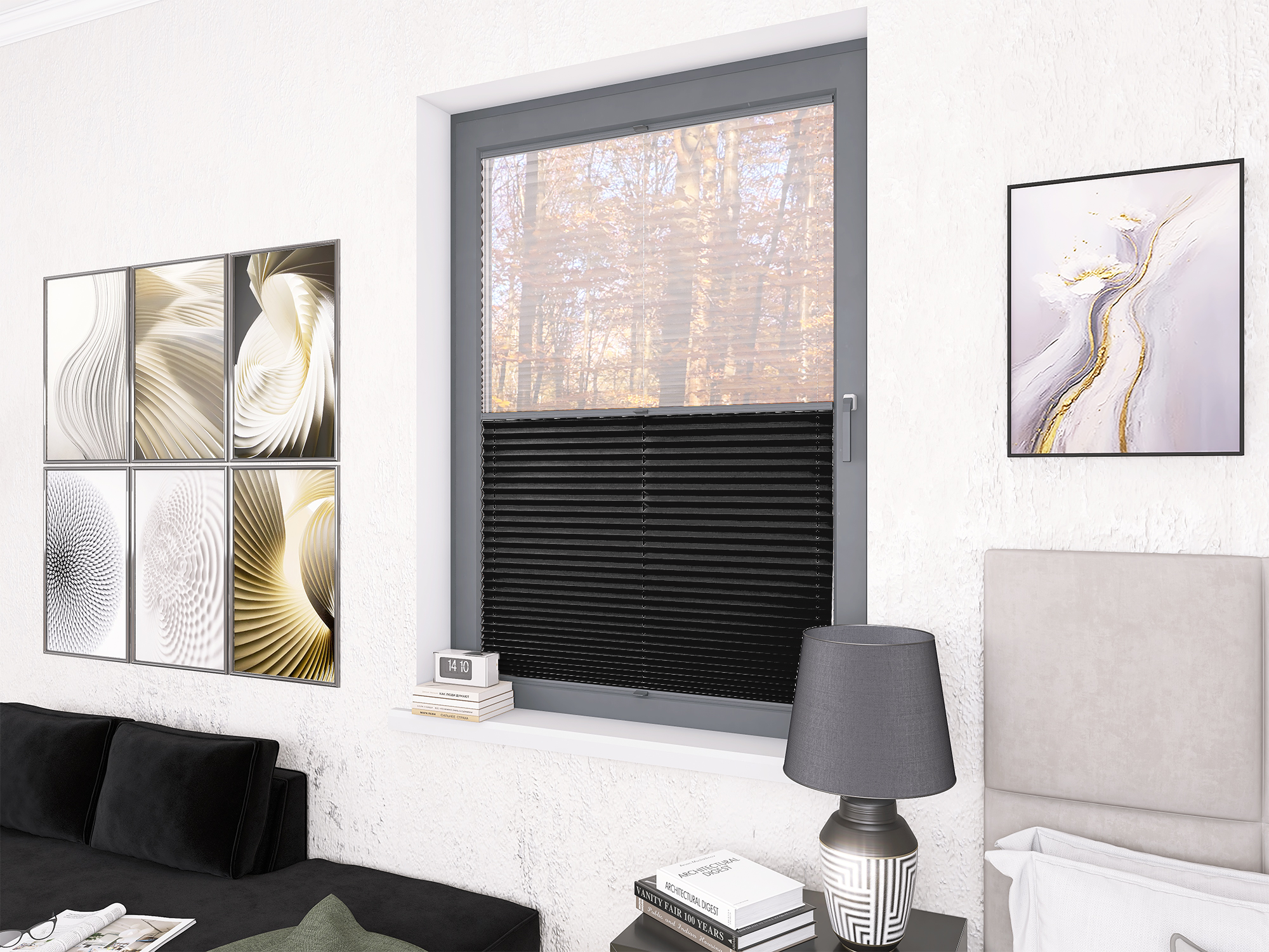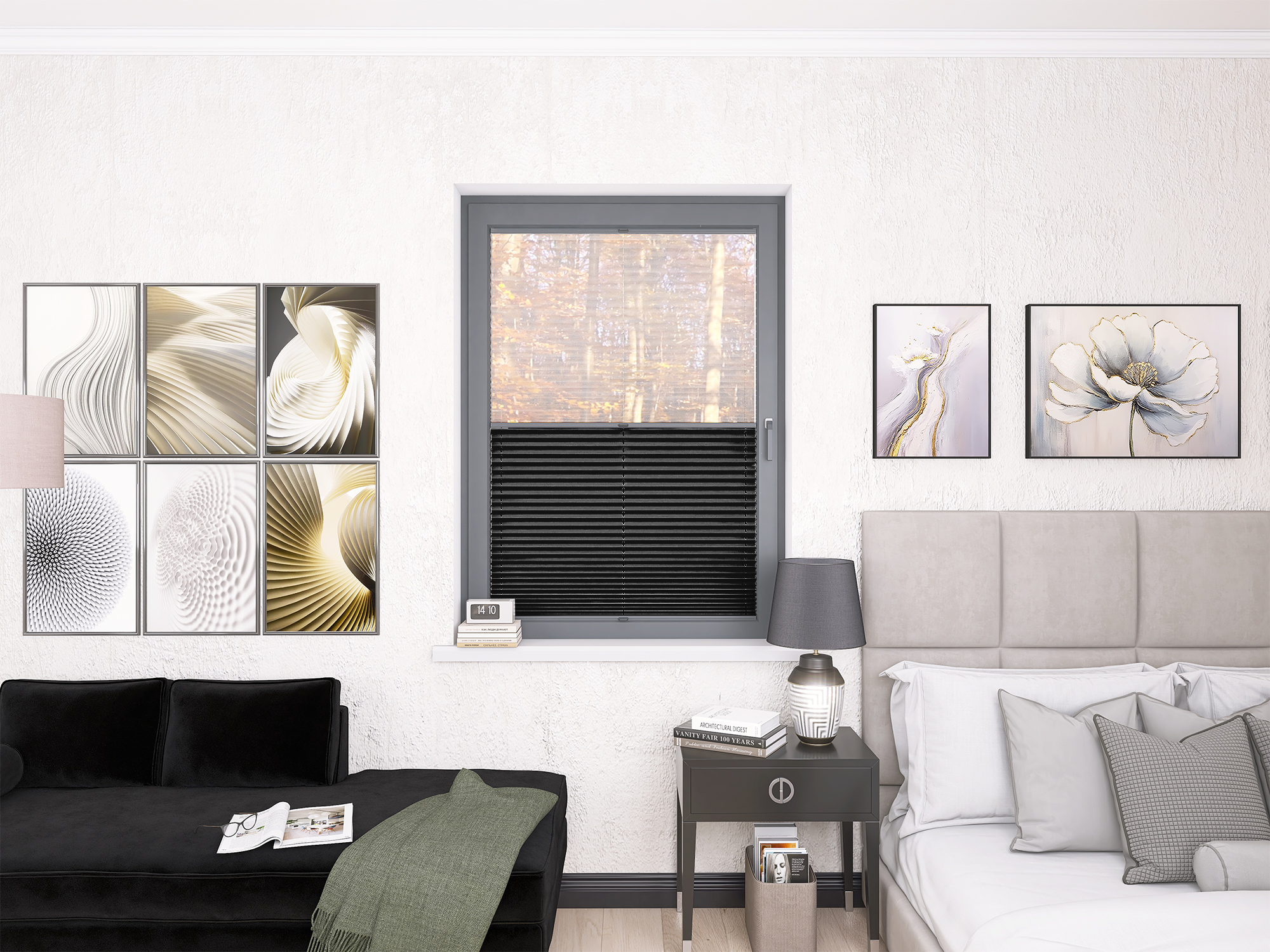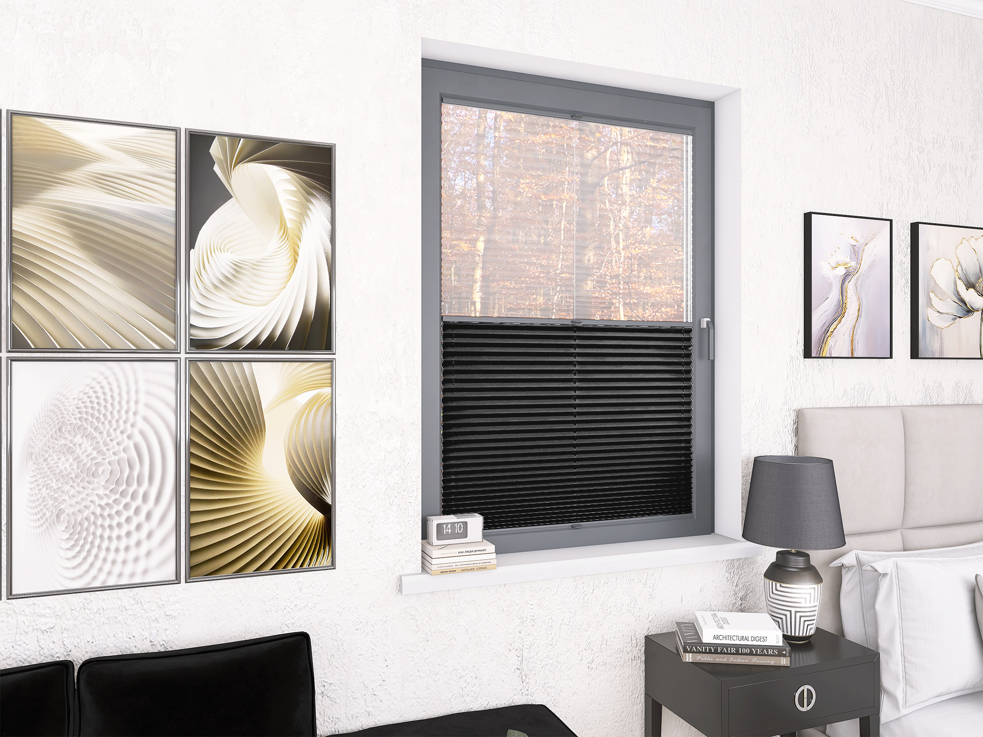 Roleta Plisowana 753 Głęboka Czerń + Firana - Profil Vegas Antracyt