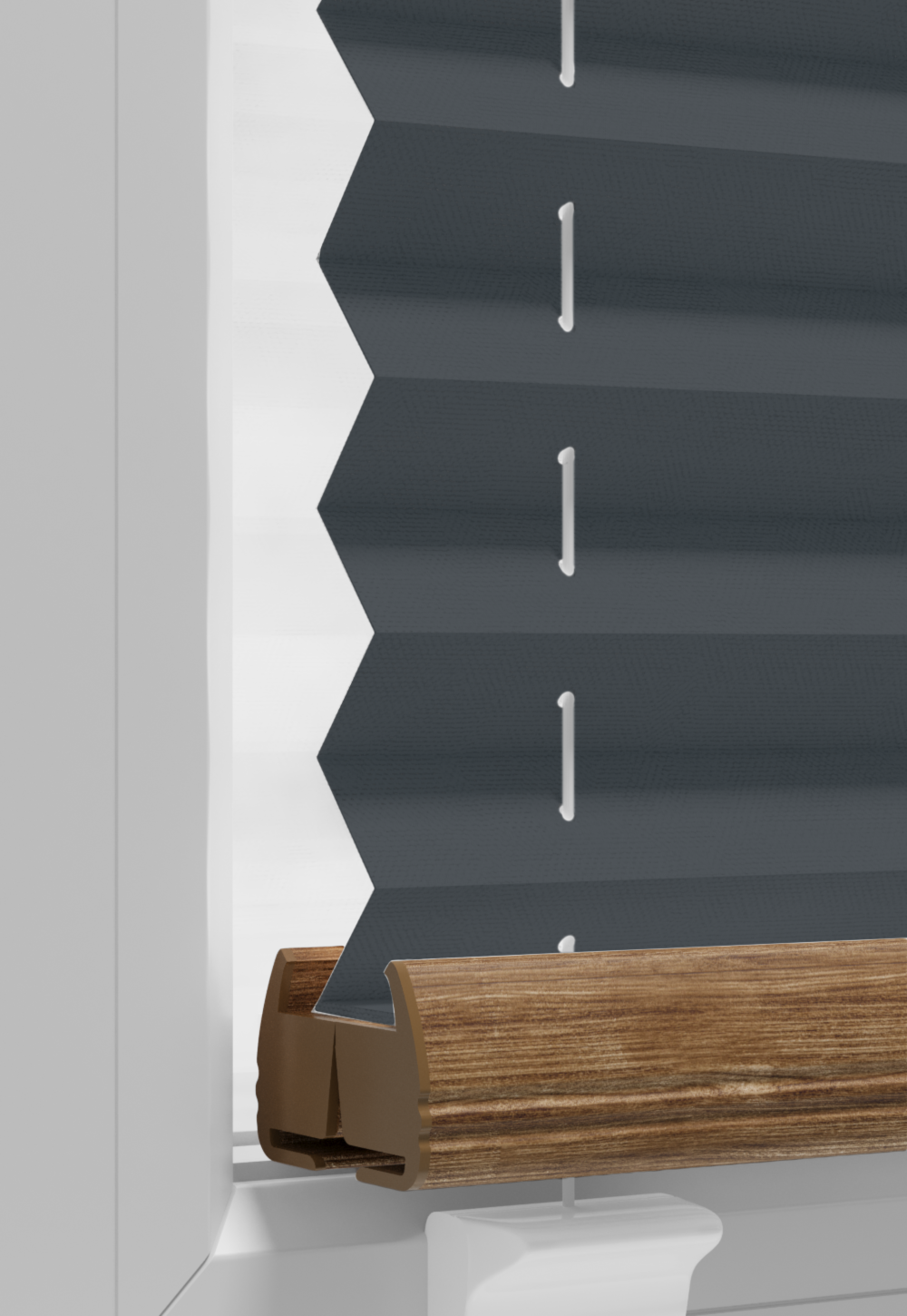 DIEGO – lekka tkanina poliestrowa (153 g/m²) o trwałych kolorach i przepuszczalności światła 28–48%. Plisowane lamelki (20 mm) nadają jej wyjątkowy wygląd, a delikatna grubość 0,4 mm sprawia, że jest subtelna i elegancka.