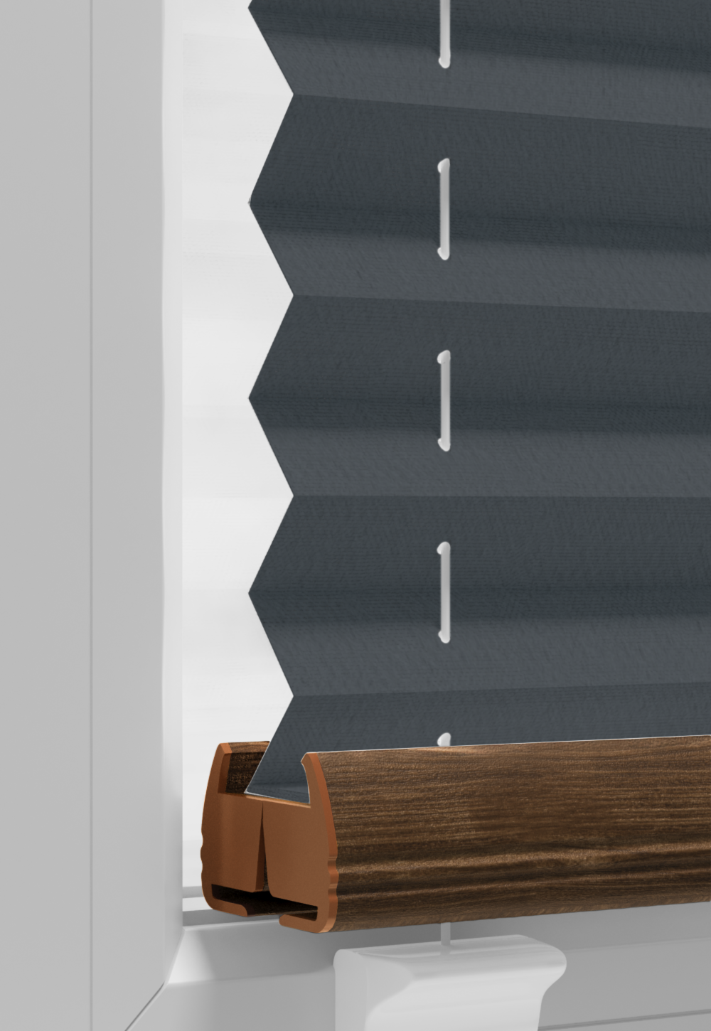 DIEGO – lekka tkanina poliestrowa (153 g/m²) o trwałych kolorach i przepuszczalności światła 28–48%. Plisowane lamelki (20 mm) nadają jej wyjątkowy wygląd, a delikatna grubość 0,4 mm sprawia, że jest subtelna i elegancka.