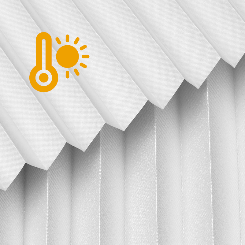 DIEGO PEARL – tkanina z powłoką odbijającą światło, gramatura 167 g/m². Transmisja światła od 0,30% do 15,62% w zależności od koloru. Eleganckie plisy (20 mm) i delikatna struktura (0,4 mm) gwarantują stylowy wygląd i wysoki komfort.