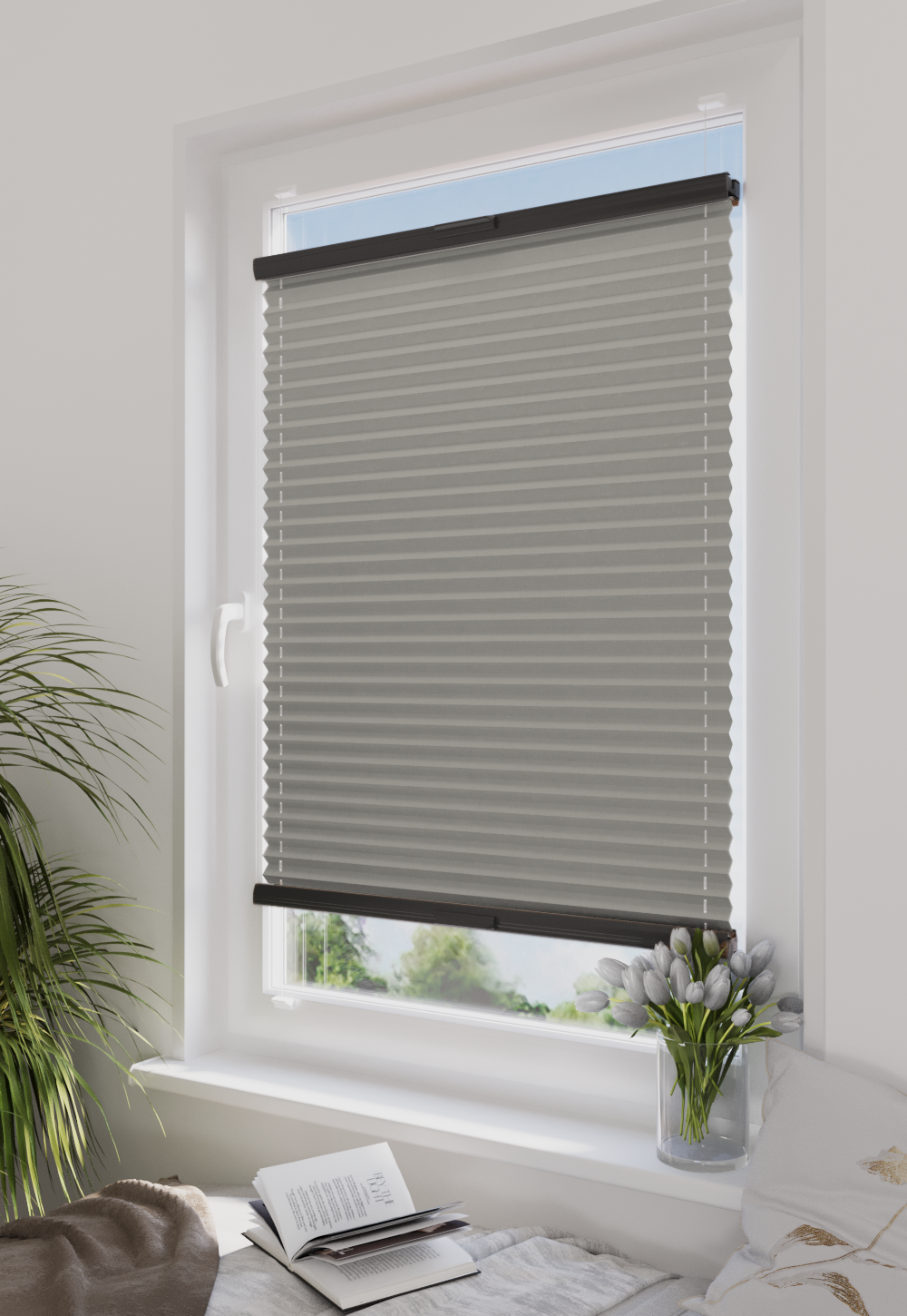 DIEGO – lekka tkanina poliestrowa (153 g/m²) o trwałych kolorach i przepuszczalności światła 28–48%. Plisowane lamelki (20 mm) nadają jej wyjątkowy wygląd, a delikatna grubość 0,4 mm sprawia, że jest subtelna i elegancka.