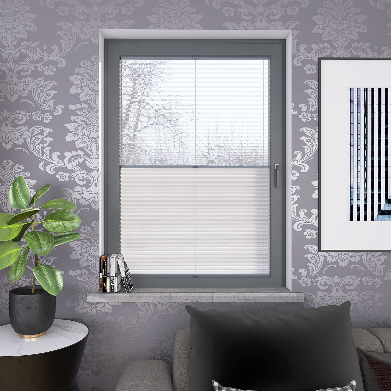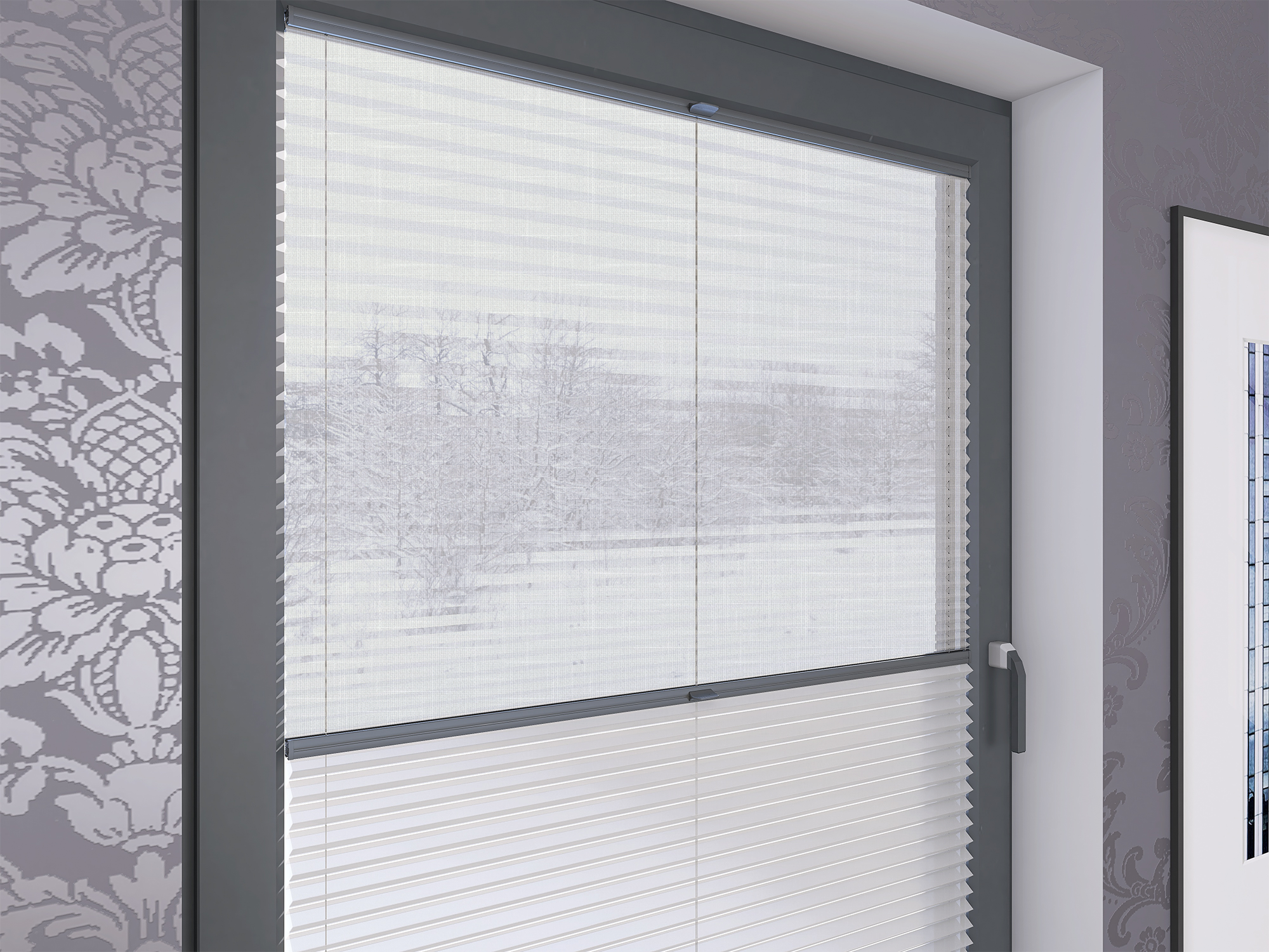 Roleta Plisowana Plaster Miodu AD 1 Biały + Firana - Profil Vegas Antracyt