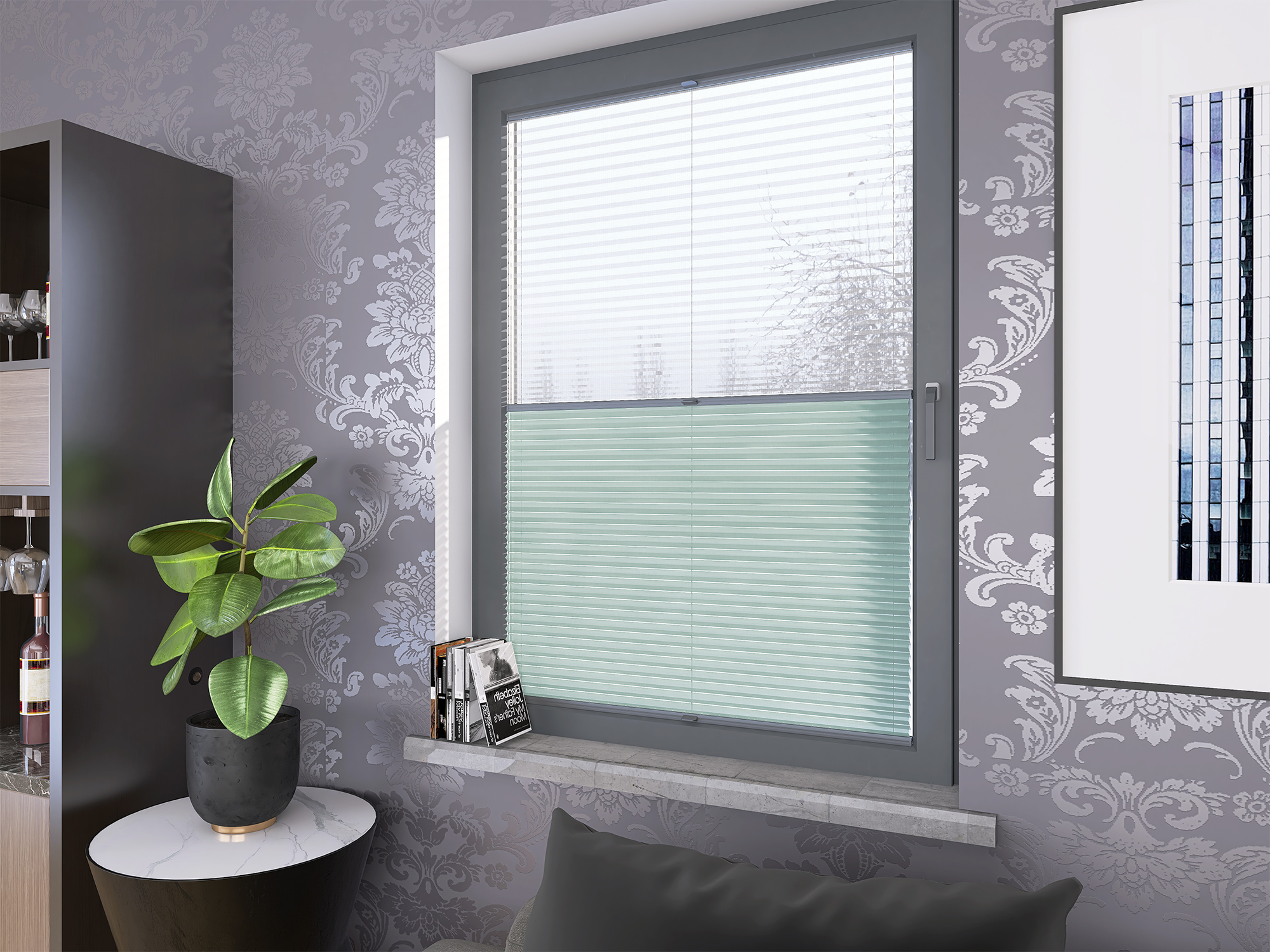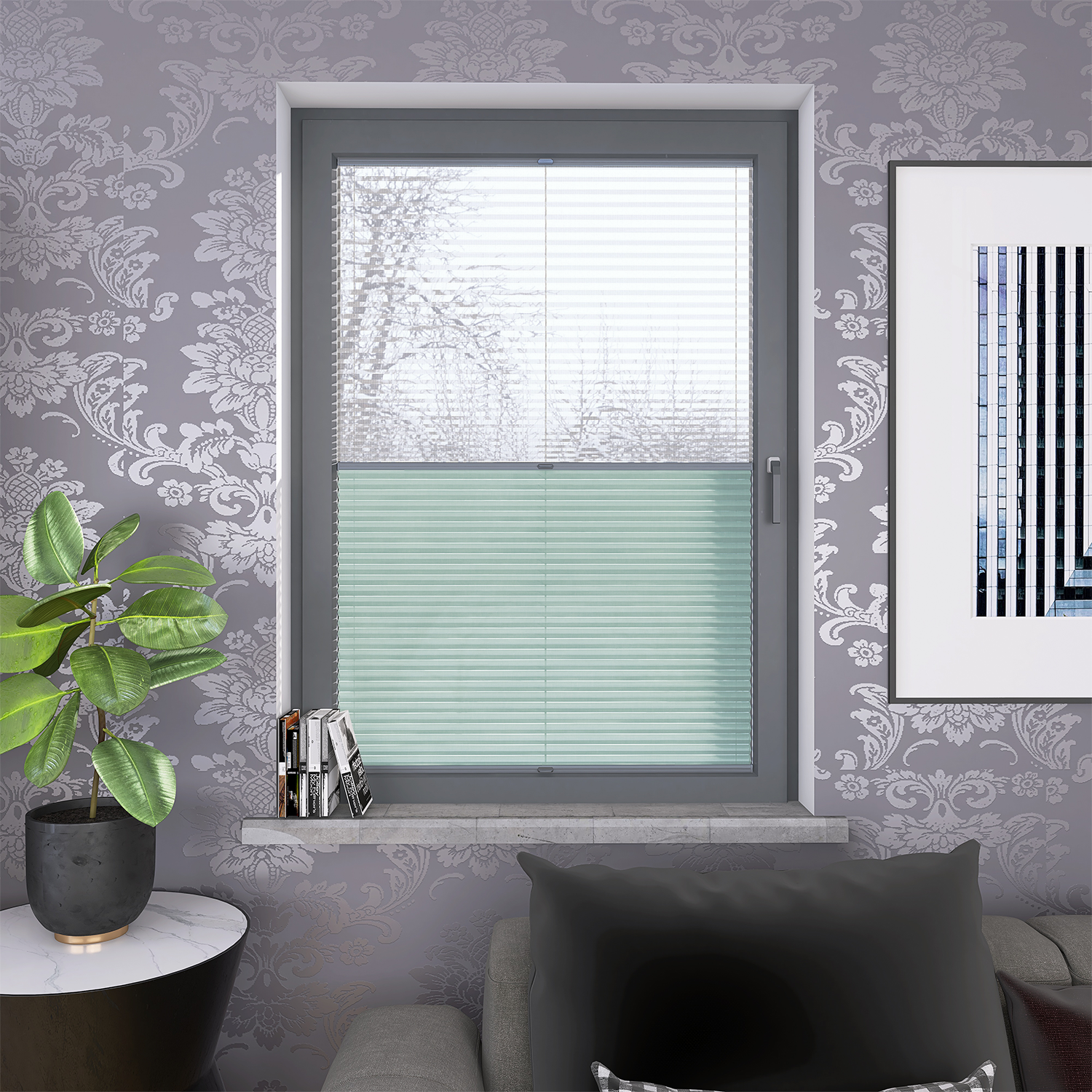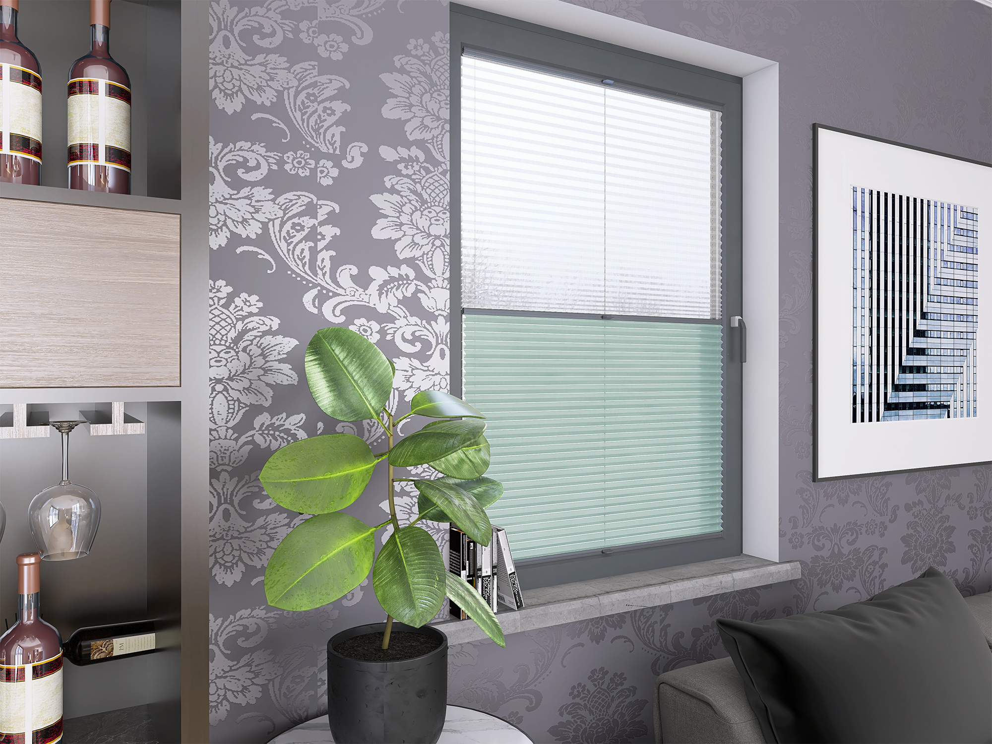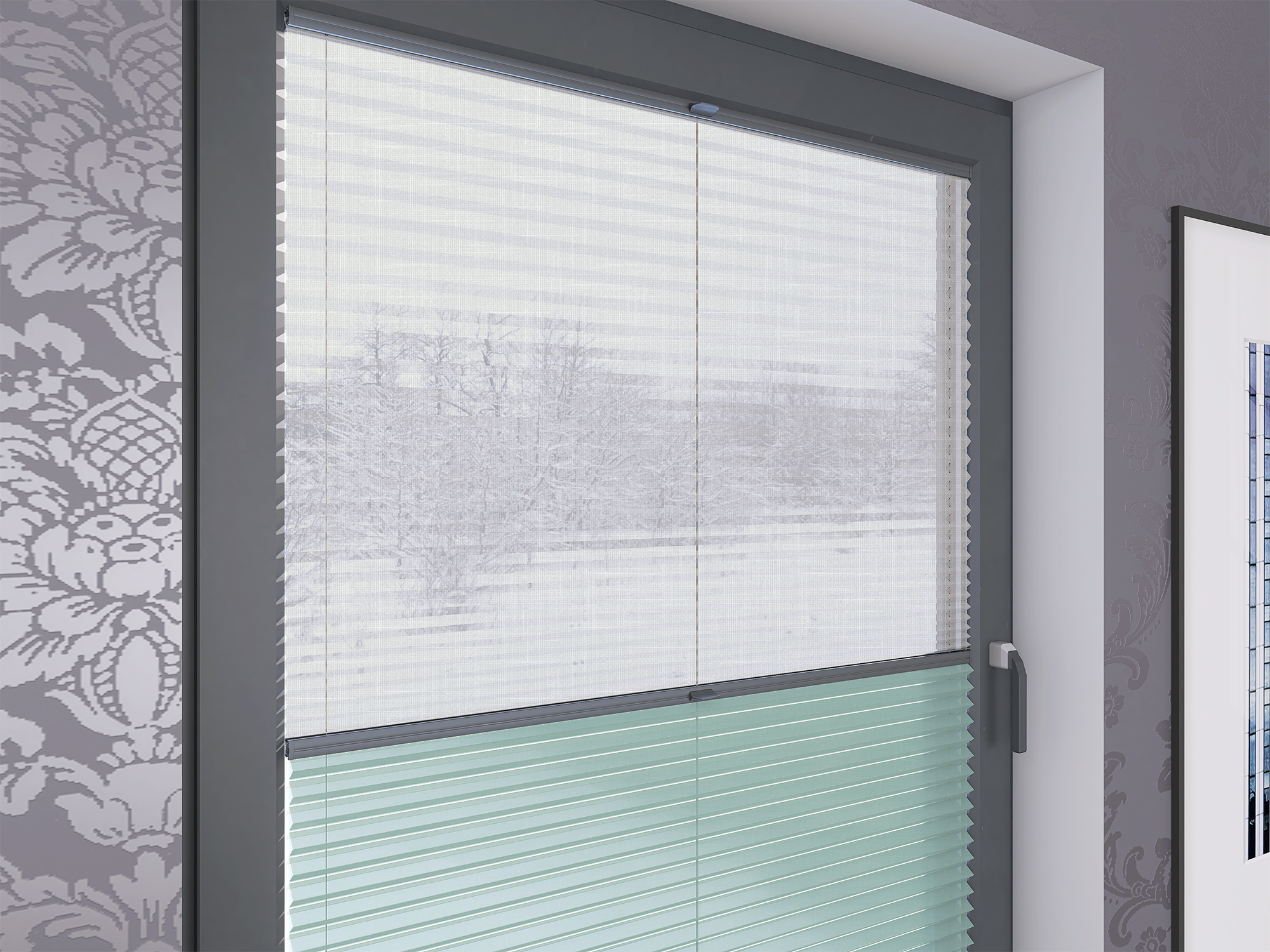 Roleta Plisowana Plaster Miodu AD 12 Miętowy + Firana - Profil Vegas Antracyt