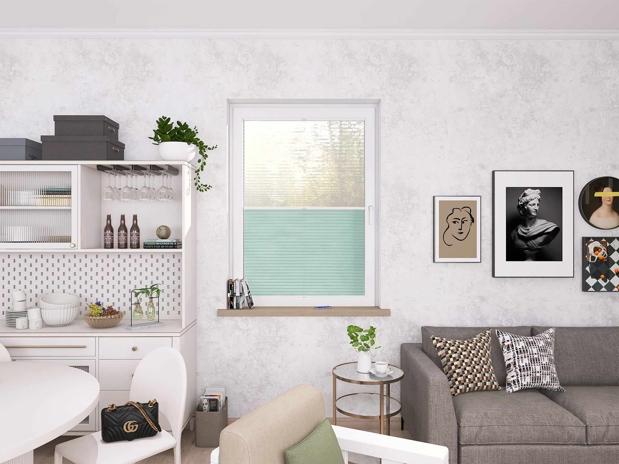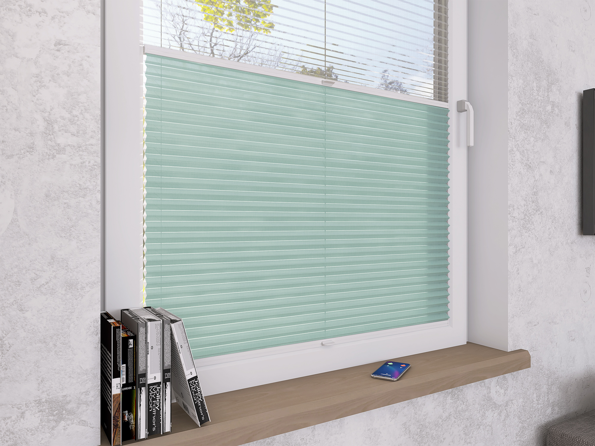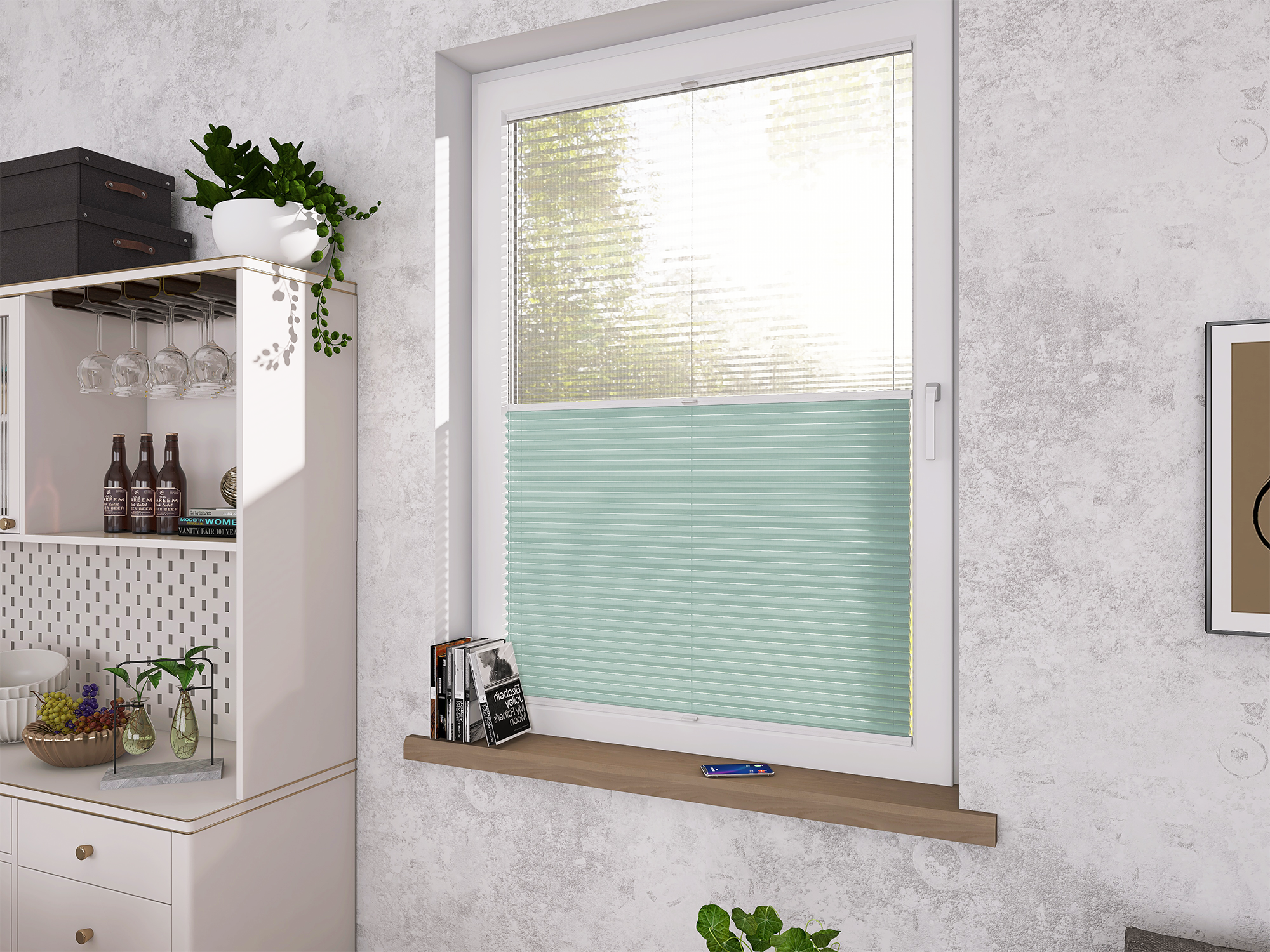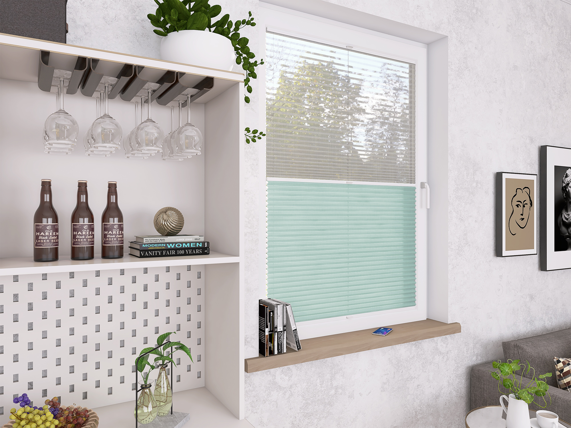 Roleta Plisowana Plaster Miodu AD 12 Miętowy + Firana - Profil Vegas Biały