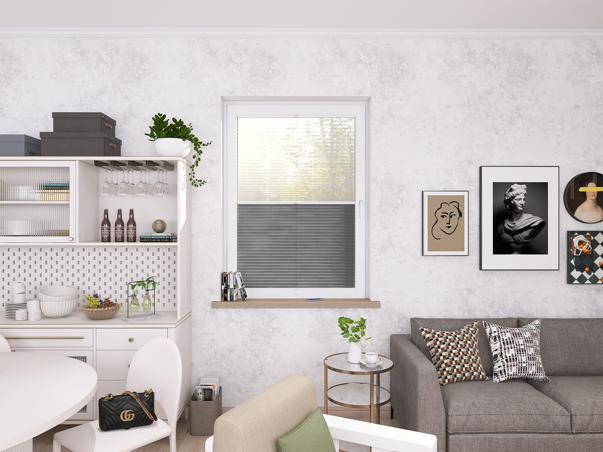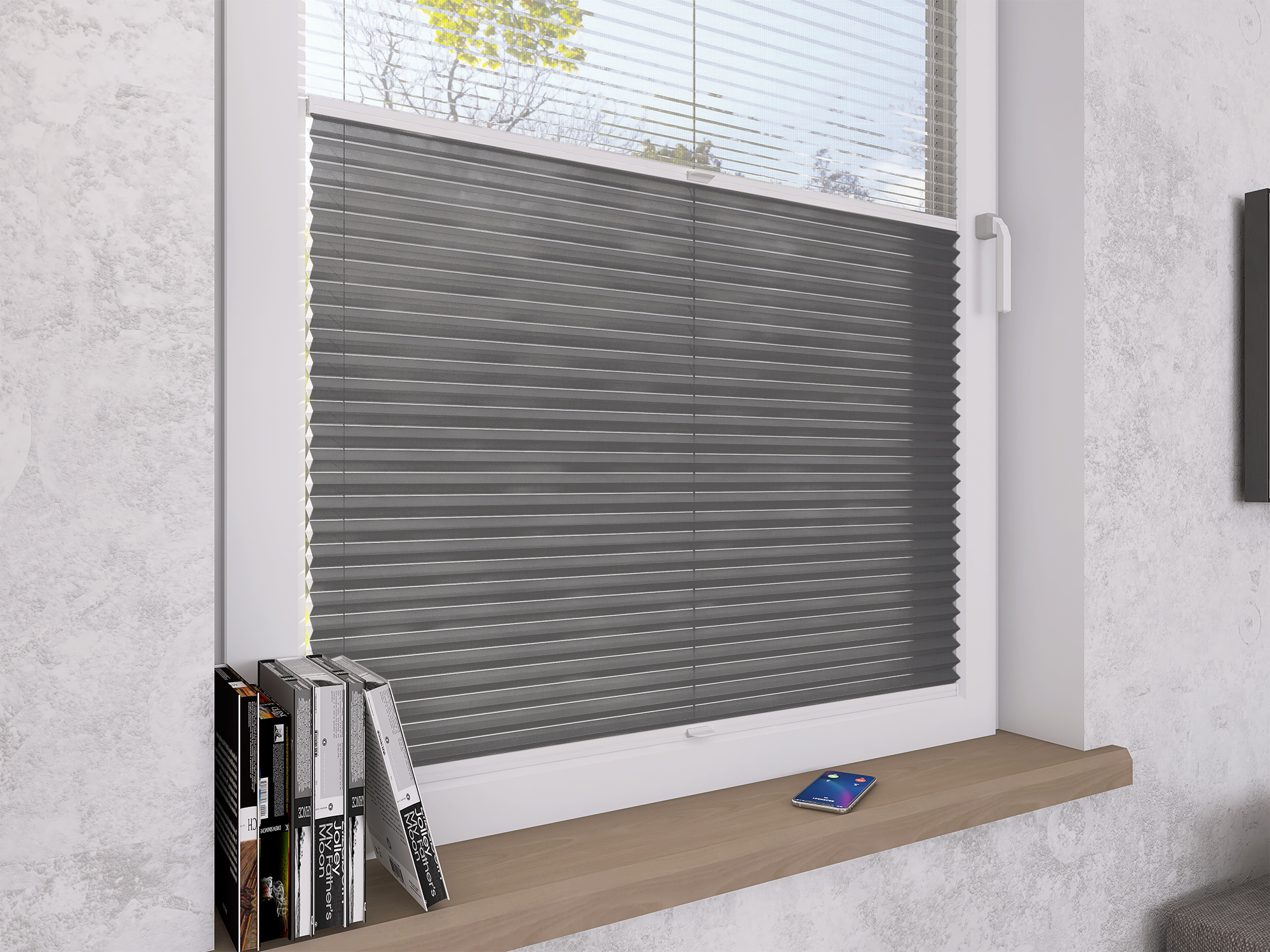 Plisy Honeycomb o lekkiej transparentności – dwuwarstwowa tkanina w formie plastra miodu. Ukryte sznurki i gładka powierzchnia bez otworów zapewniają elegancki wygląd oraz delikatne, rozproszone światło w pomieszczeniu. Idealne do nowoczesnych i przytulnych wnętrz.