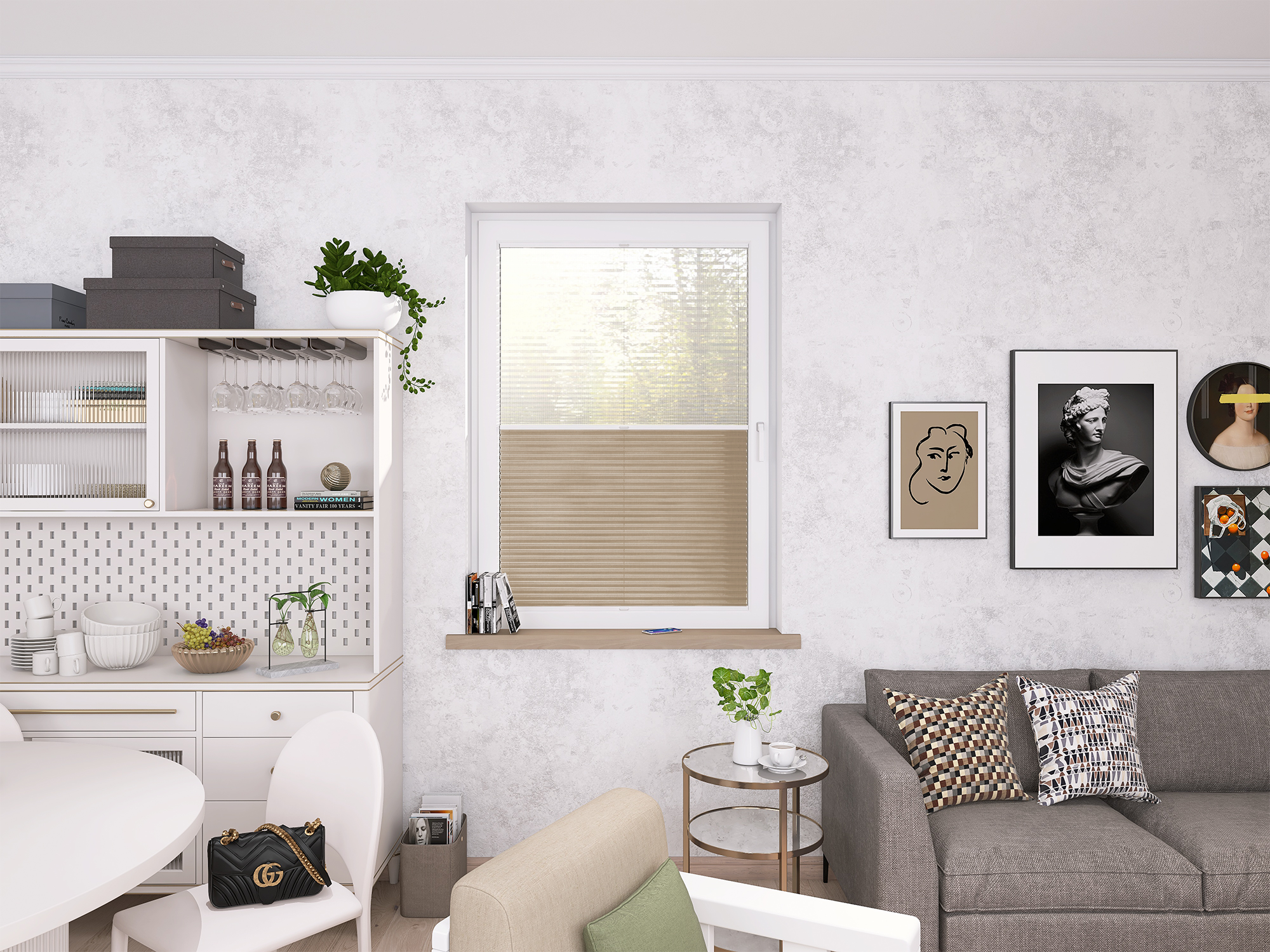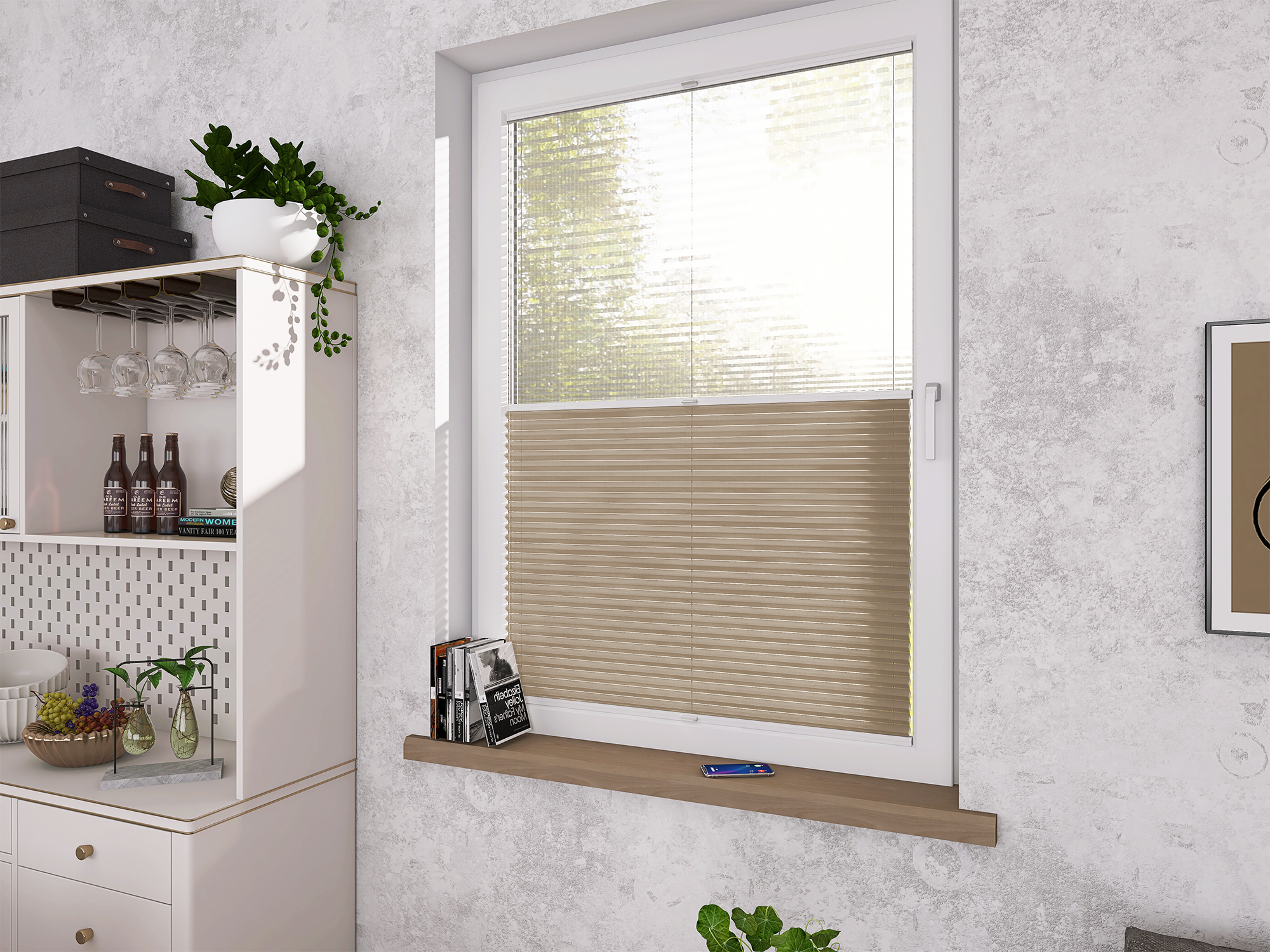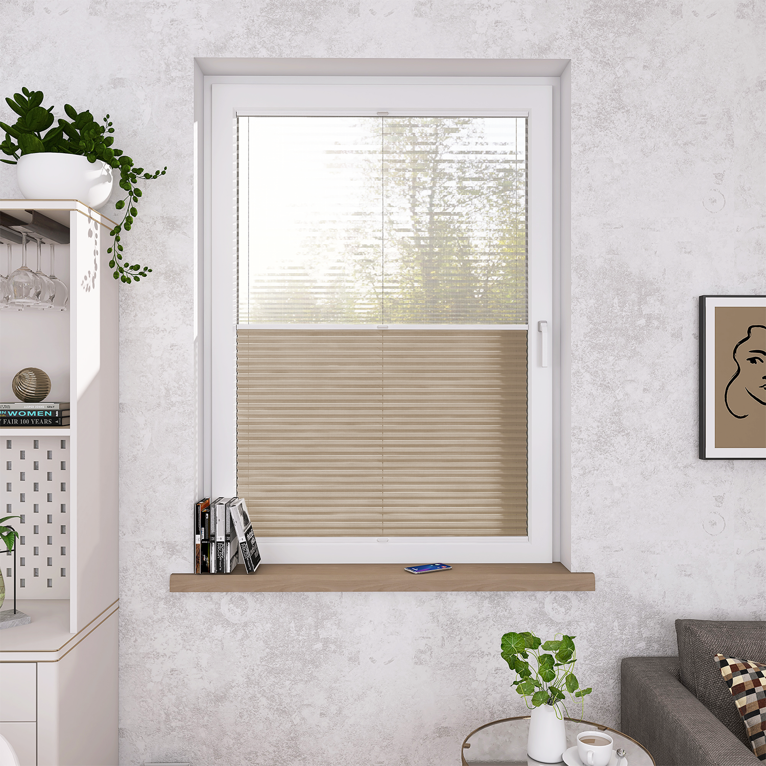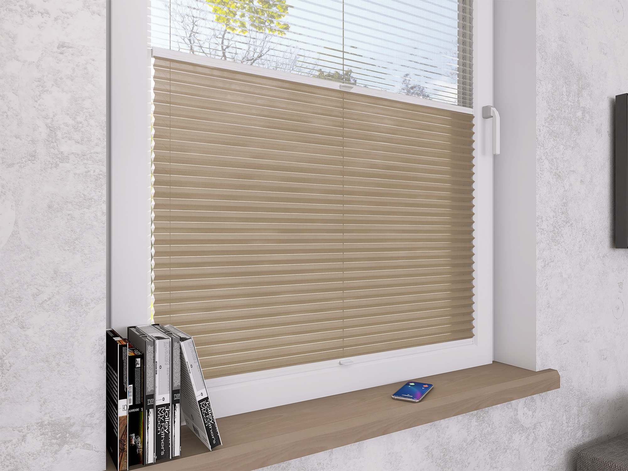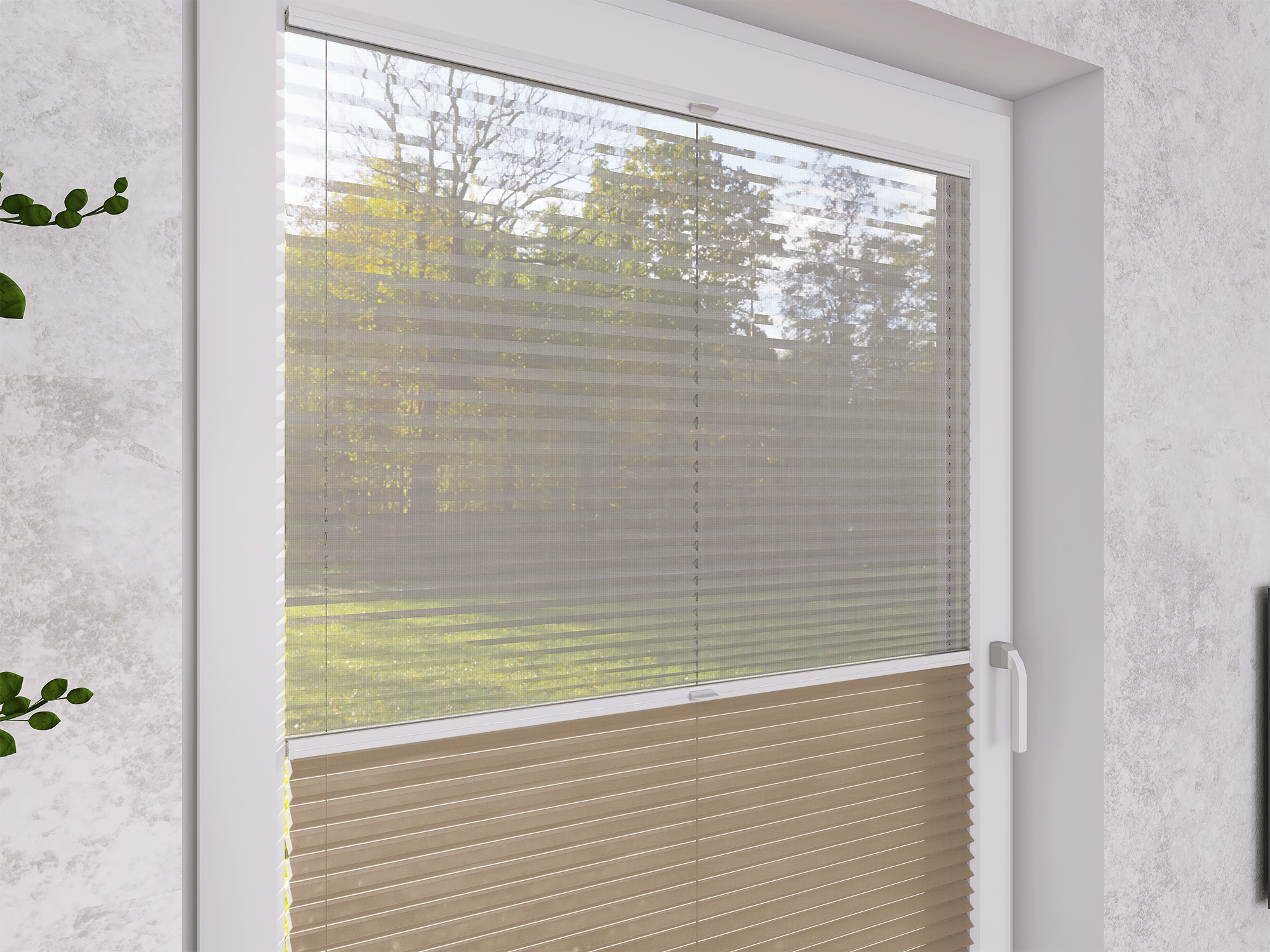 Plisy Honeycomb o lekkiej transparentności – dwuwarstwowa tkanina w formie plastra miodu. Ukryte sznurki i gładka powierzchnia bez otworów zapewniają elegancki wygląd oraz delikatne, rozproszone światło w pomieszczeniu. Idealne do nowoczesnych i przytulnych wnętrz.