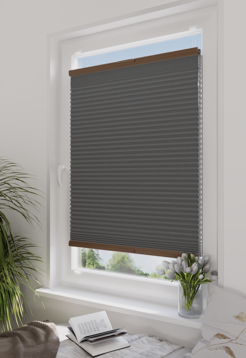 Plisy Honeycomb o lekkiej transparentności – dwuwarstwowa tkanina w formie plastra miodu. Ukryte sznurki i gładka powierzchnia bez otworów zapewniają elegancki wygląd oraz delikatne, rozproszone światło w pomieszczeniu. Idealne do nowoczesnych i przytulnych wnętrz.