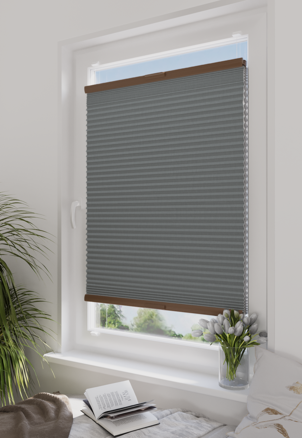 Plisy Plaster Miodu Honeycomb z powłoką termo i pełnym zaciemnieniem (100%) znacząco różnią się od tradycyjnych plis. To zupełnie inny typ tkaniny – zbudowanej z dwóch równoległych warstw, które po złożeniu tworzą charakterystyczny kształt przypominający plaster miodu. Co istotne, w tej konstrukcji sznurki sterujące przechodzą pomiędzy warstwami, dzięki czemu pozostają całkowicie niewidoczne. Efekt to jednolity arkusz tkaniny, pozbawiony typowych dla klasycznych plis otworów, co zapewnia elegancki wygląd i pełną funkcjonalność.