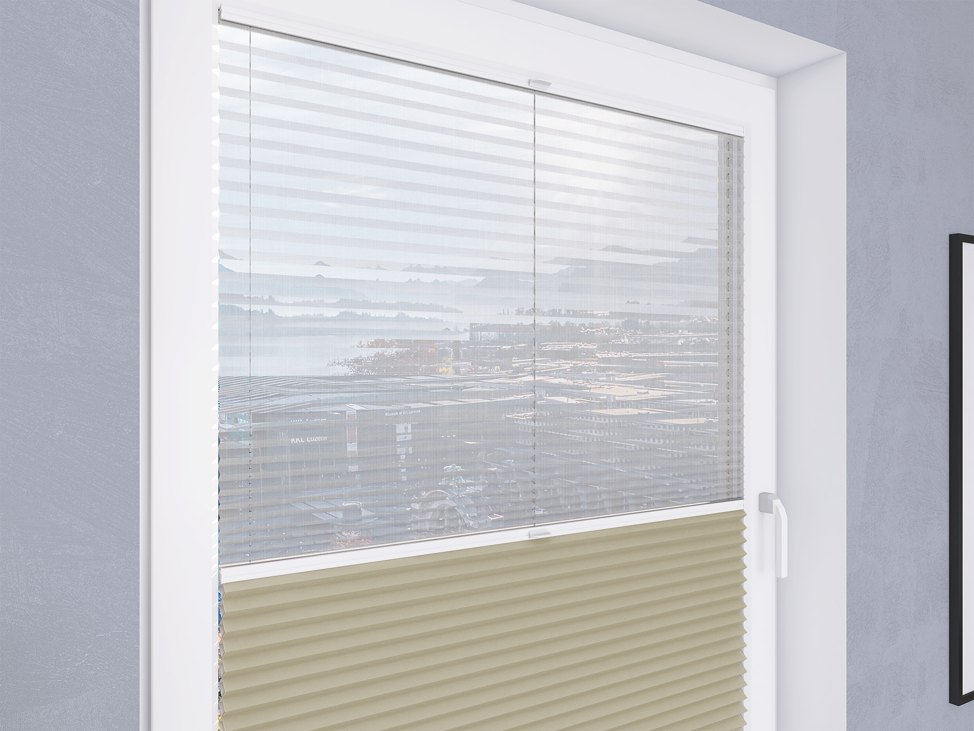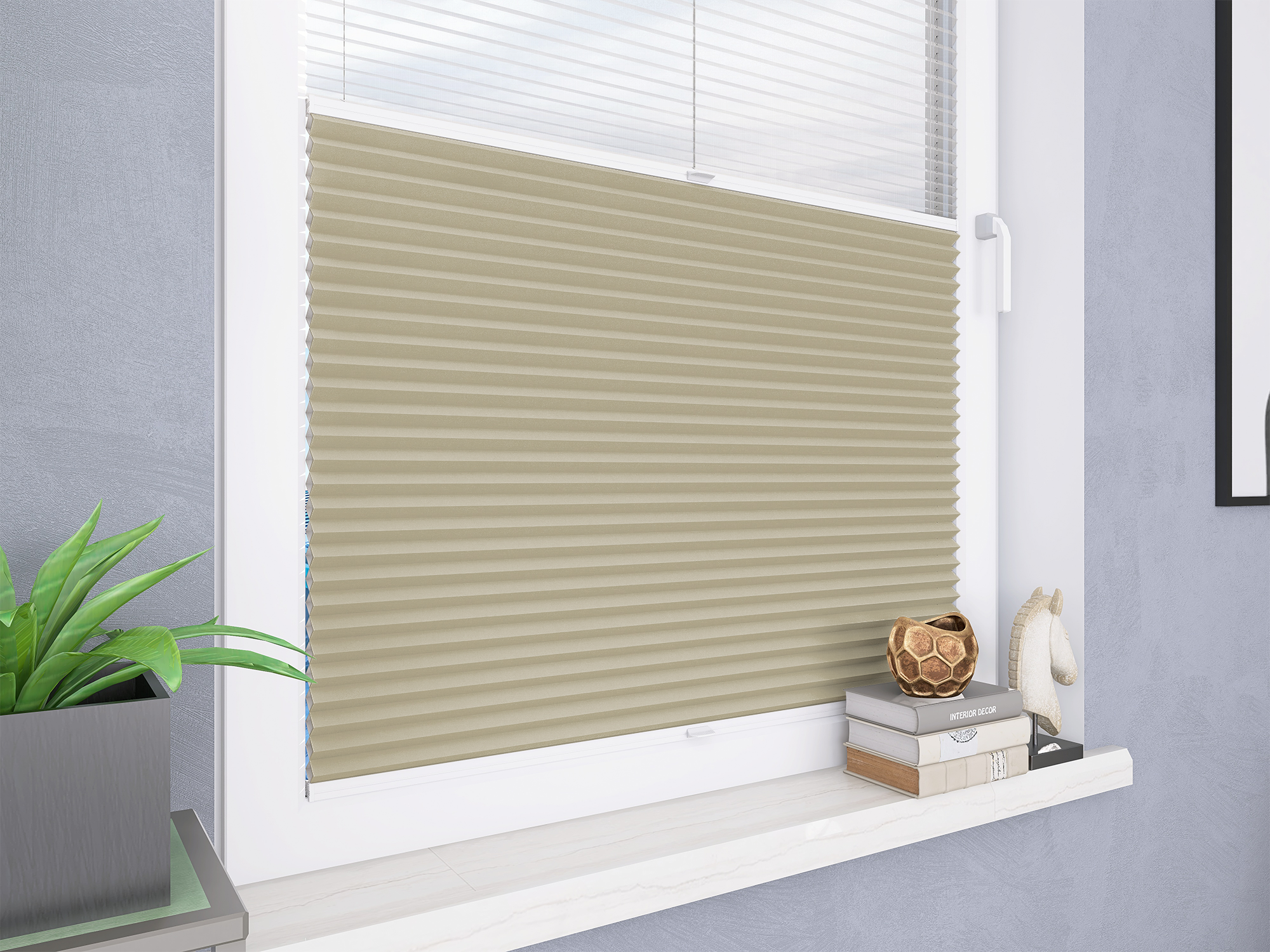 Roleta Plisowana Plaster Miodu Termo WB 200 Jasny Beż + Firana - Profil Vegas Biały