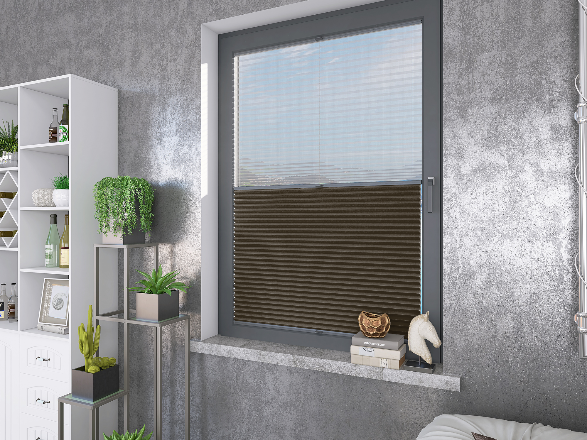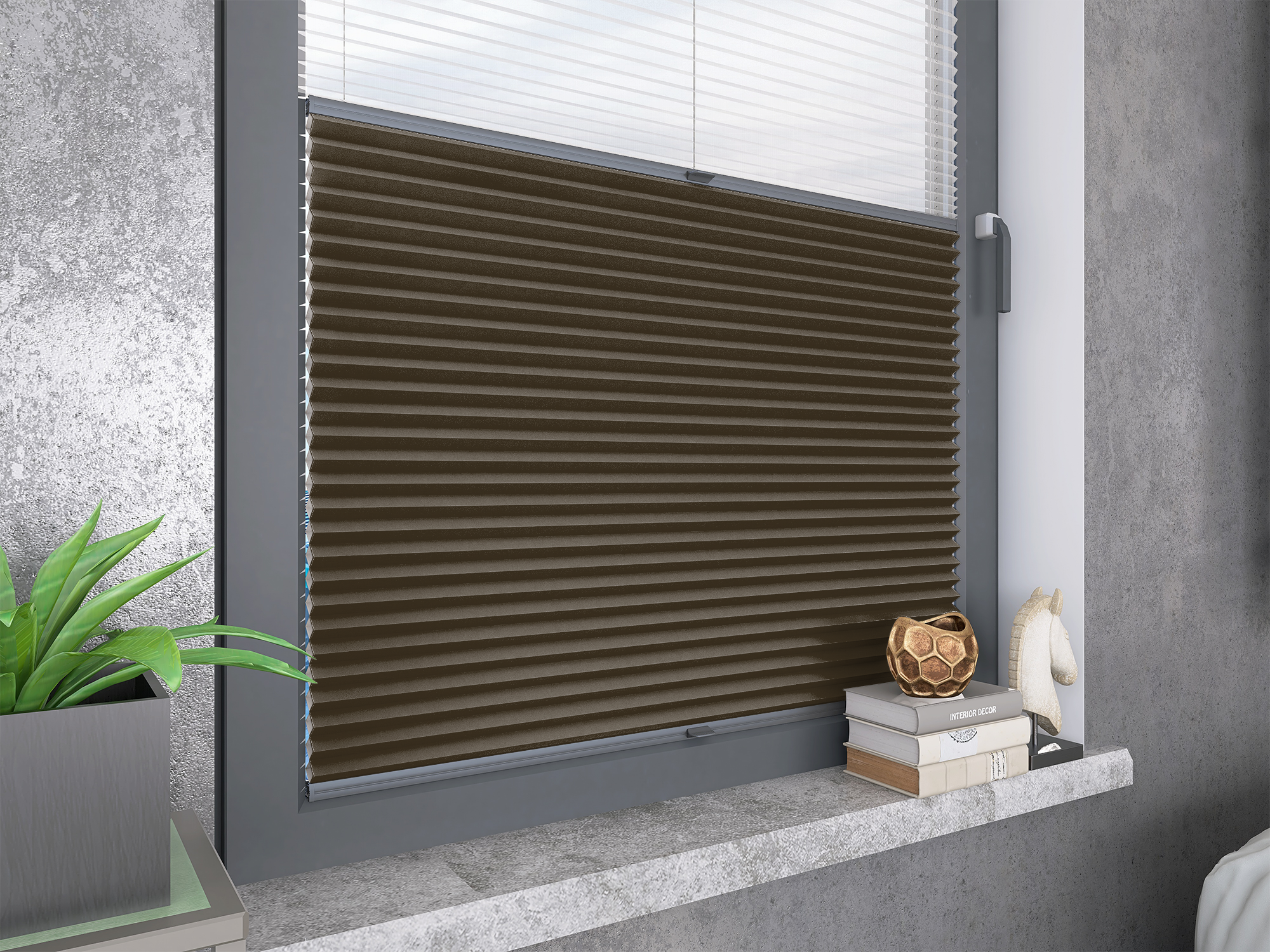 Roleta Plisowana Plaster Miodu Termo WB 205 Ciemny Brąz + Firana - Profil Vegas Antracyt
