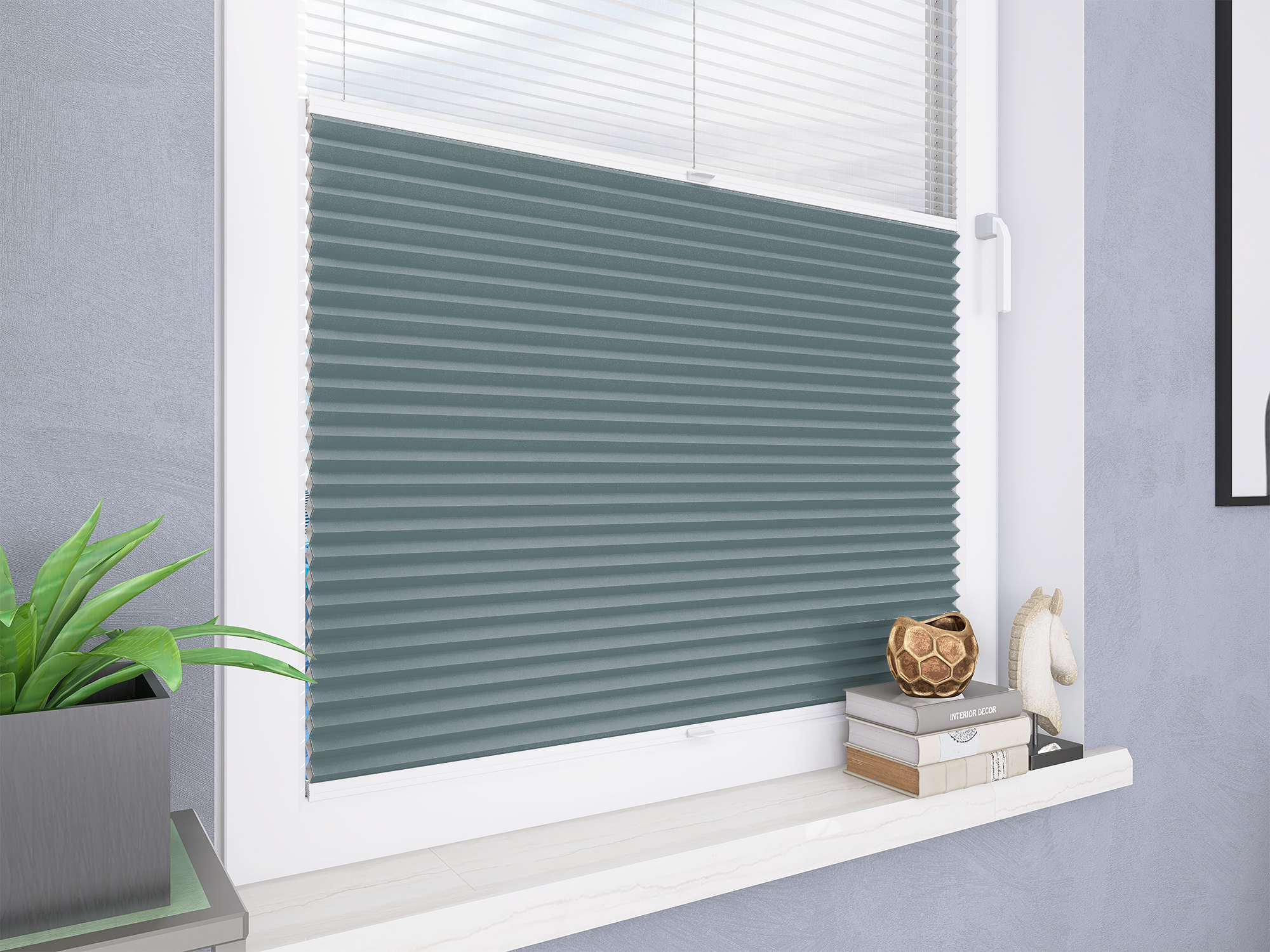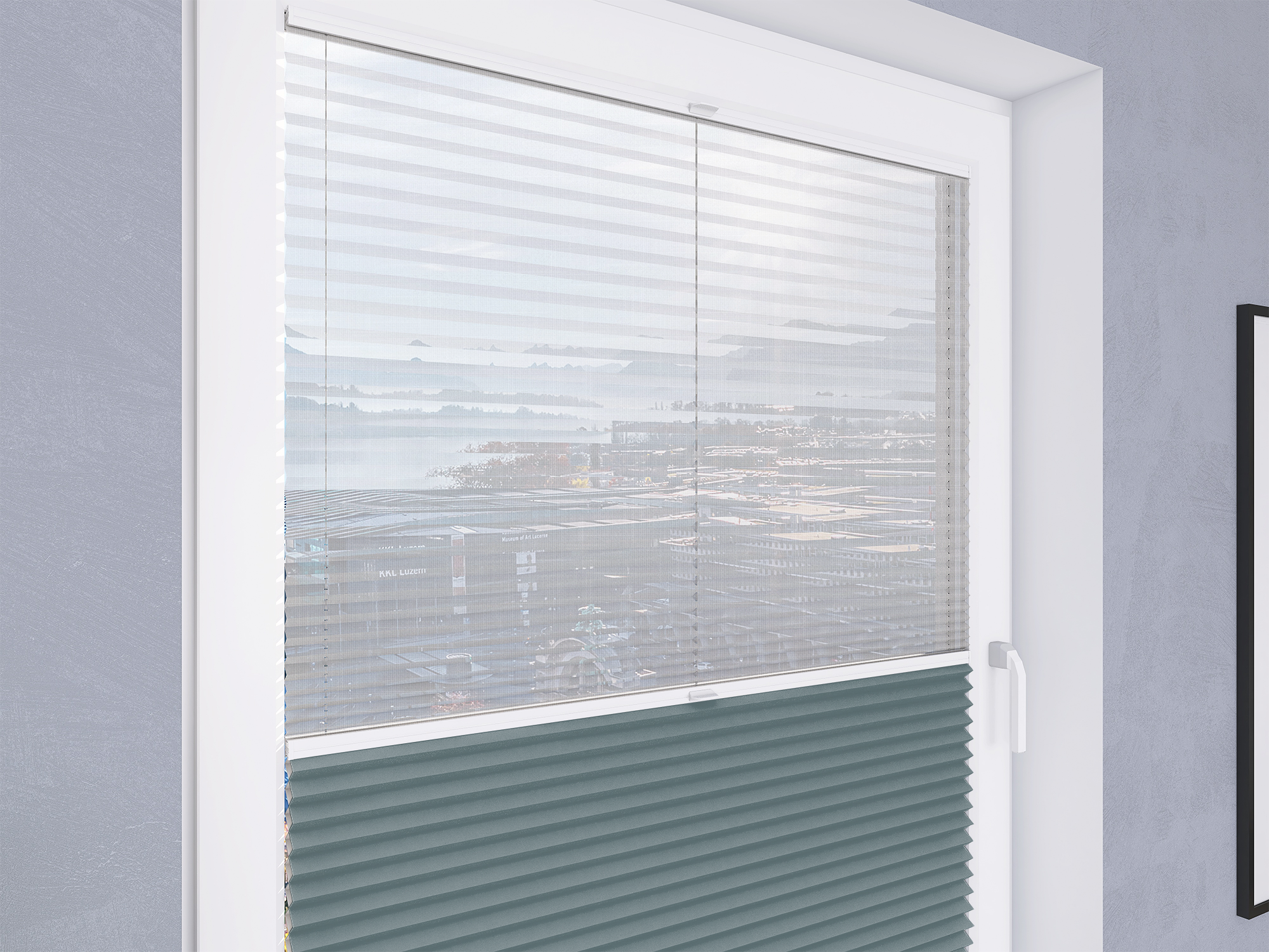 Roleta Plisowana Plaster Miodu Termo WB 211 Szaro Niebieski + Firana - Profil Vegas Biały