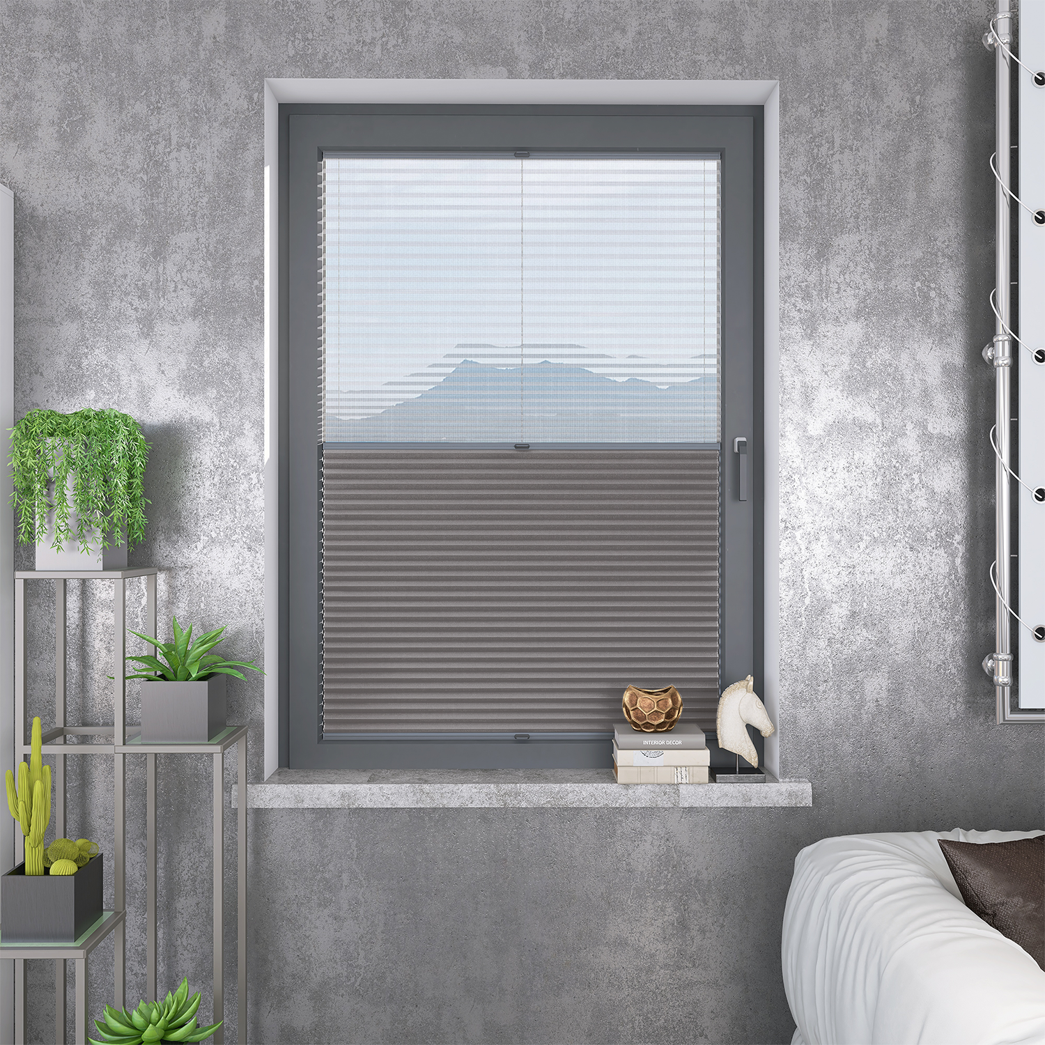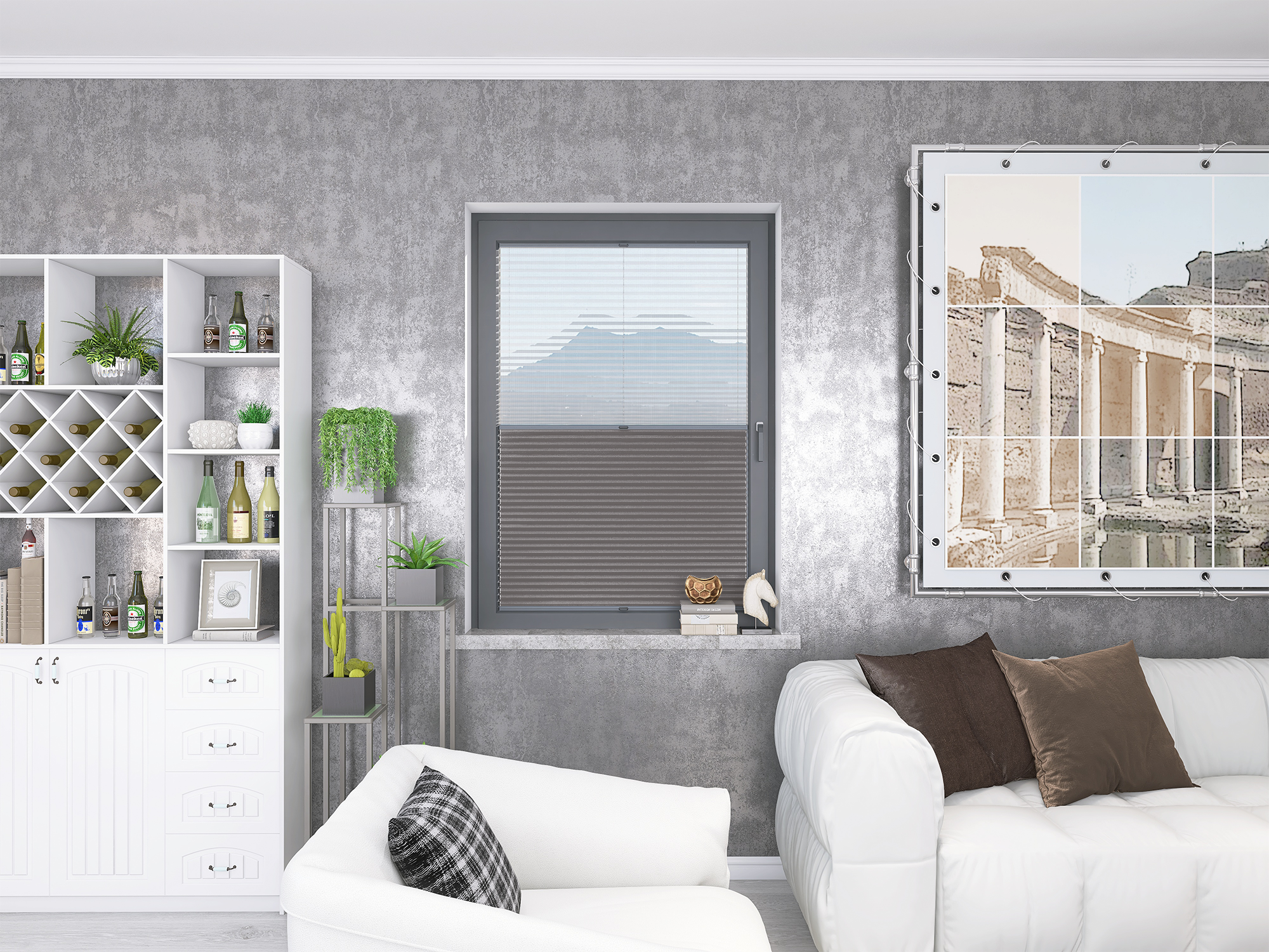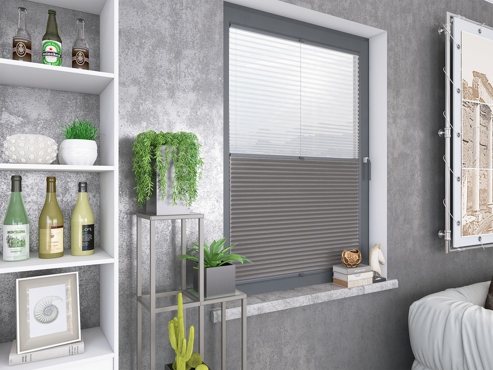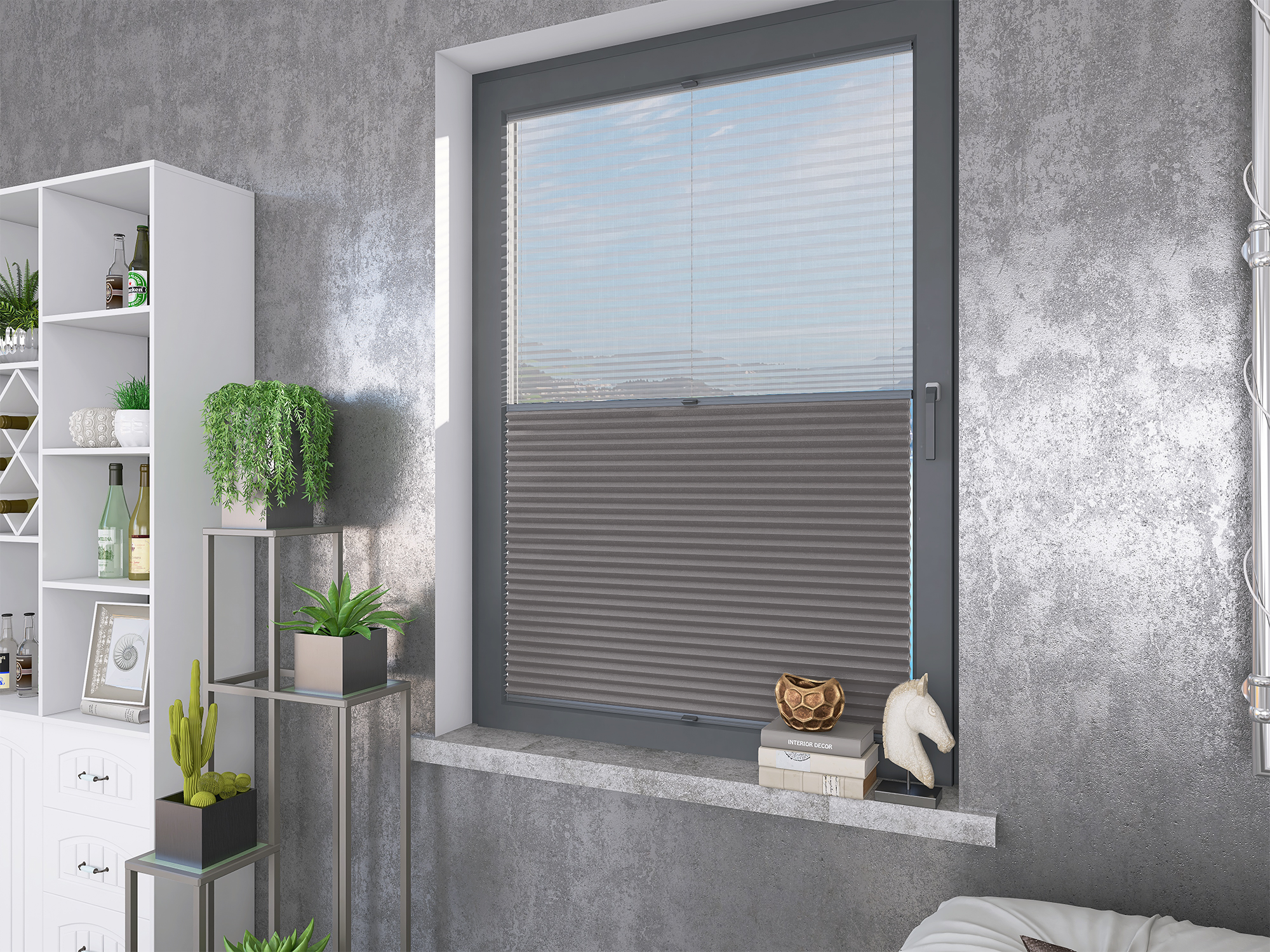 Roleta Plisowana Plaster Miodu Termo WB 216 Szary Beż + Firana - Profil Vegas Antracyt