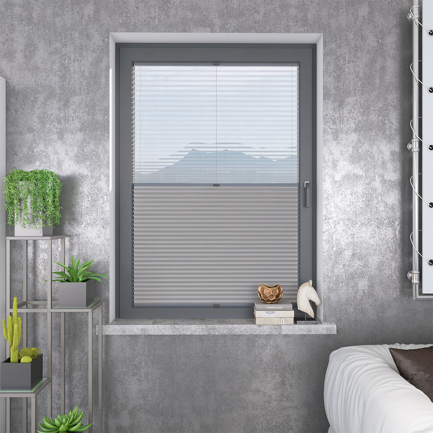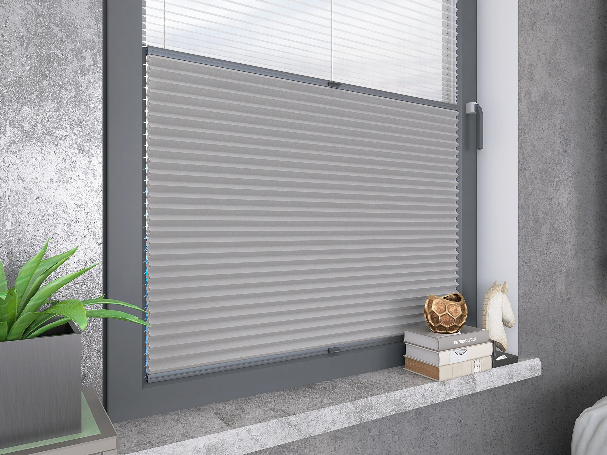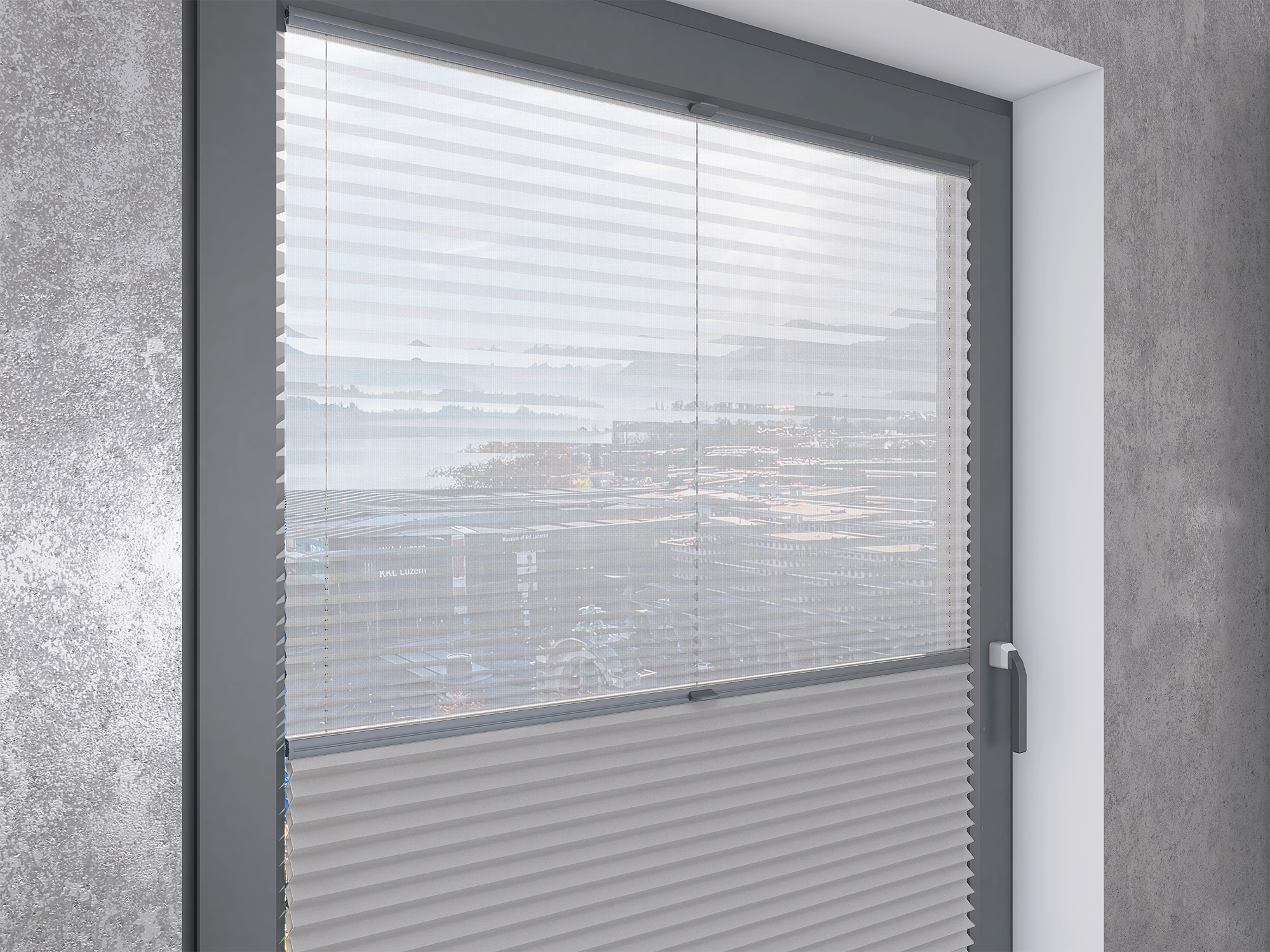 Roleta Plisowana Plaster Miodu Termo WB 219 Platynowy Szary + Firana - Profil Vegas Antracyt