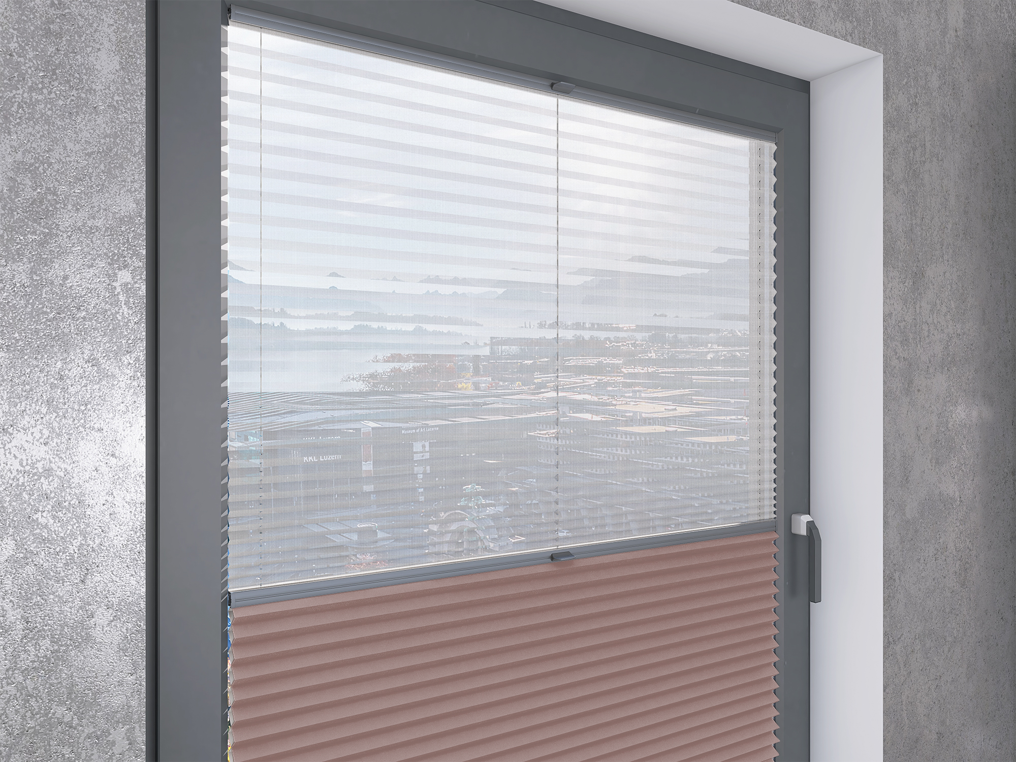 Roleta Plisowana Plaster Miodu Termo WB 223 Pudrowy Róż + Firana - Profil Vegas Antracyt