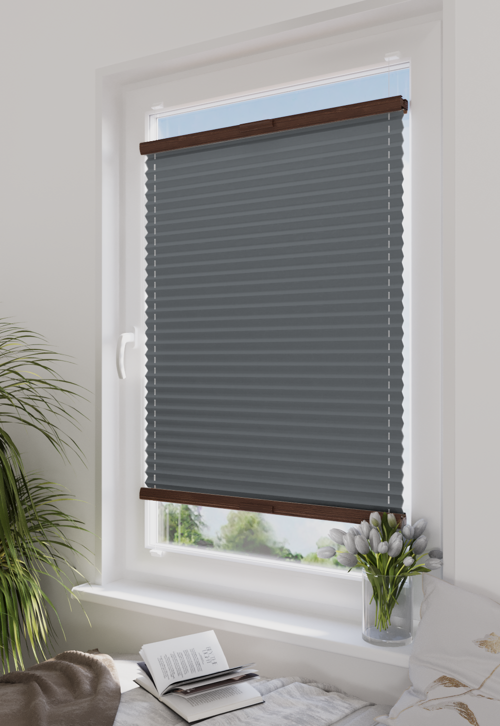 DIEGO PEARL – tkanina z powłoką odbijającą światło, gramatura 167 g/m². Transmisja światła od 0,30% do 15,62% w zależności od koloru. Eleganckie plisy (20 mm) i delikatna struktura (0,4 mm) gwarantują stylowy wygląd i wysoki komfort.