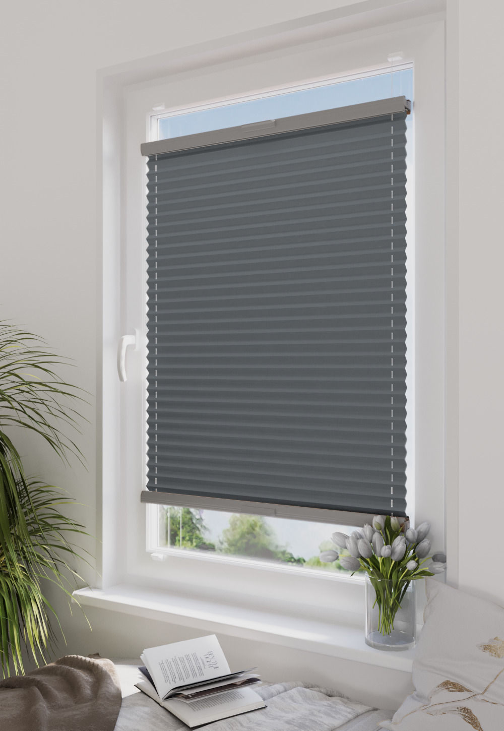 DIEGO PEARL – tkanina z powłoką odbijającą światło, gramatura 167 g/m². Transmisja światła od 0,30% do 15,62% w zależności od koloru. Eleganckie plisy (20 mm) i delikatna struktura (0,4 mm) gwarantują stylowy wygląd i wysoki komfort.