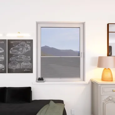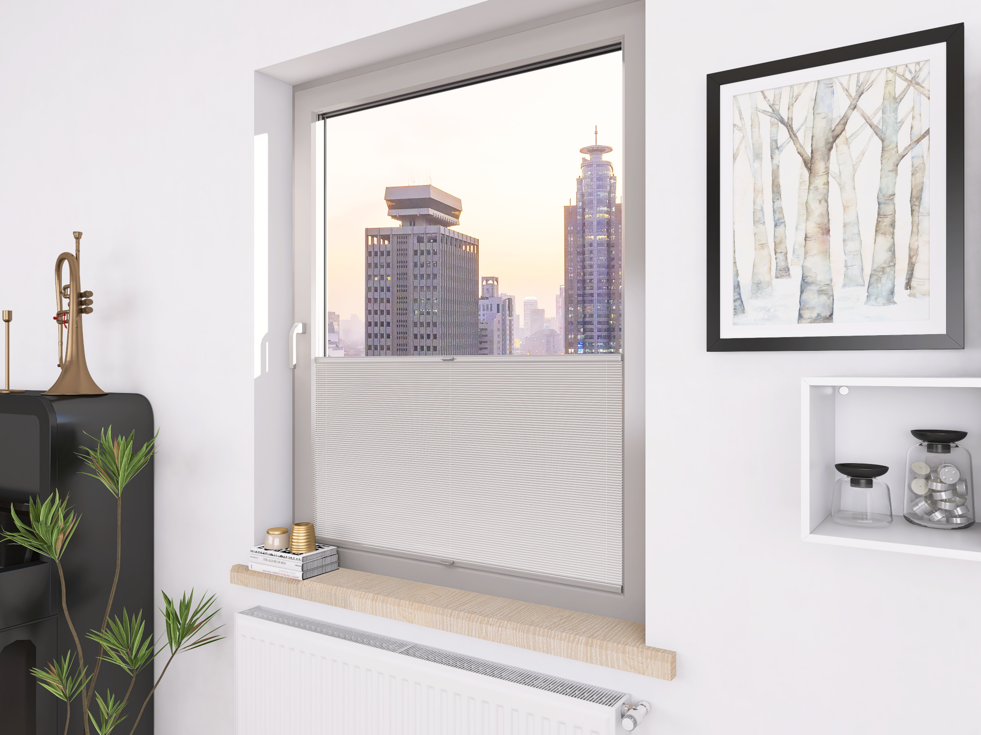 DIEGO PEARL – tkanina z powłoką odbijającą światło, gramatura 167 g/m². Transmisja światła od 0,30% do 15,62% w zależności od koloru. Eleganckie plisy (20 mm) i delikatna struktura (0,4 mm) gwarantują stylowy wygląd i wysoki komfort.