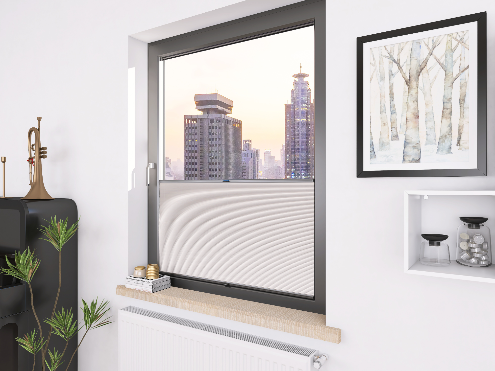 Roleta Plisowana T0002 Biel Perłowa - Profil Vegas Antracyt