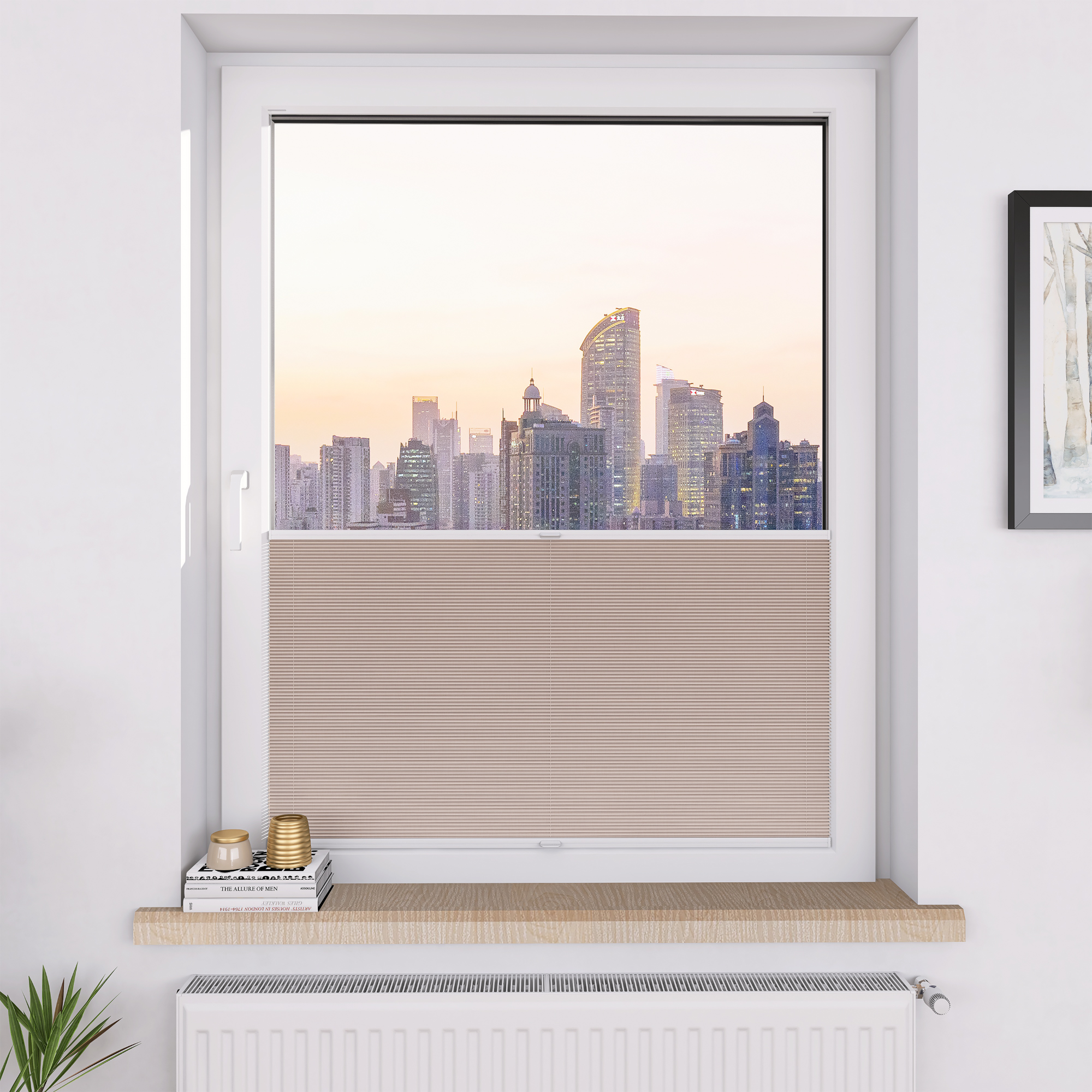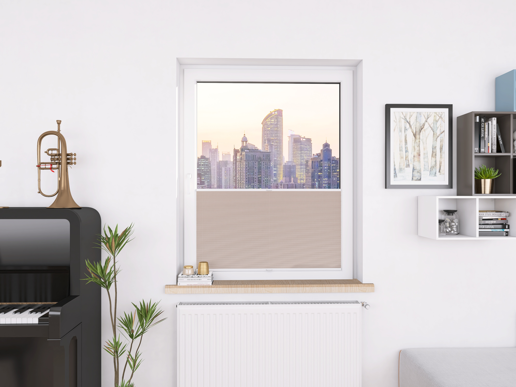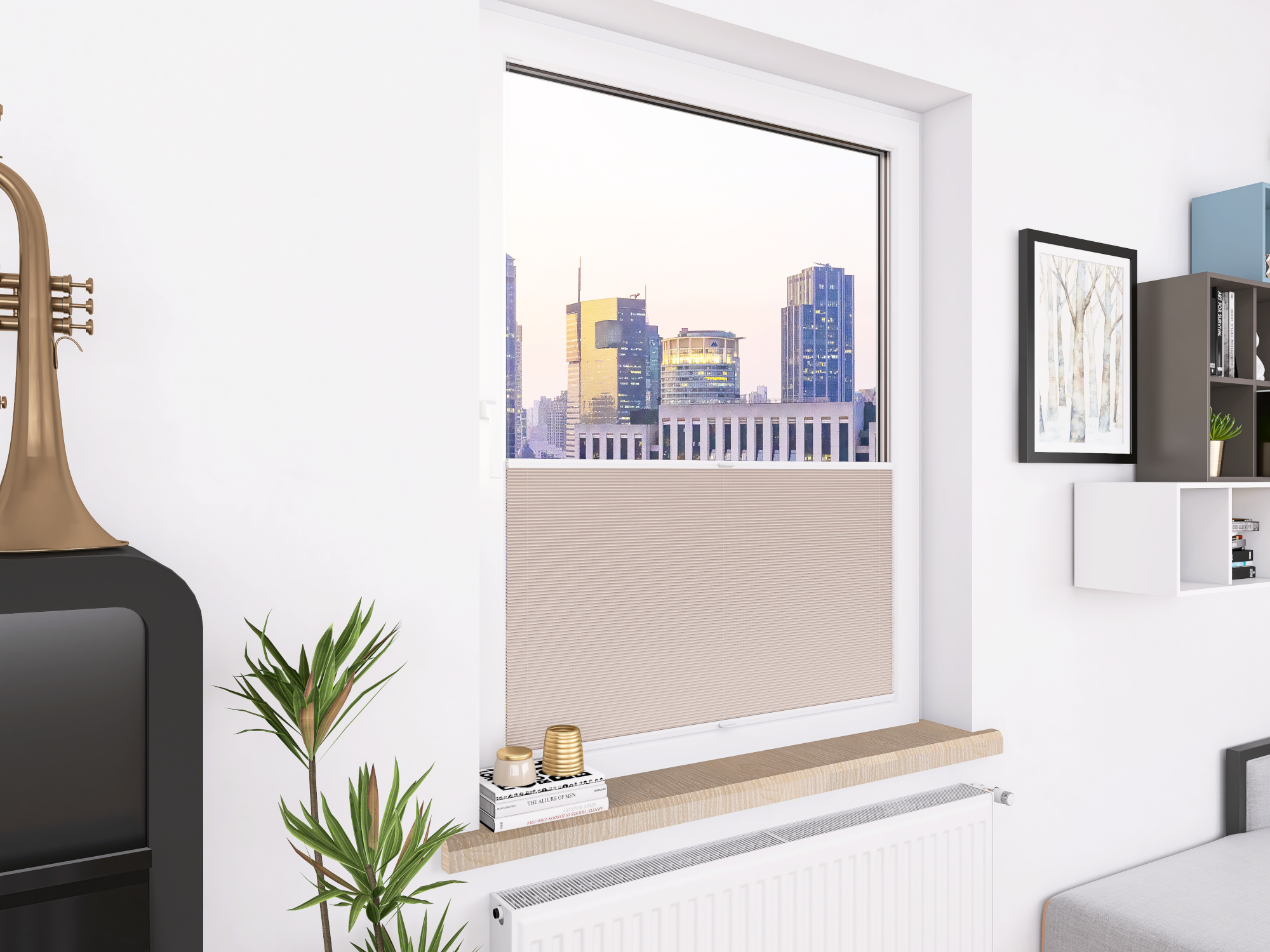 DIEGO PEARL – tkanina z powłoką odbijającą światło, gramatura 167 g/m². Transmisja światła od 0,30% do 15,62% w zależności od koloru. Eleganckie plisy (20 mm) i delikatna struktura (0,4 mm) gwarantują stylowy wygląd i wysoki komfort.