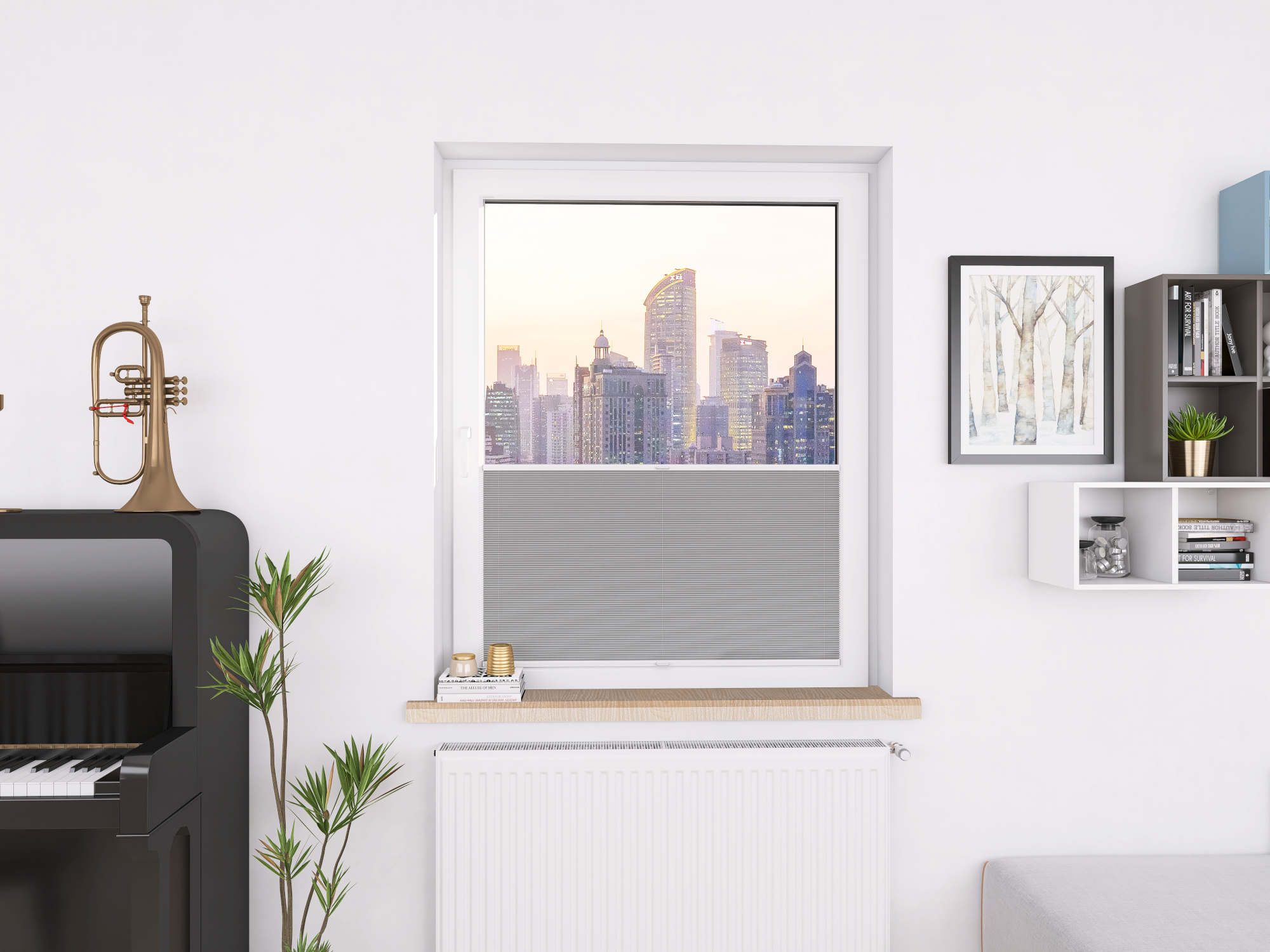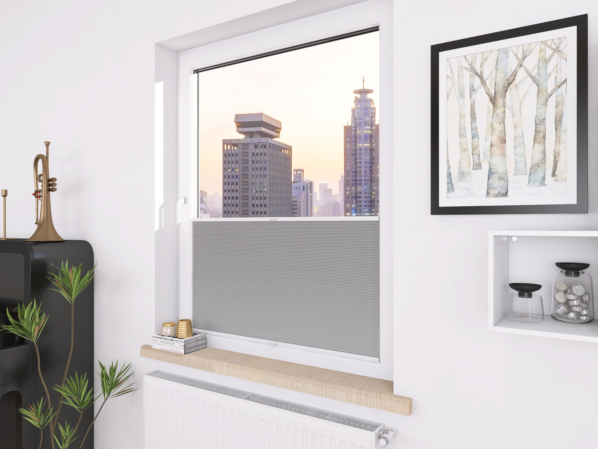 DIEGO PEARL – tkanina z powłoką odbijającą światło, gramatura 167 g/m². Transmisja światła od 0,30% do 15,62% w zależności od koloru. Eleganckie plisy (20 mm) i delikatna struktura (0,4 mm) gwarantują stylowy wygląd i wysoki komfort.
